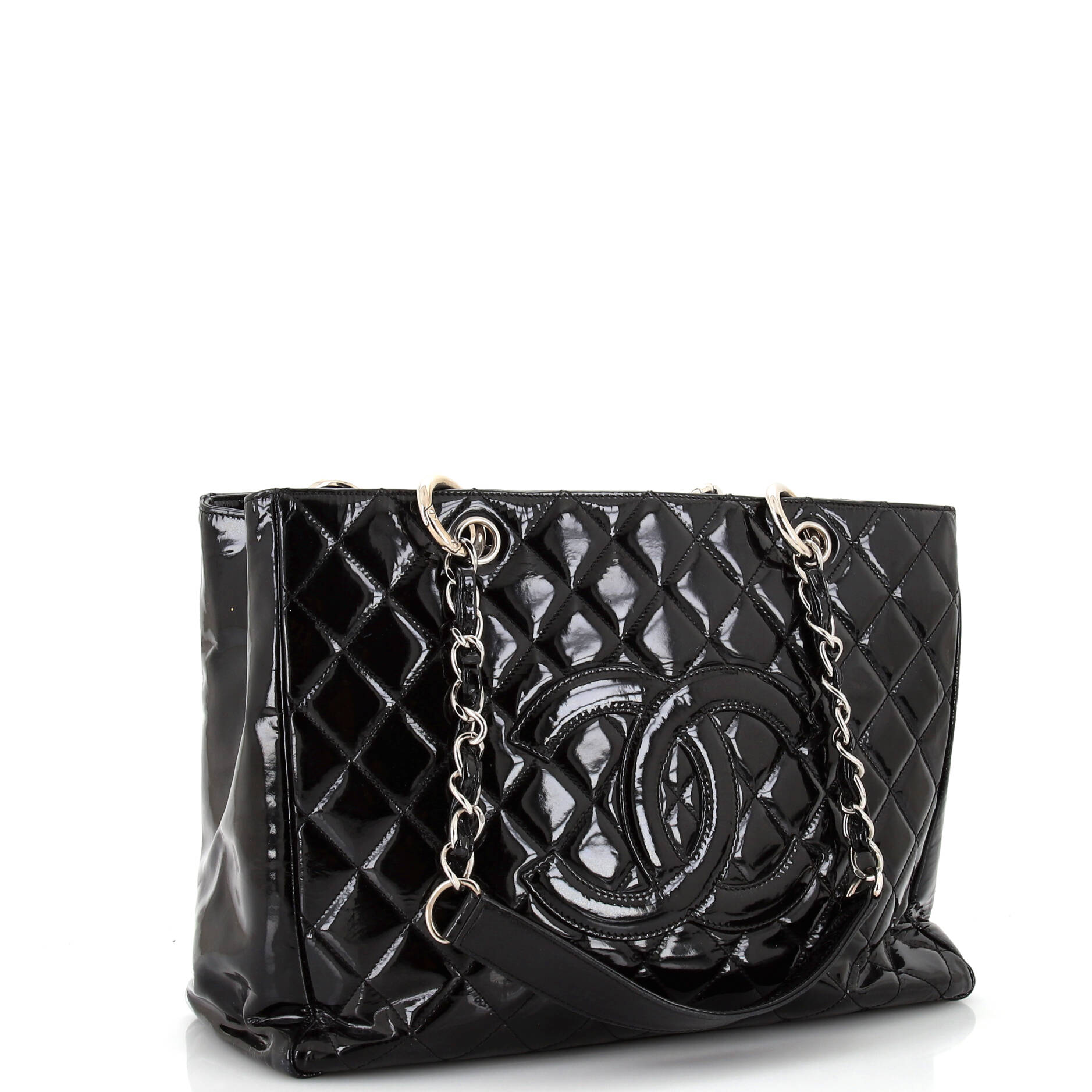 Elevate your style with the timeless elegance of the Chanel Grand Shopping Tote Quilted Patent. Crafted with high-quality quilted patent leather, this iconic tote exudes sophistication and luxury. The spacious interior is perfect for all your daily essentials, making it both a practical and stylish choice for any fashion-forward individual.