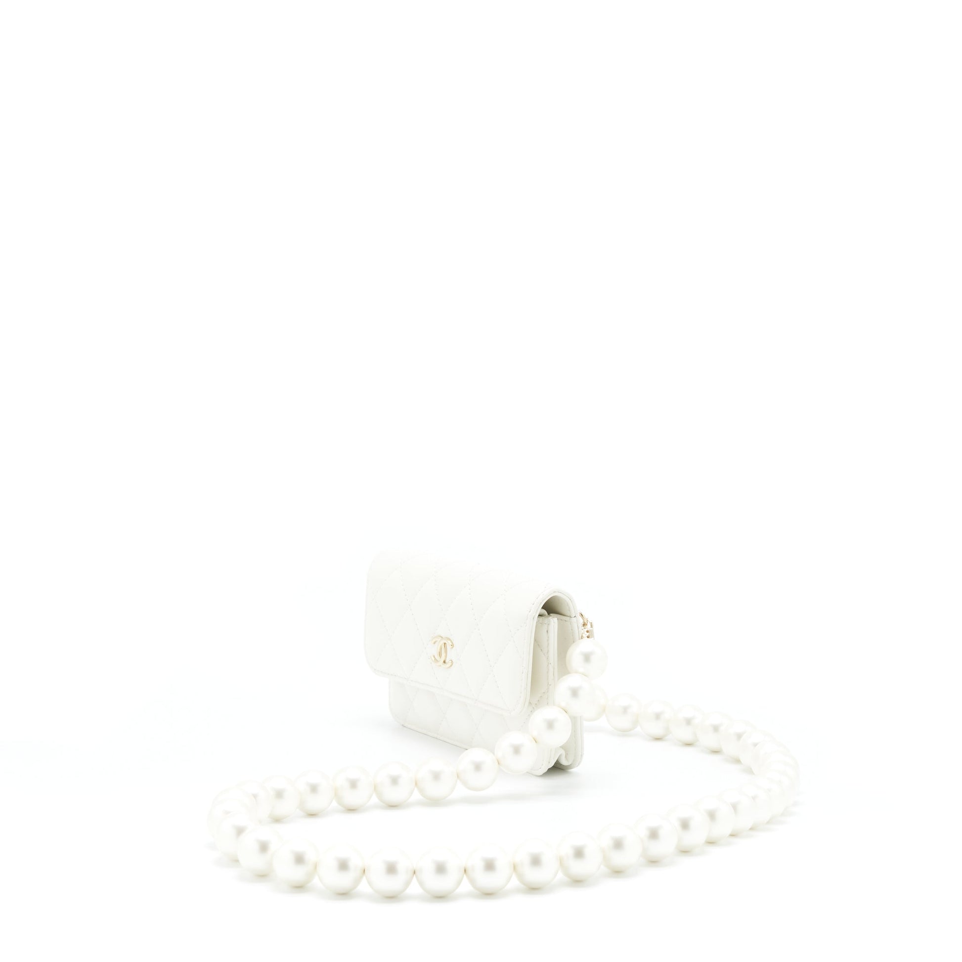 Chanel Grant Pearl Crush Mini Crossbody Bag Lambskin White LGHW