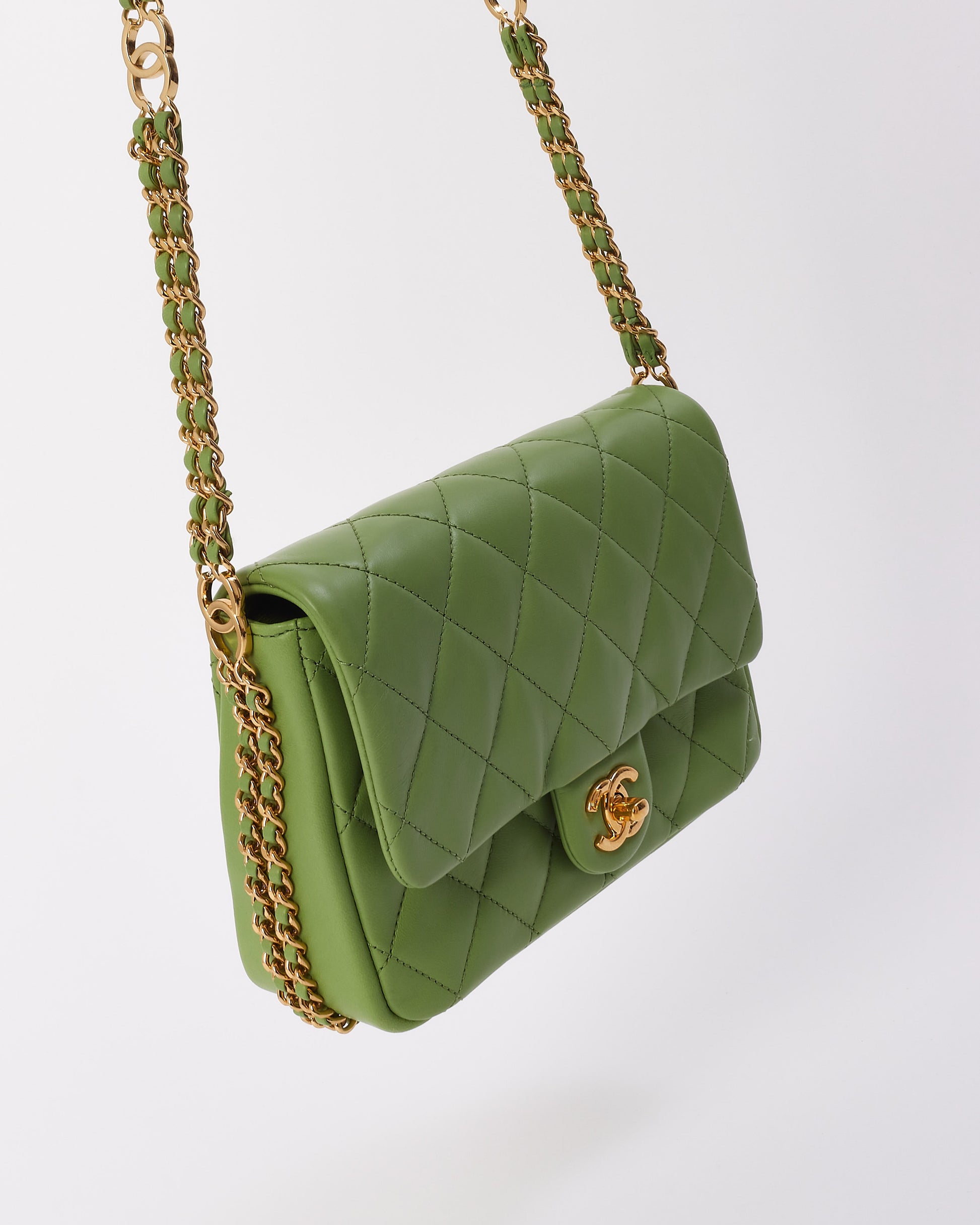 Chanel Green Leather with Gold Double CC Chain Flap Bag