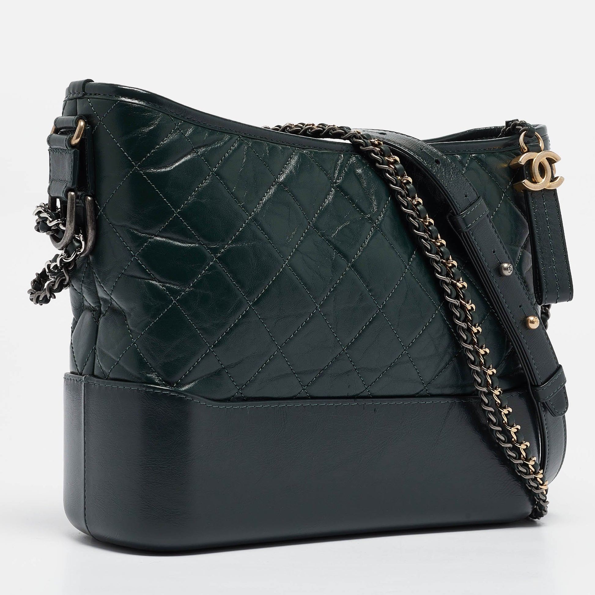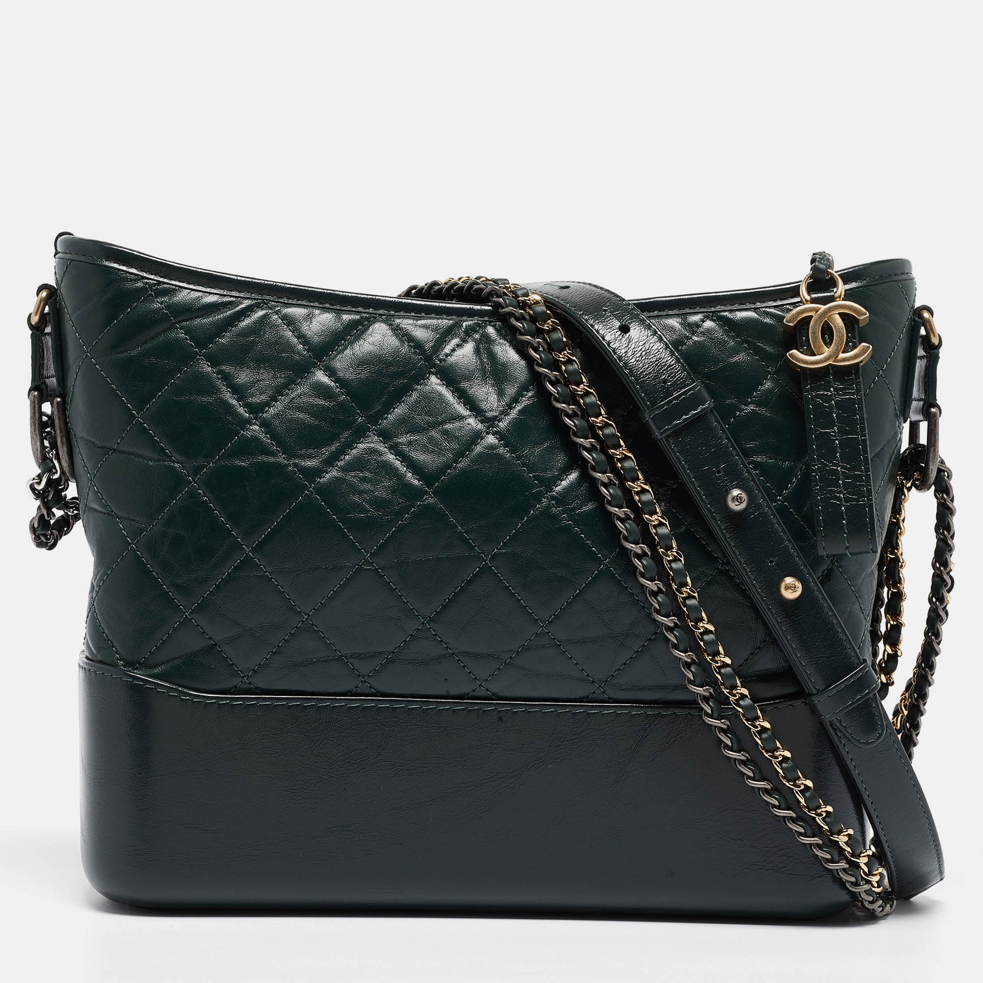 CHANEL Green Quilted Aged Leather Medium Gabrielle Hobo