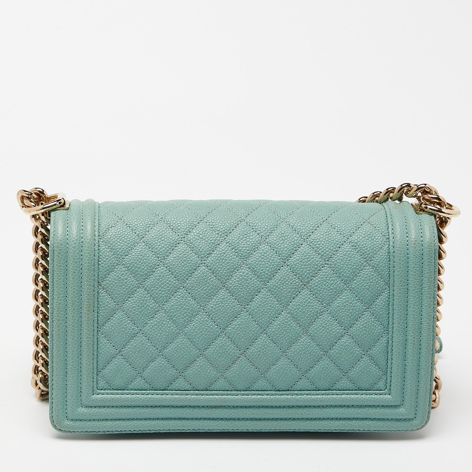 CHANEL Green Quilted Caviar Leather Medium Boy Flap Bag