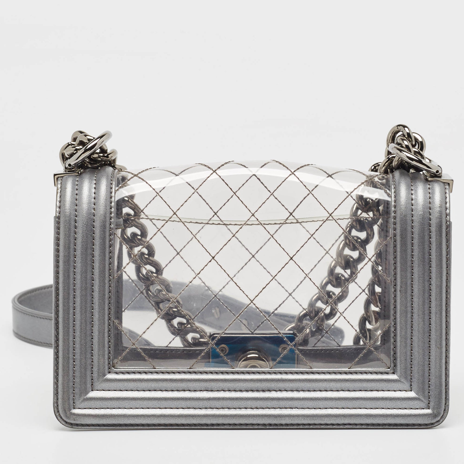 CHANEL Grey/Clear Quilted PVC and Leather Small Boy Flap Bag