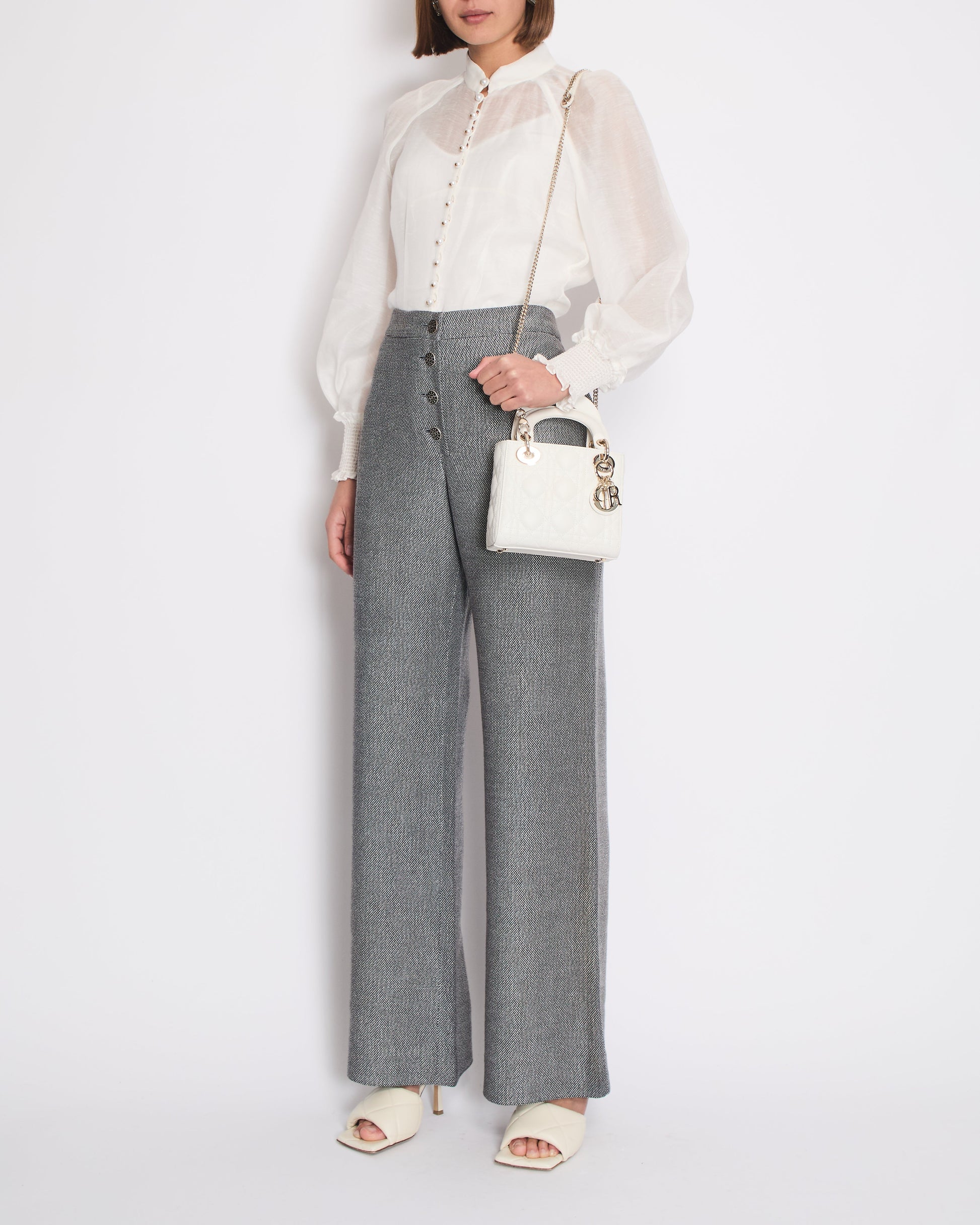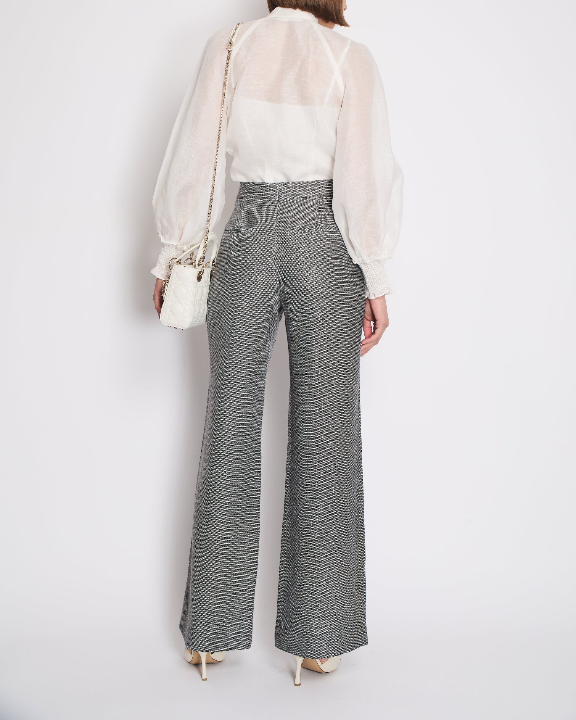 Chanel Grey Houndstooth Wide Leg Trousers with CC Logo Button Details Size FR 42 (UK 14)