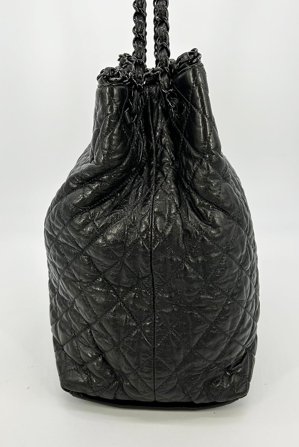 Chanel Grey Metallic Leather Chain Me Shoulder Bag Tote in excellent condition.