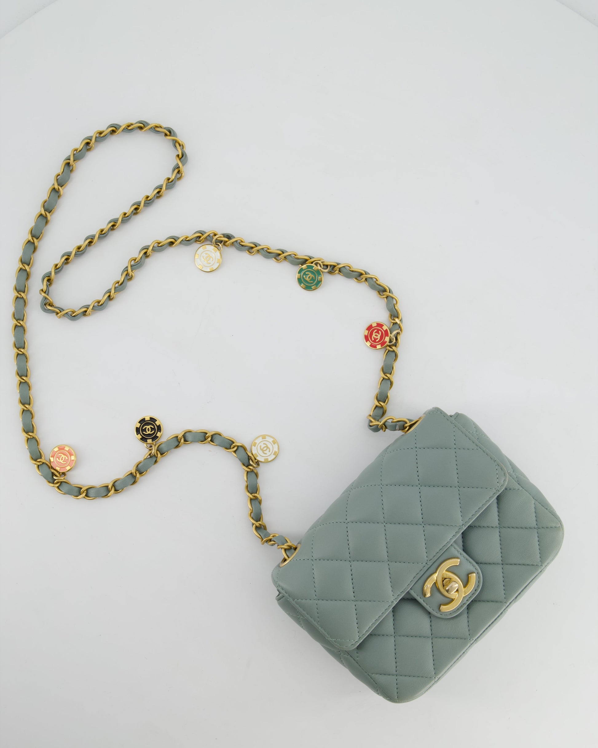 Chanel Grey-Blue Mini Flap Bag With Multicolour Coin Details and Brushed Gold Hardware