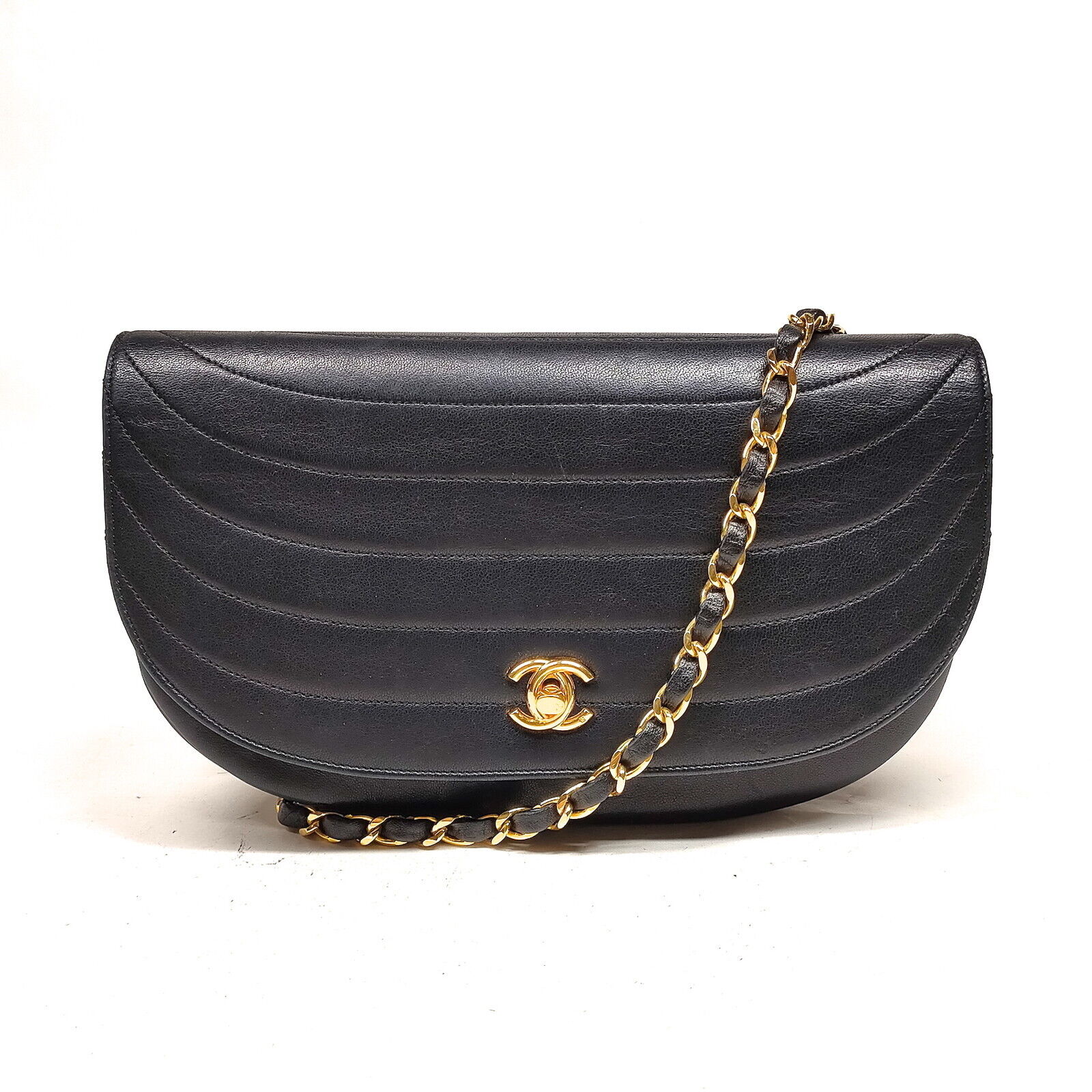CHANEL LAMBSKIN LEATHER HALF MOON SHOULDER BAG