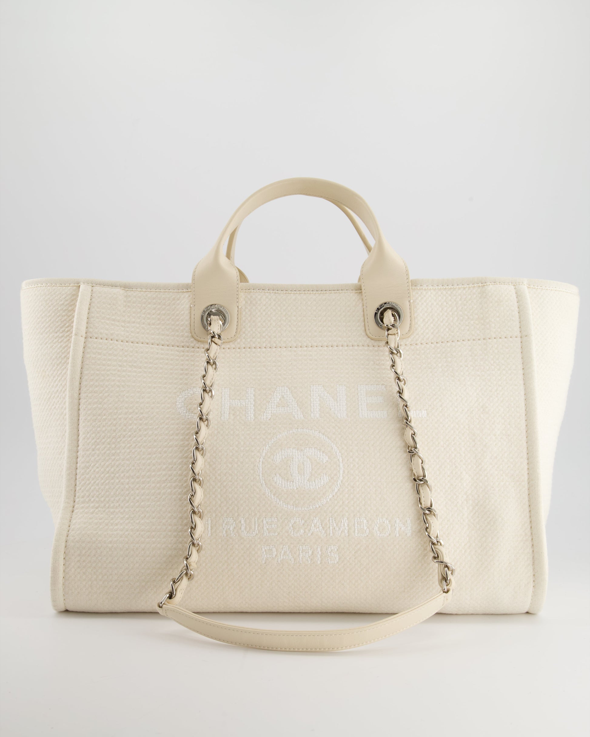 Chanel Large Cream Canvas Deauville Tote Bag with Silver Hardware