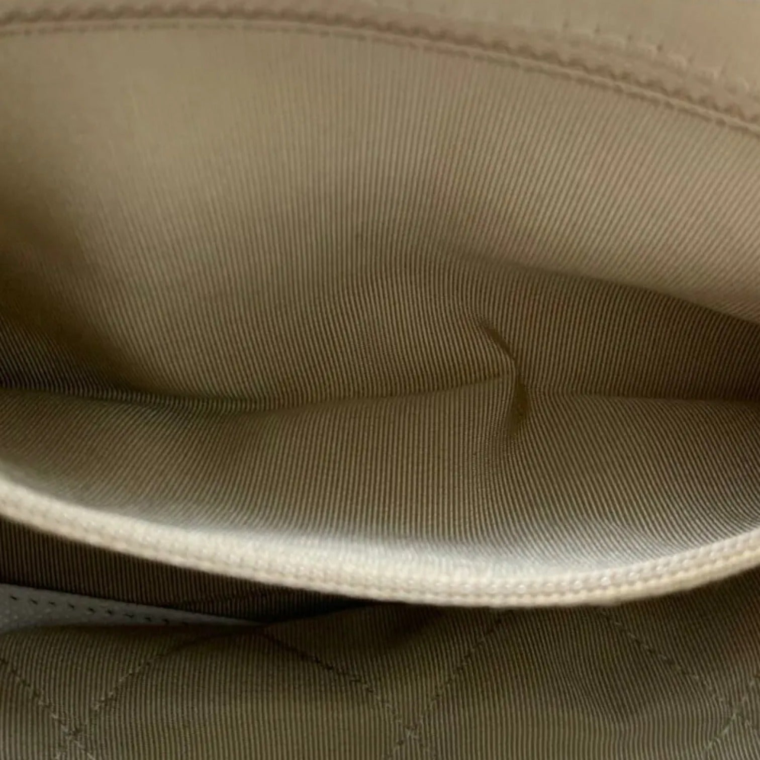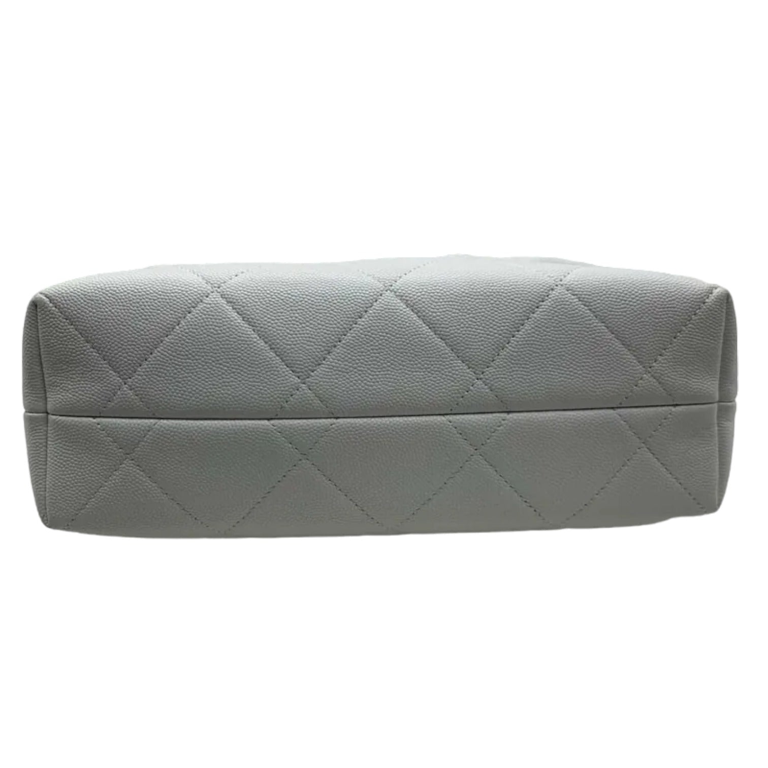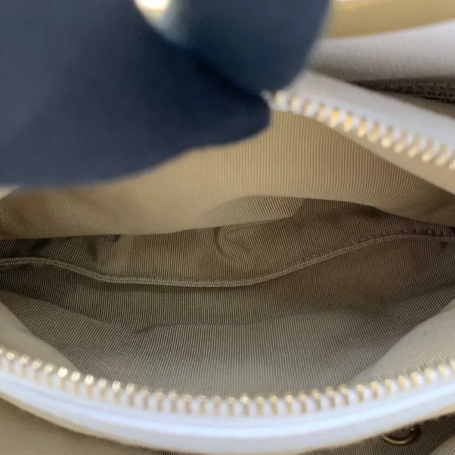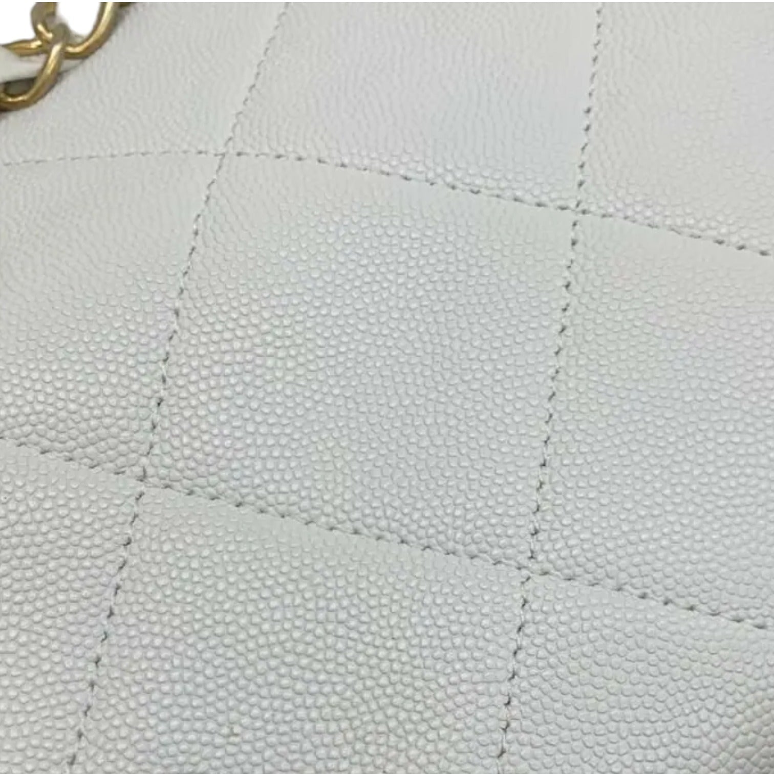 This is an Chanel Limited Edition Chain Tote Leather in White. This bag is crafted of leather in white. The bag features top handle with interlocking, chain shoulder strap with gold hardware. The bag interior is made of canvas with inner flap pocket, and a zip pocket.
