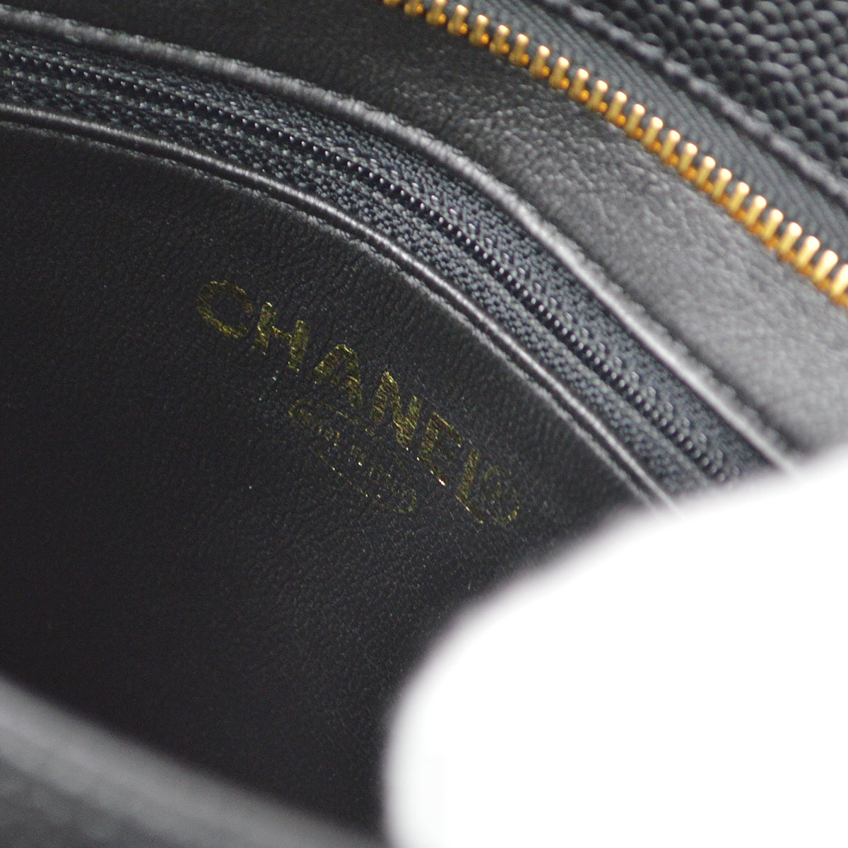 CHANEL Medallion Tote Handbag Black Caviar 67911