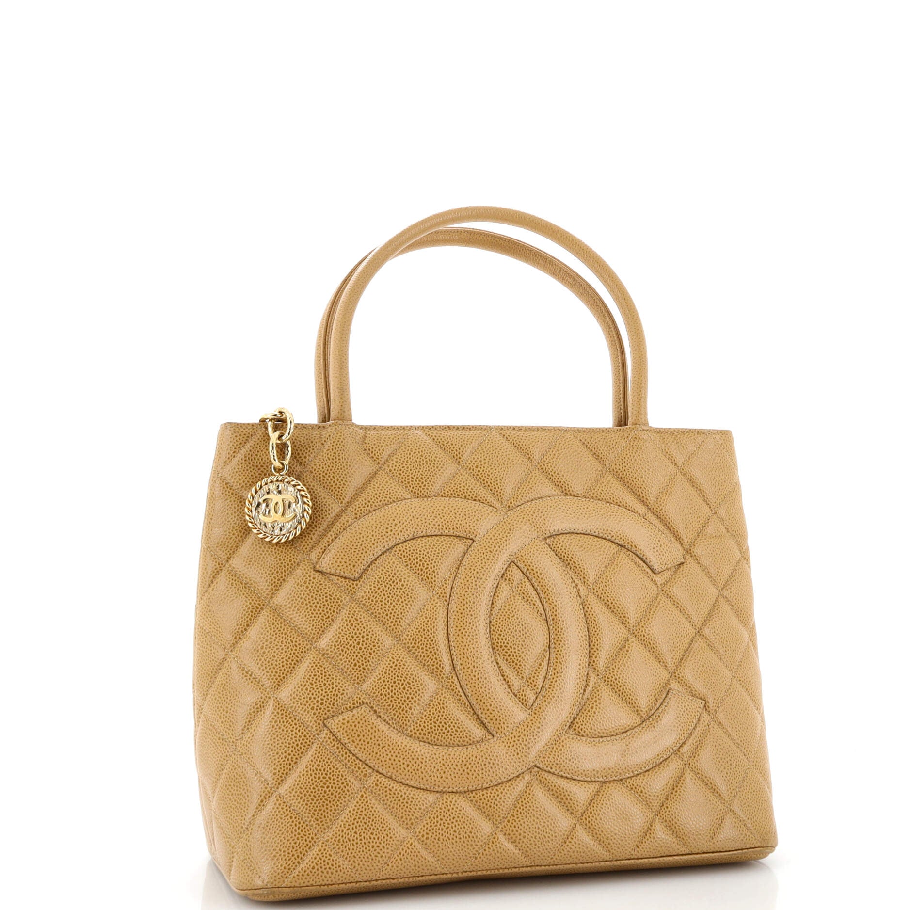 Introducing the iconic Chanel Medallion Tote in luxurious quilted caviar leather. This timeless piece features the signature CC logo charm and a spacious interior perfect for everyday essentials. The classic design is elevated with a touch of elegance, making it a versatile accessory for any occasion. Crafted with meticulous attention to detail, this handbag exudes sophistication and style, making it a must-have for fashion enthusiasts and collectors alike. Elevate your wardrobe with the timeless allure of the Chanel Medallion Tote Quilted Caviar.