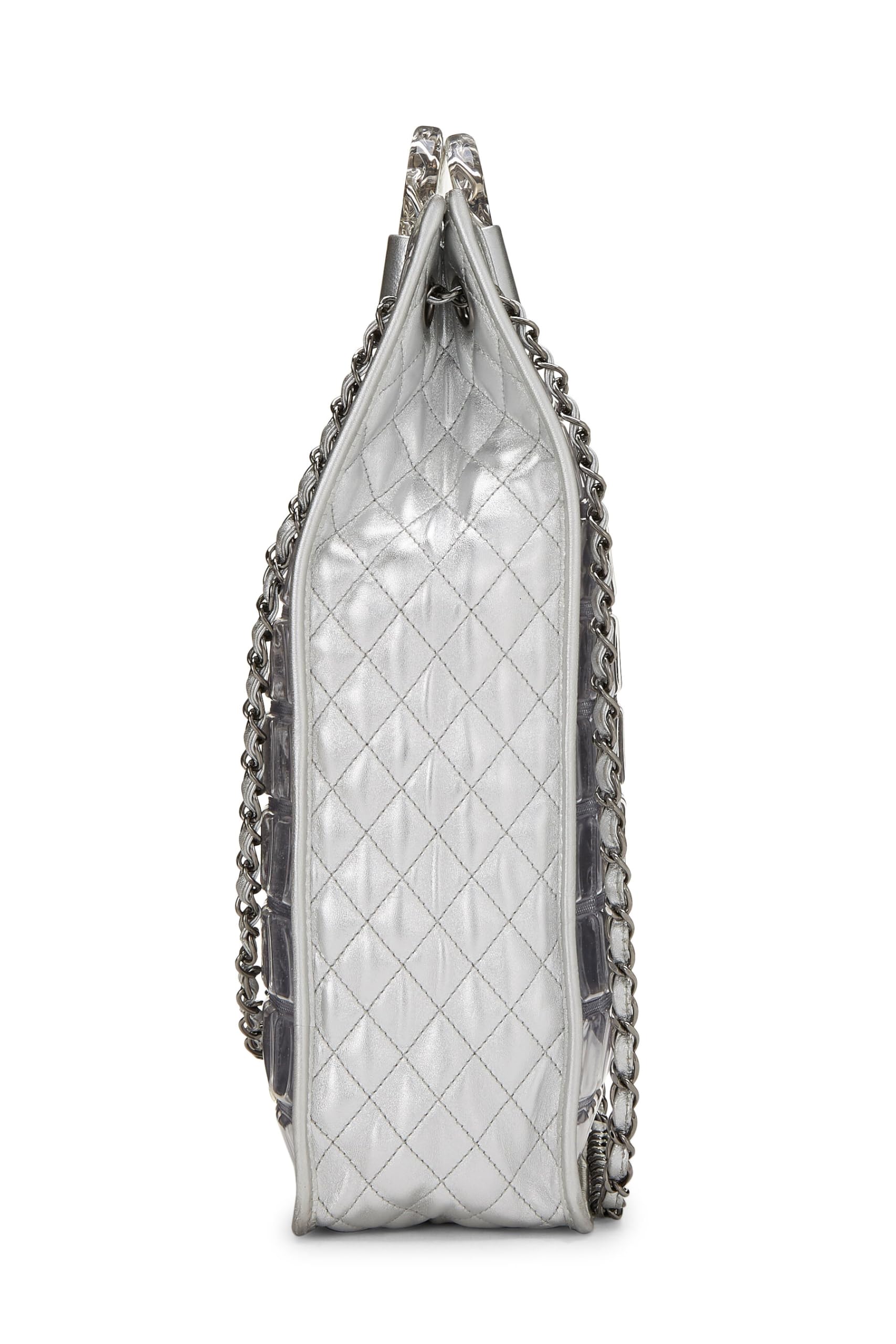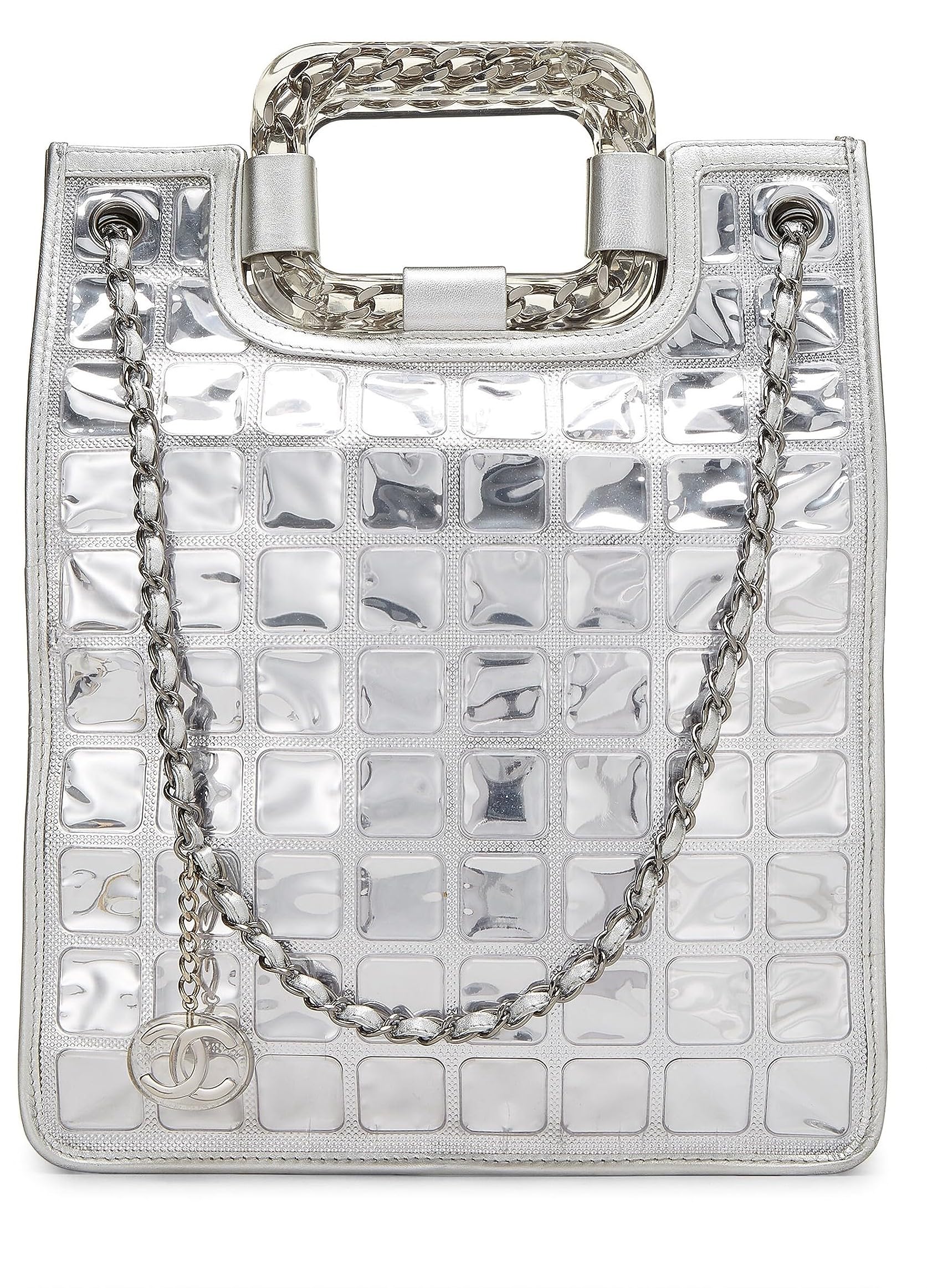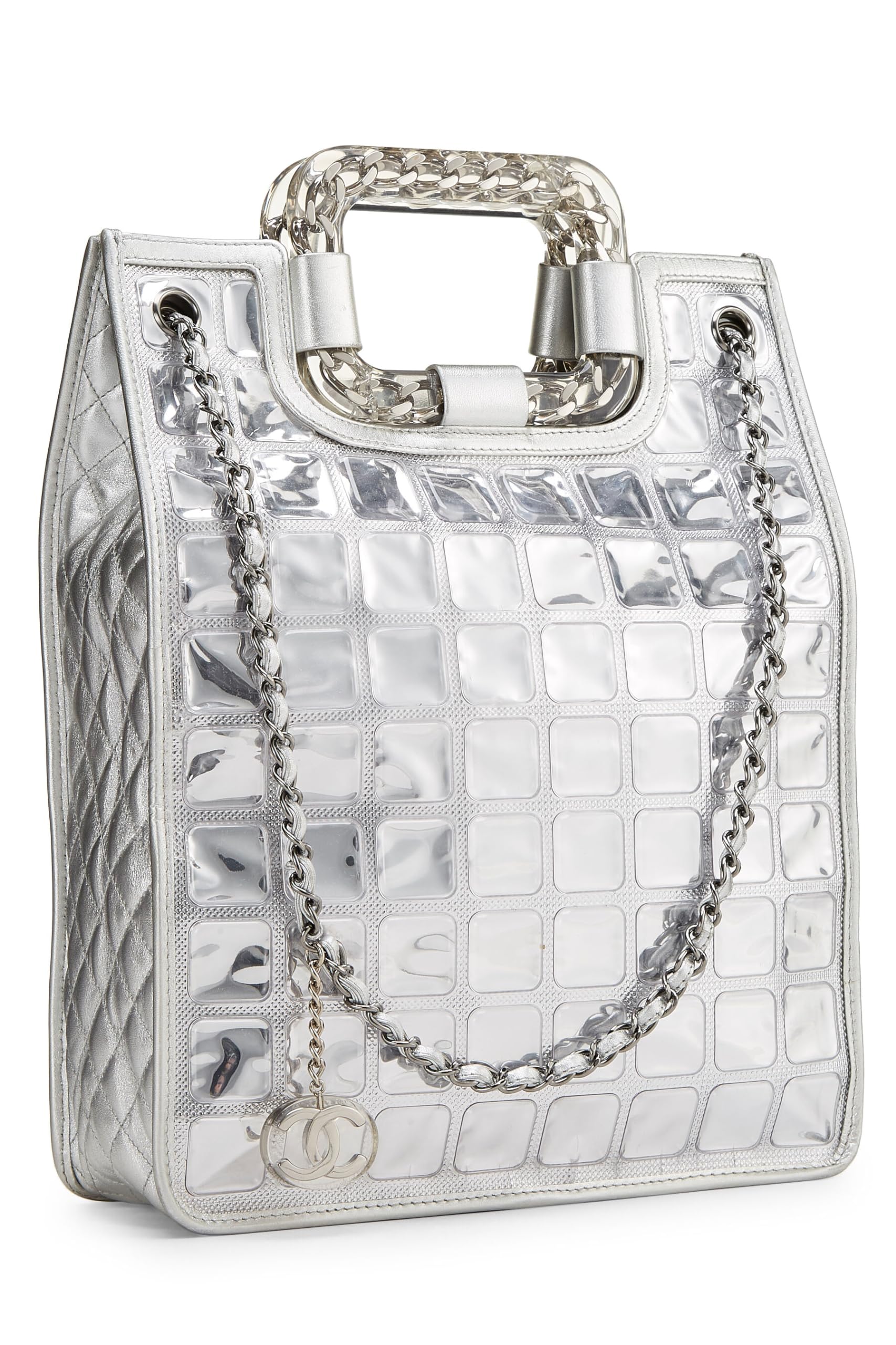 Chanel, Metallic Silver Quilted Leather Ice Cube Shopping Tote, Silver