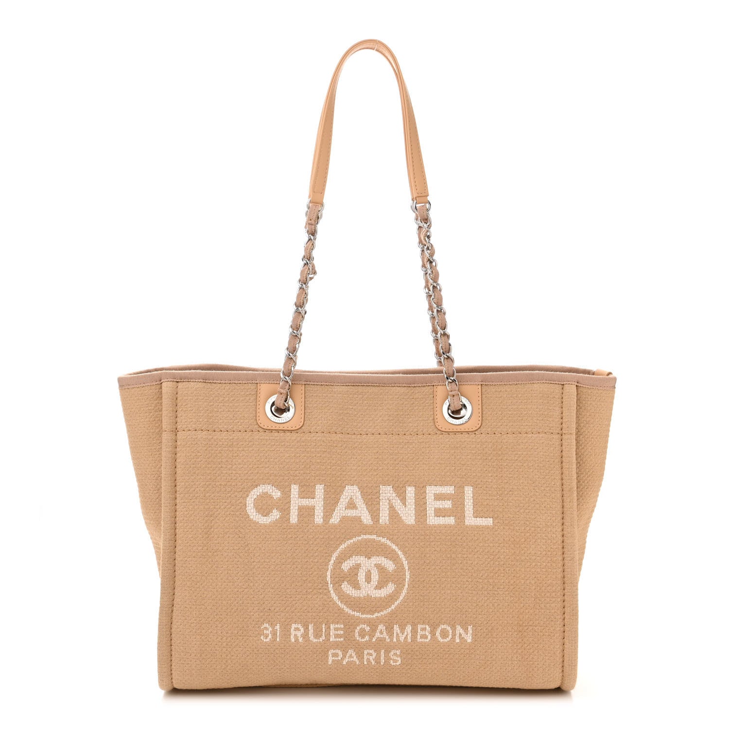 Elevate your style with the timeless elegance of the Chanel Mixed Fibers Small Deauville Tote in Beige. Crafted with a perfect blend of luxurious fabrics, this tote exudes sophistication and versatility. The iconic Chanel logo subtly adorns the front, adding a touch of glamour to any ensemble. With its spacious interior and durable construction, this tote is a must-have accessory for the fashion-forward individual. Carry it from day to night with effortless grace and impeccable style.