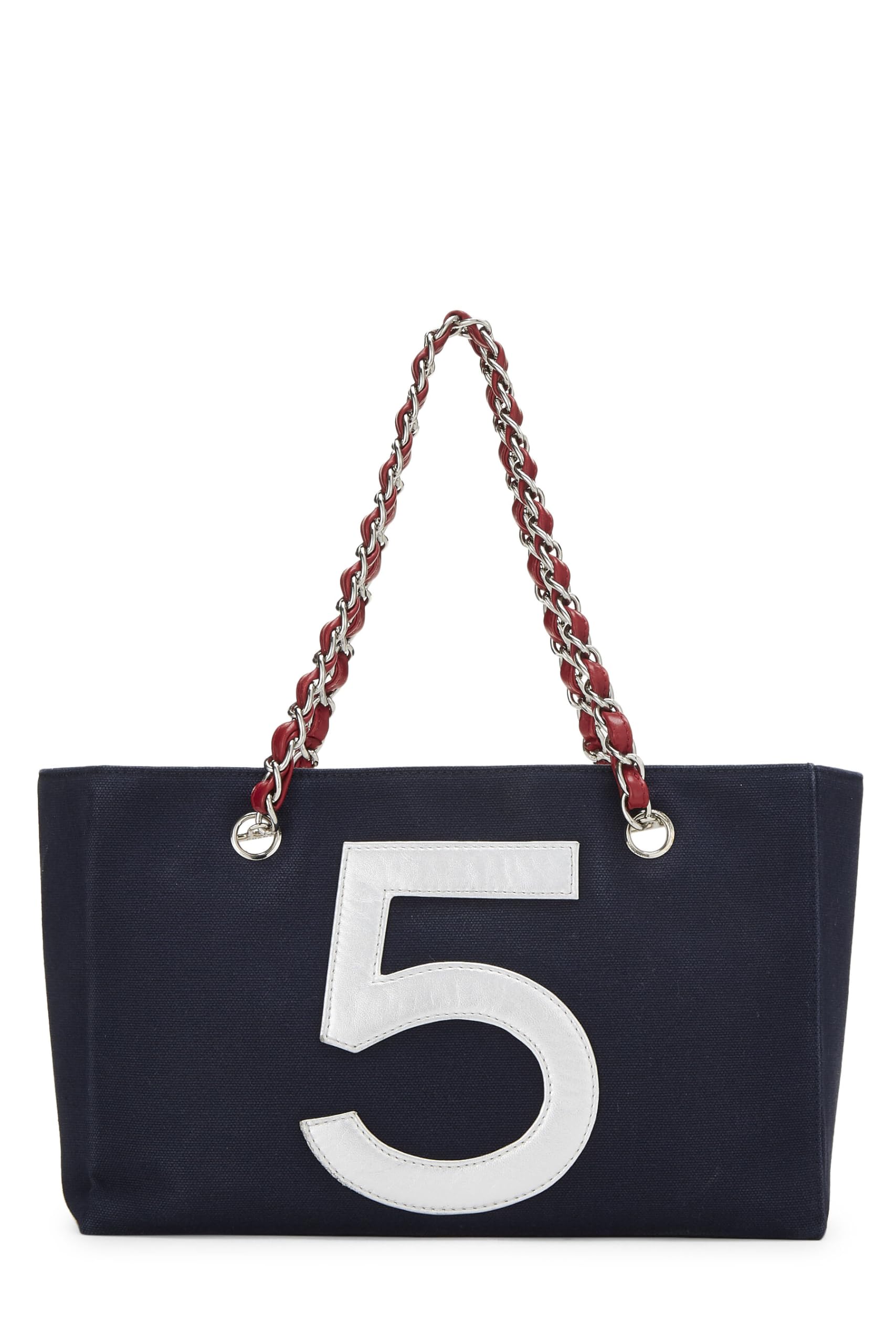 Chanel, Navy Canvas & Leather No.5 Foil Shopping Tote, Navy