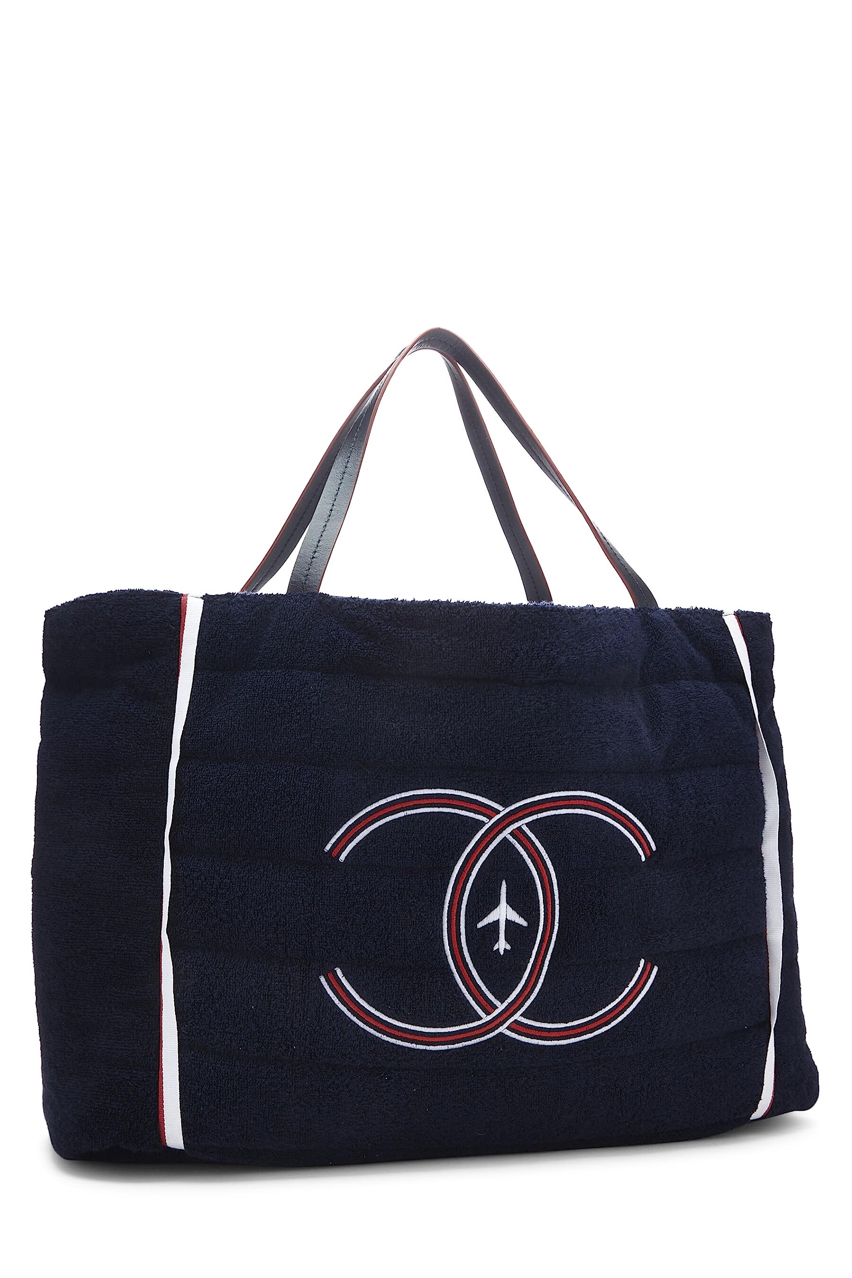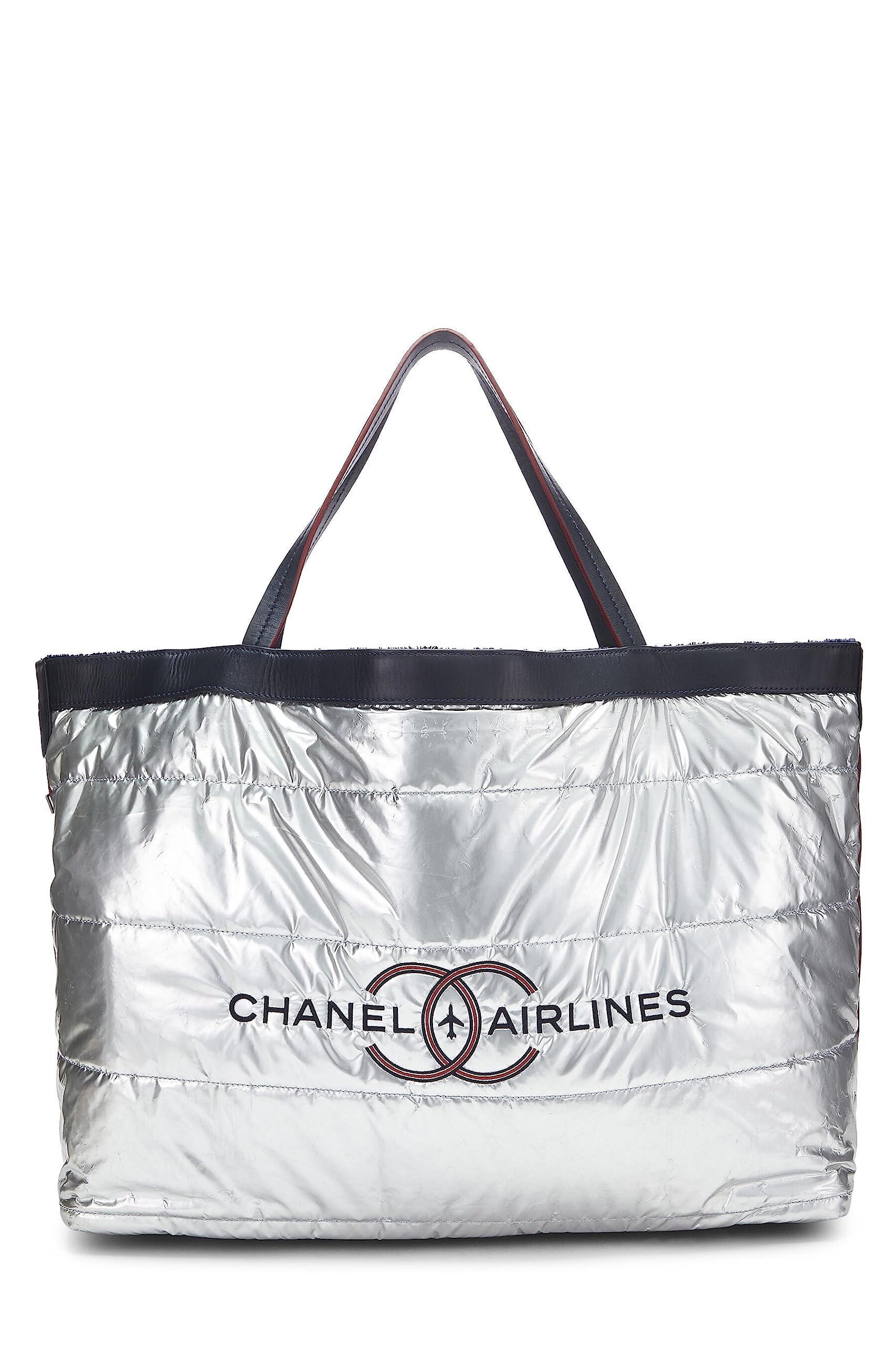 Chanel, Navy Terry Cloth & Silver Nylon Reversible Airlines Tote Large, Silver