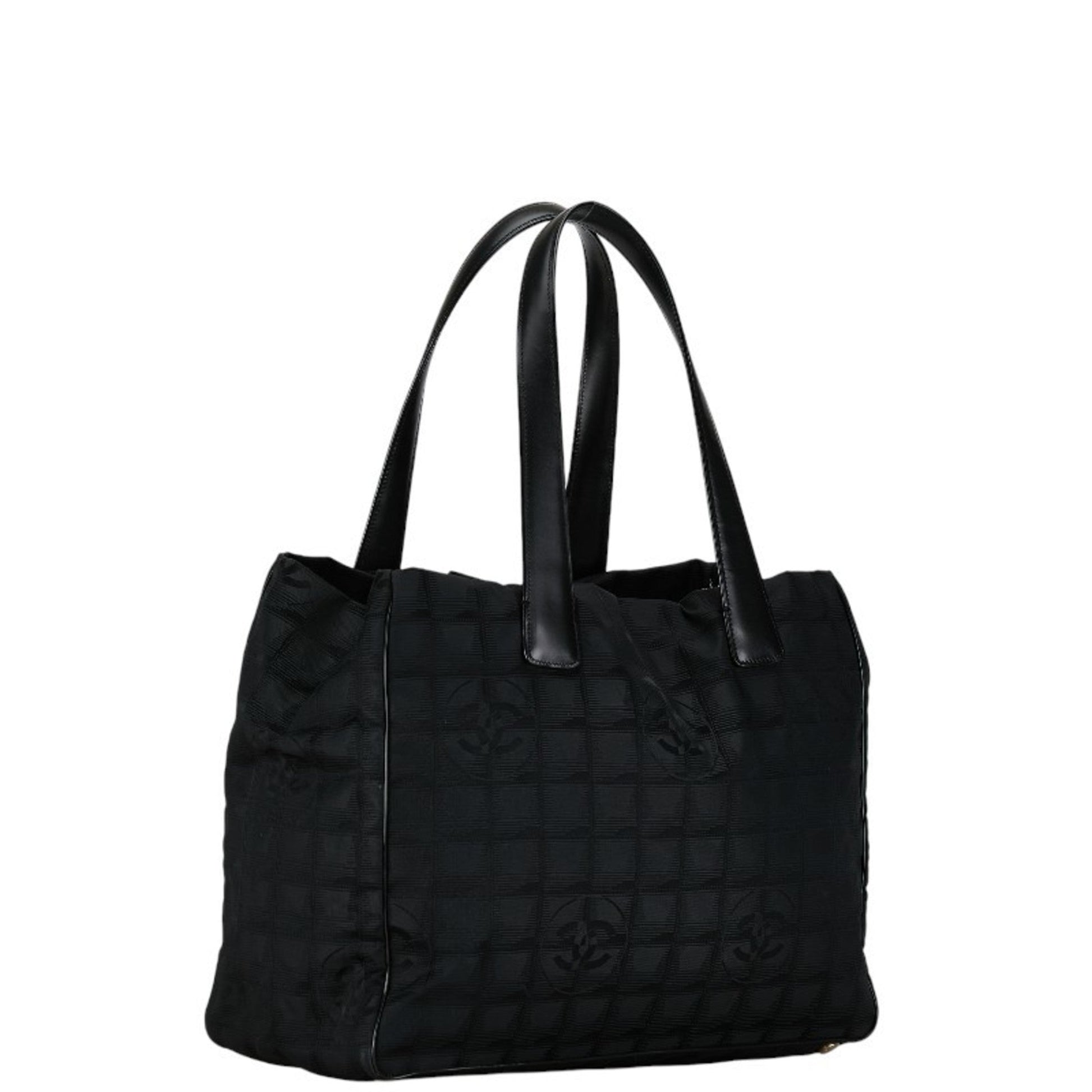 Chanel New Travel Line Tote Bag Handbag Black Canvas Leather Women's CHANEL