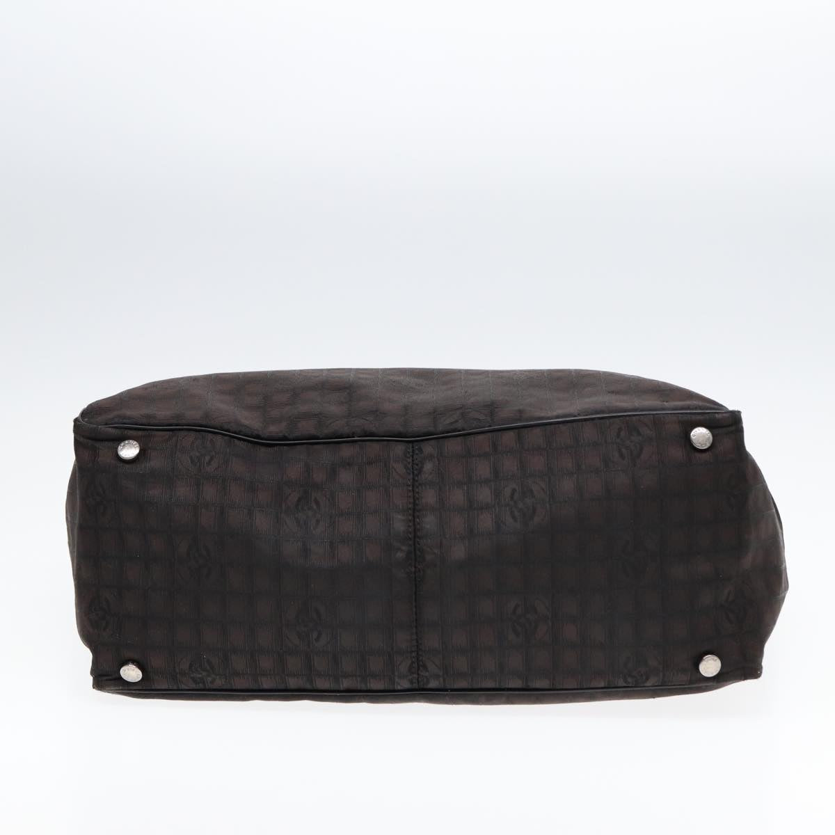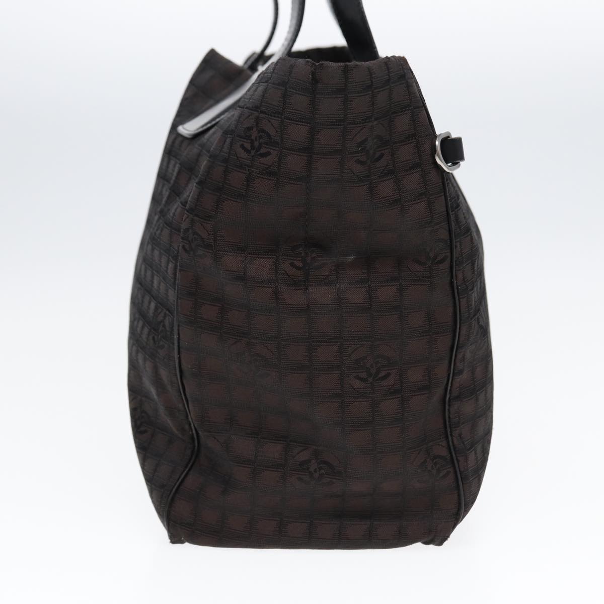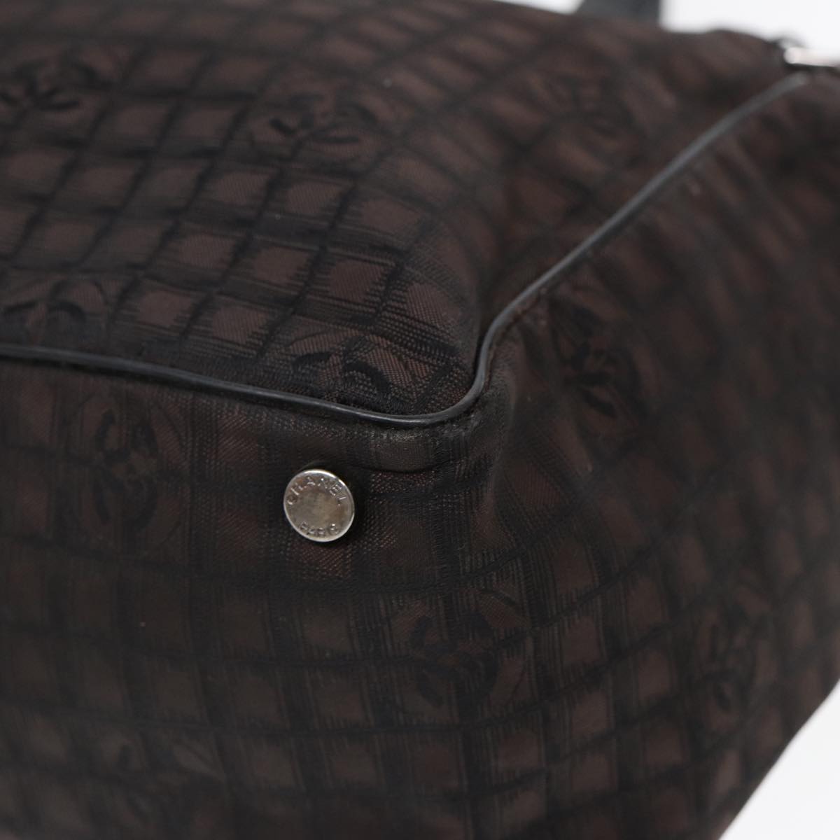 CHANEL New Travel Line Tote Bag Nylon Brown Silver Silver CC Auth bs16605