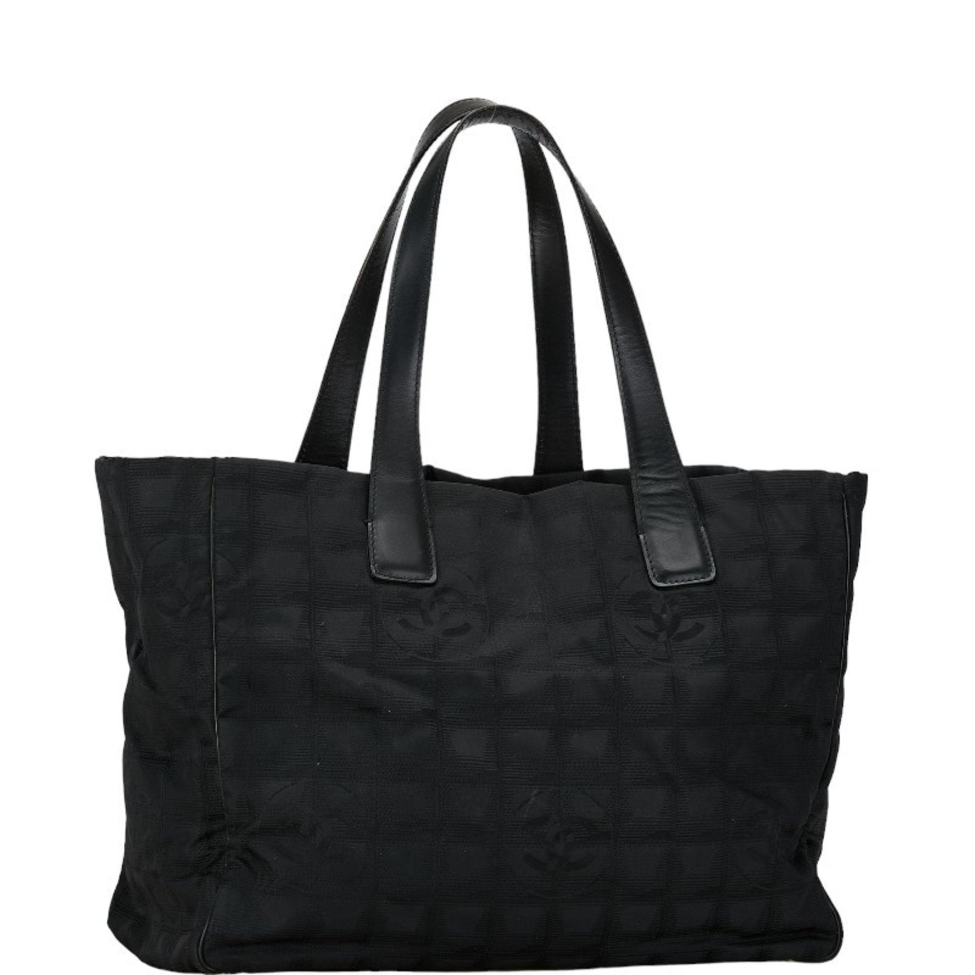 Chanel New Travel Line Tote MM Bag A15991 Black Nylon Leather Women's CHANEL