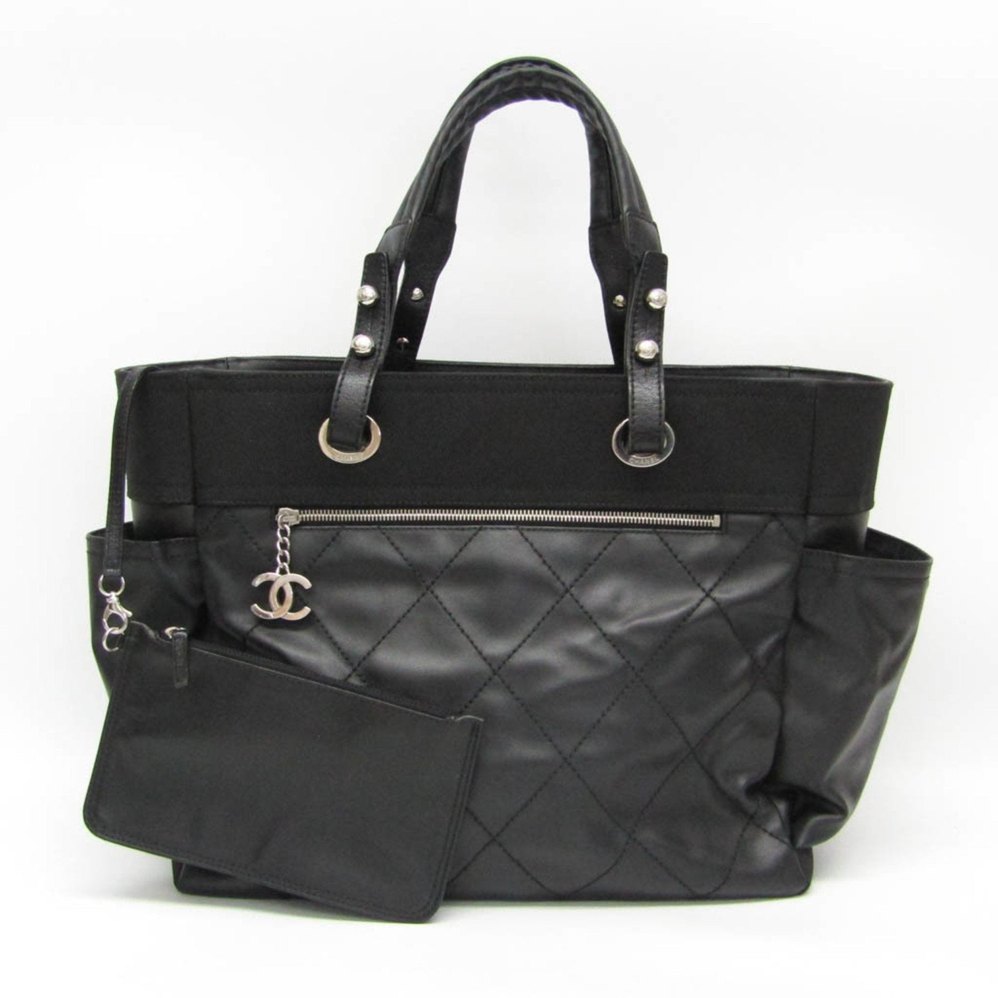 Chanel Paris Biarritz GM A34210 Women's Coated Canvas,Leather Tote Bag Black