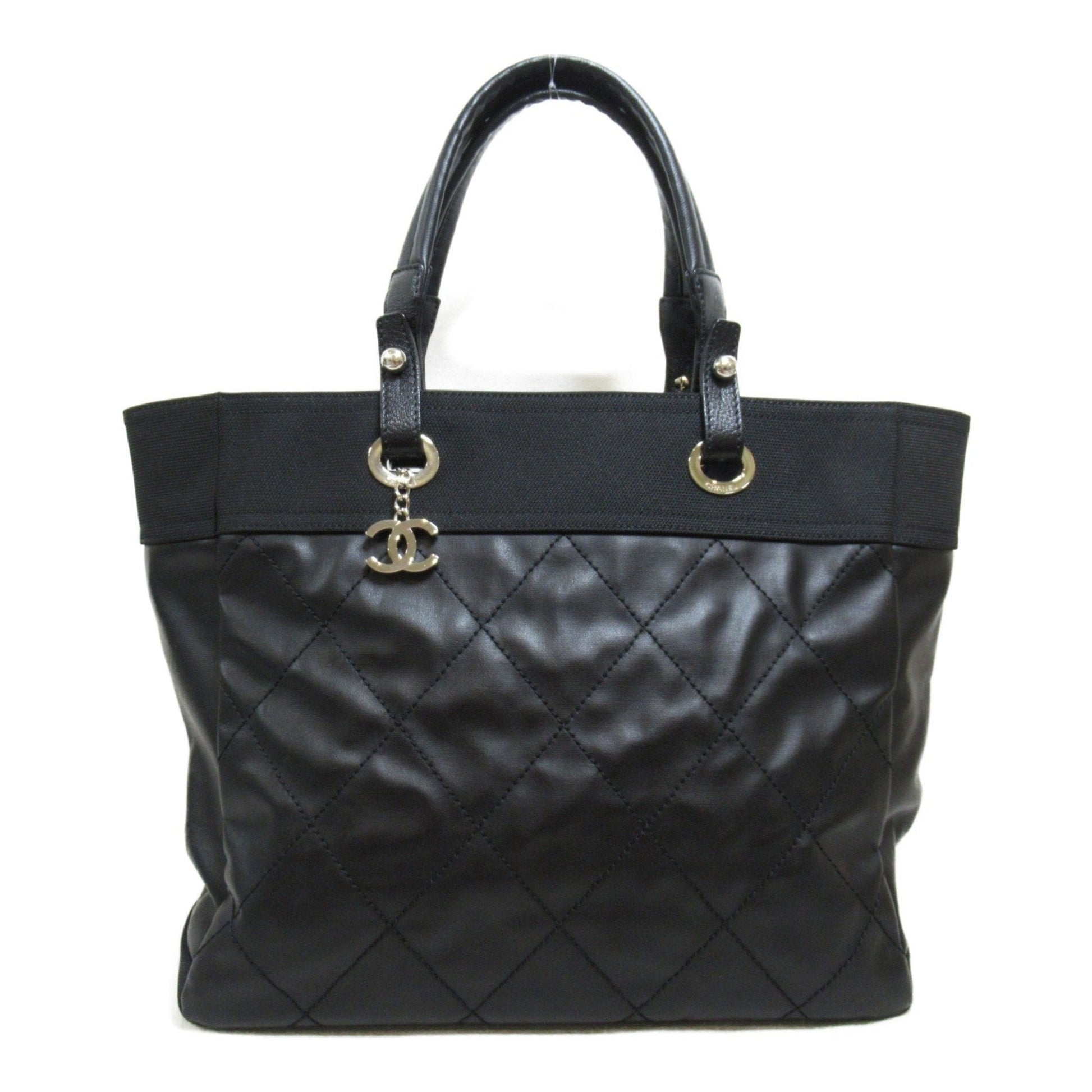 CHANEL Paris Biarritz Tote MM Bag Coated Canvas Women's Black