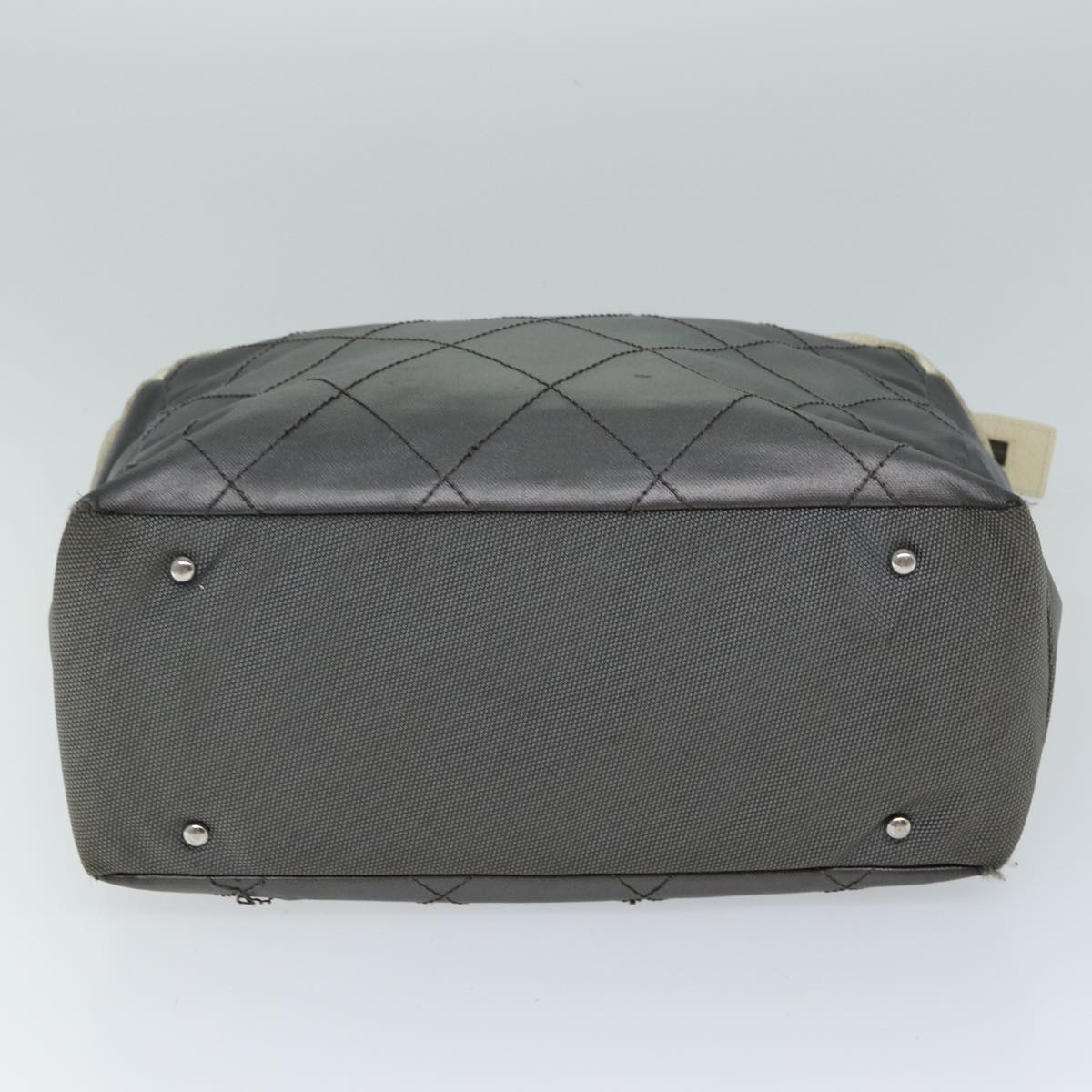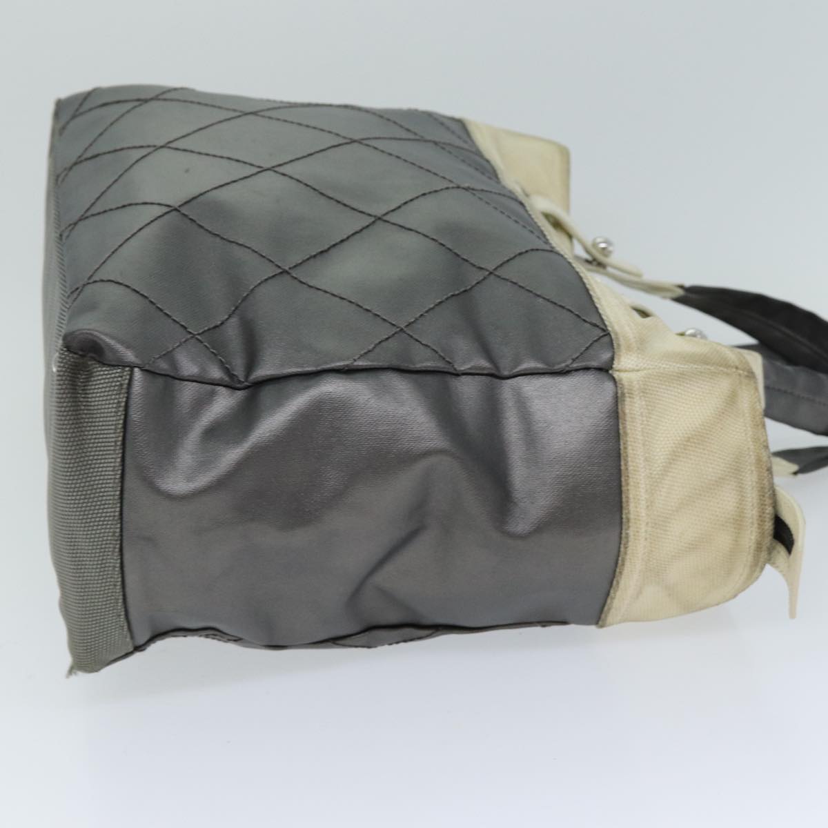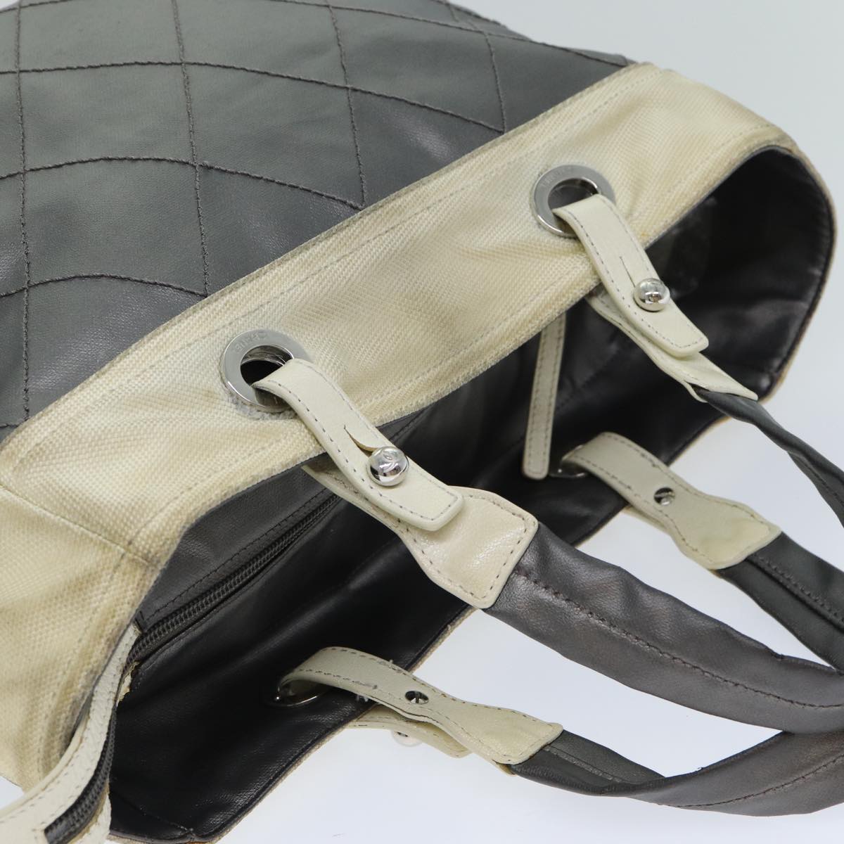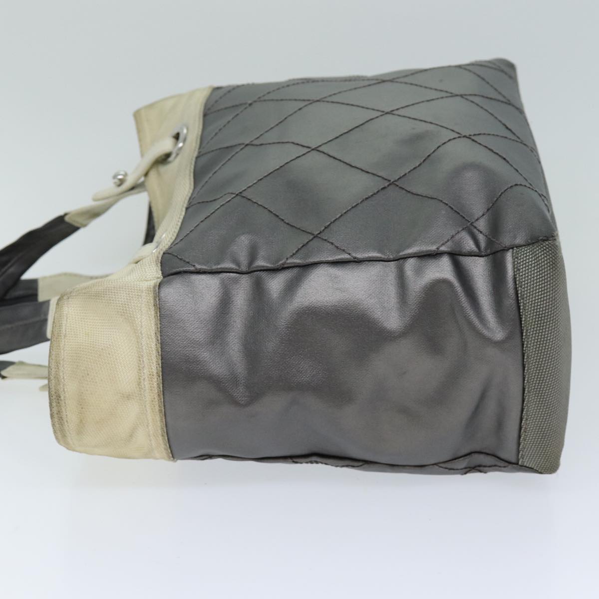 CHANEL Paris Biarritz Tote MM Tote Bag Coated Canvas Silver CC Auth bs15122