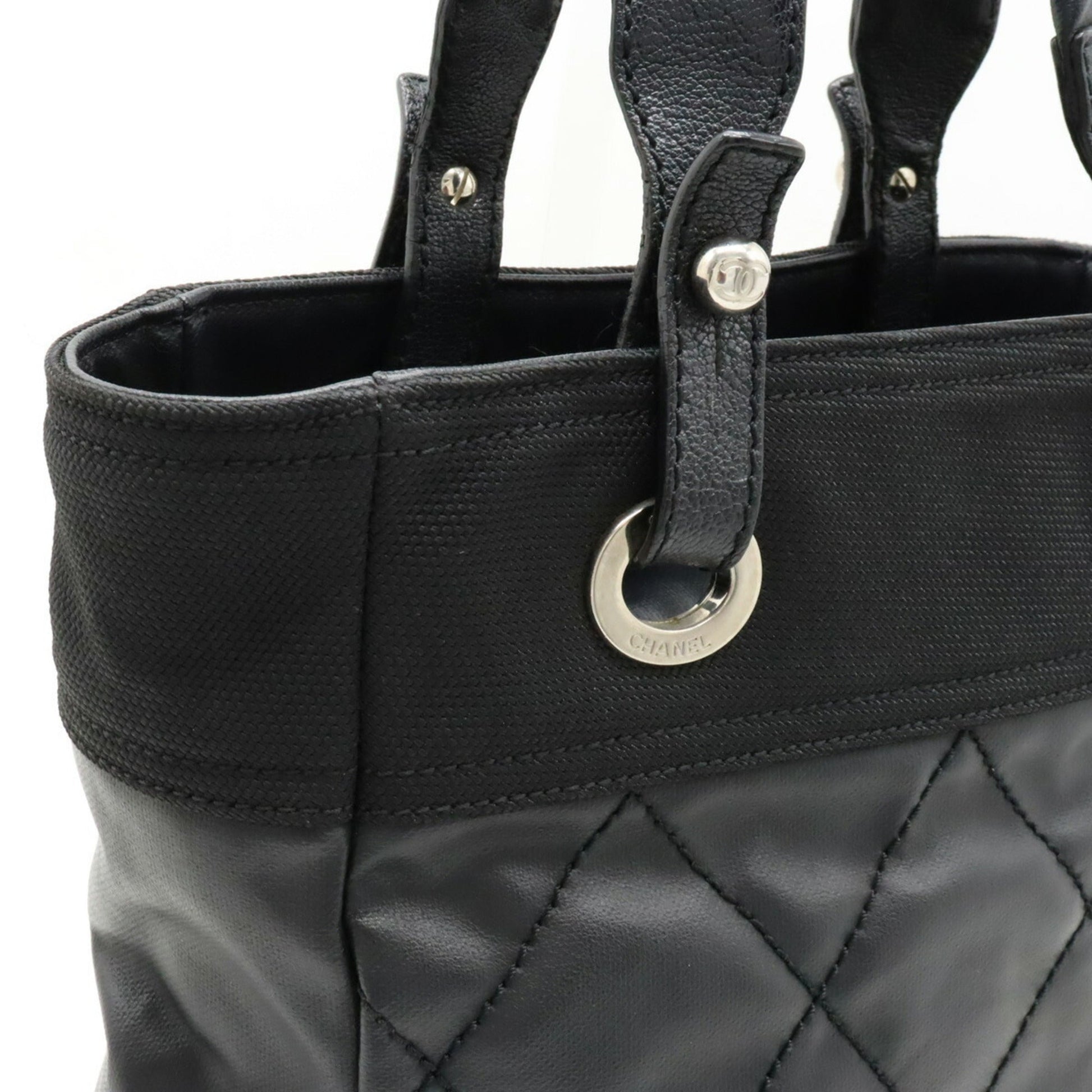 CHANEL Paris Biarritz Tote PM bag Shoulder Coated canvas Leather Black A34208