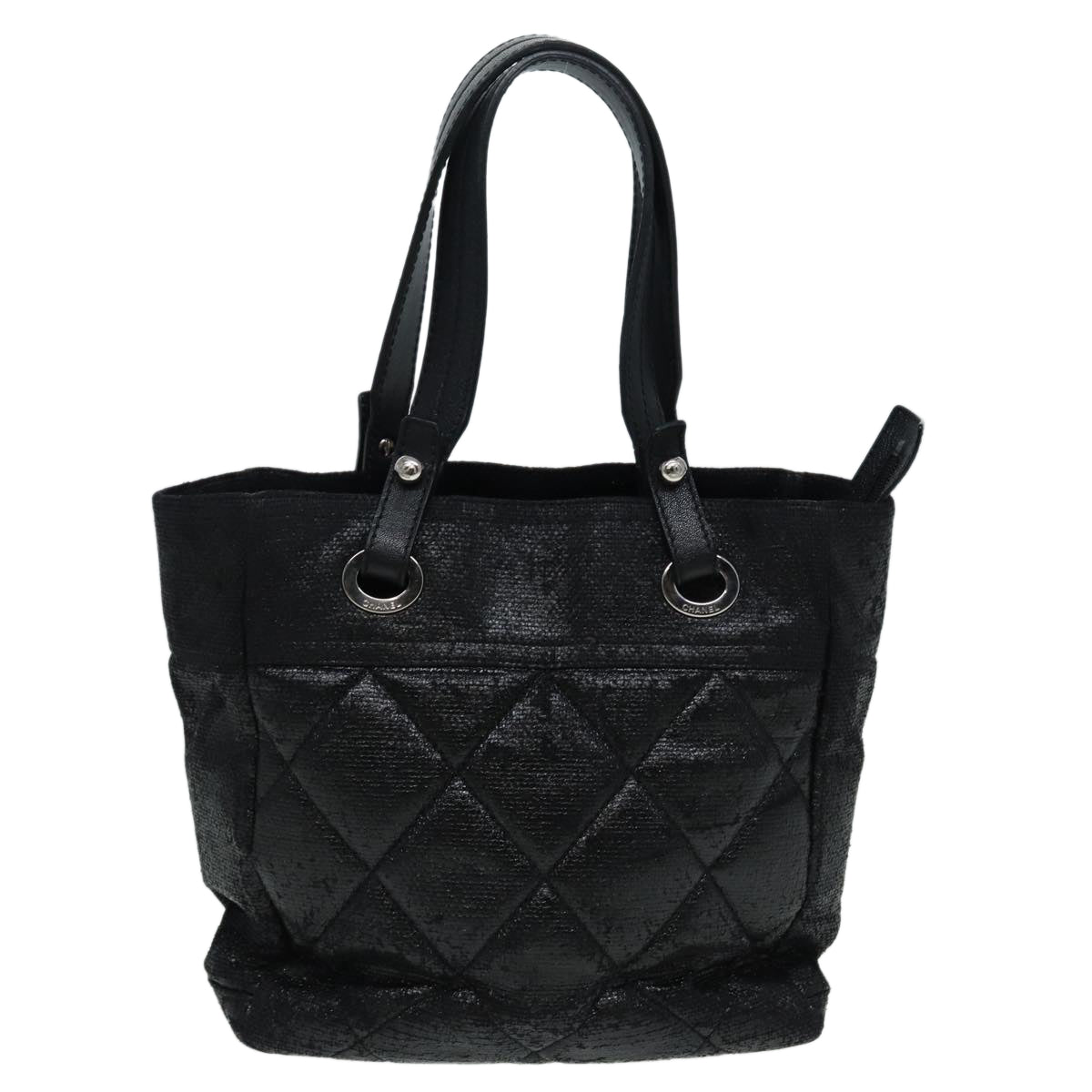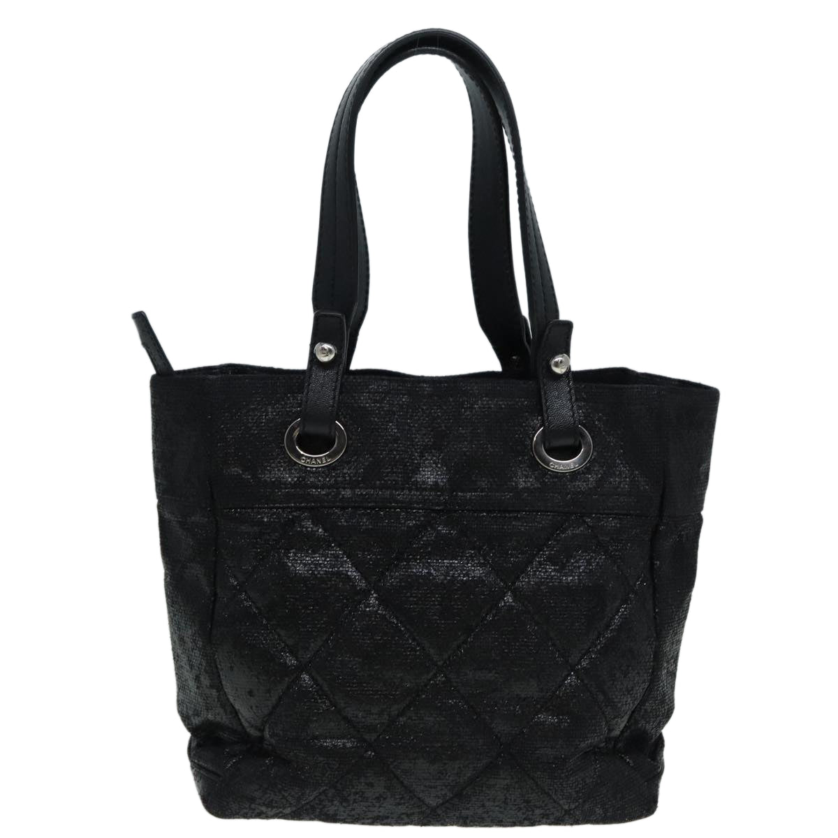 CHANEL Paris Biarritz Tote PM Tote Bag Coated Canvas Black CC Auth yb614