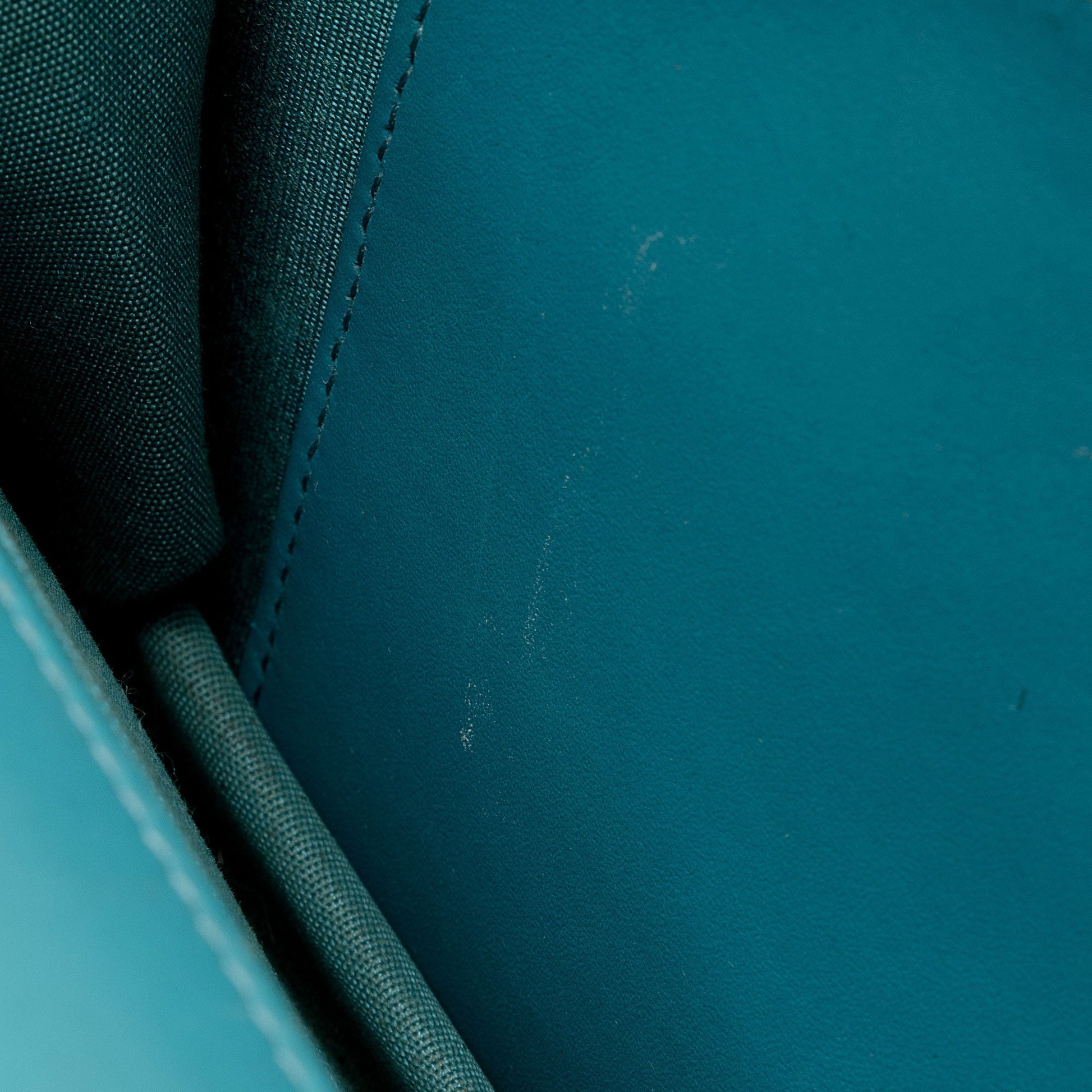 Condition : New Discoloration and light scuffs throughout exterior. Light scuffs and wear to exterior bottom corners. Marks and darkening throughout leather woven into shoulder strap. Light surface scratches to hardware. Visible scuffs and wear throughout interior flap. Light discoloration and marks throughout interior.