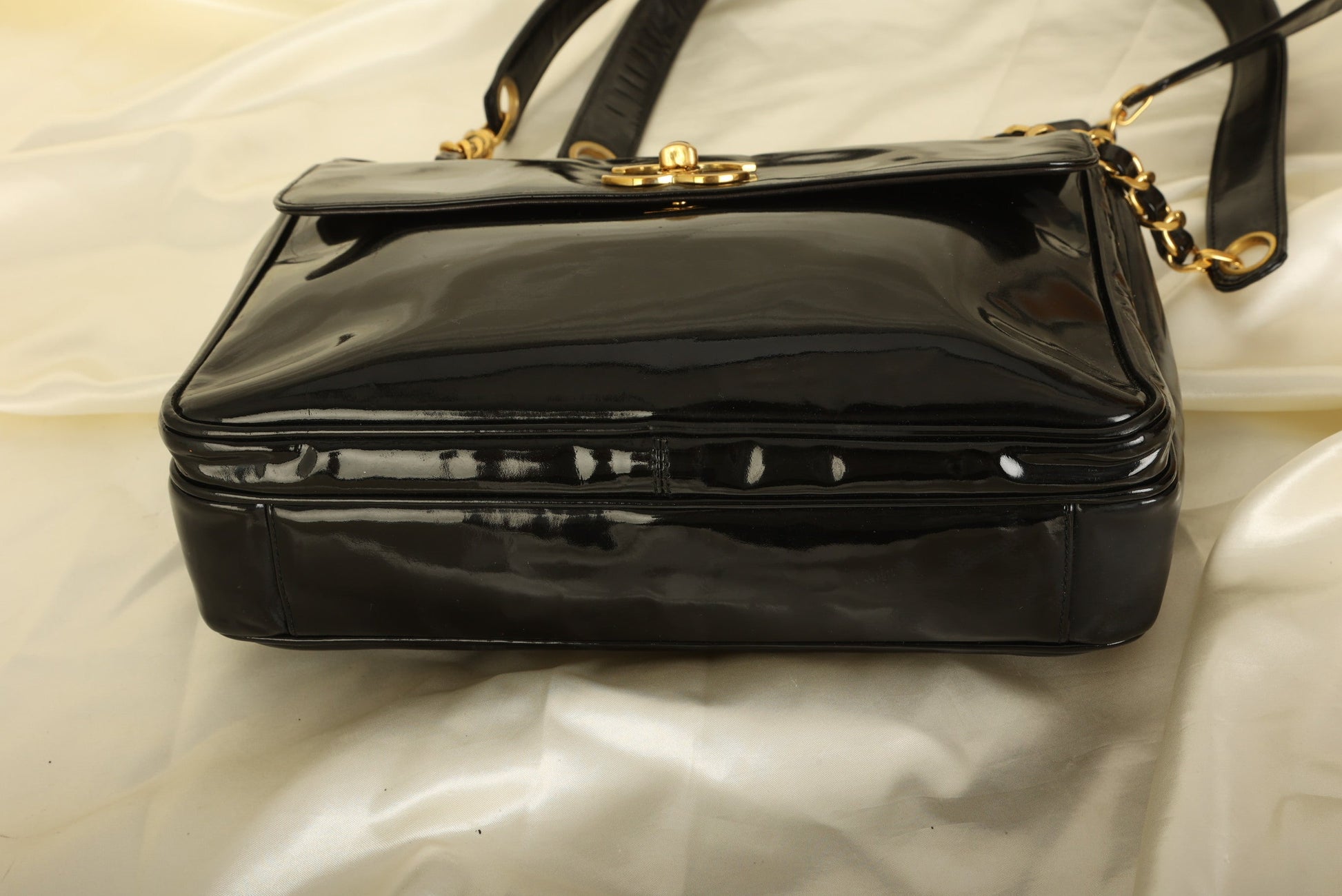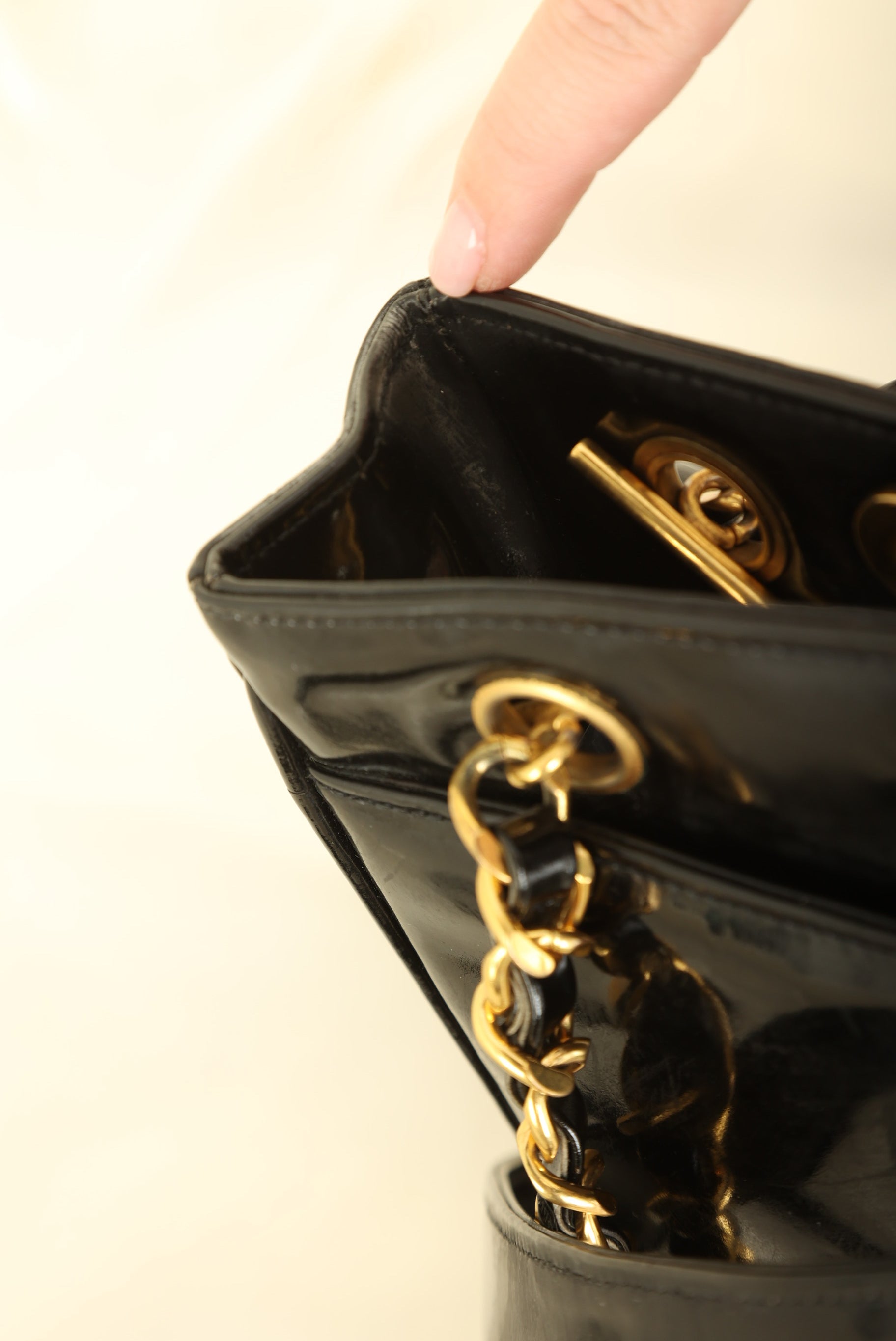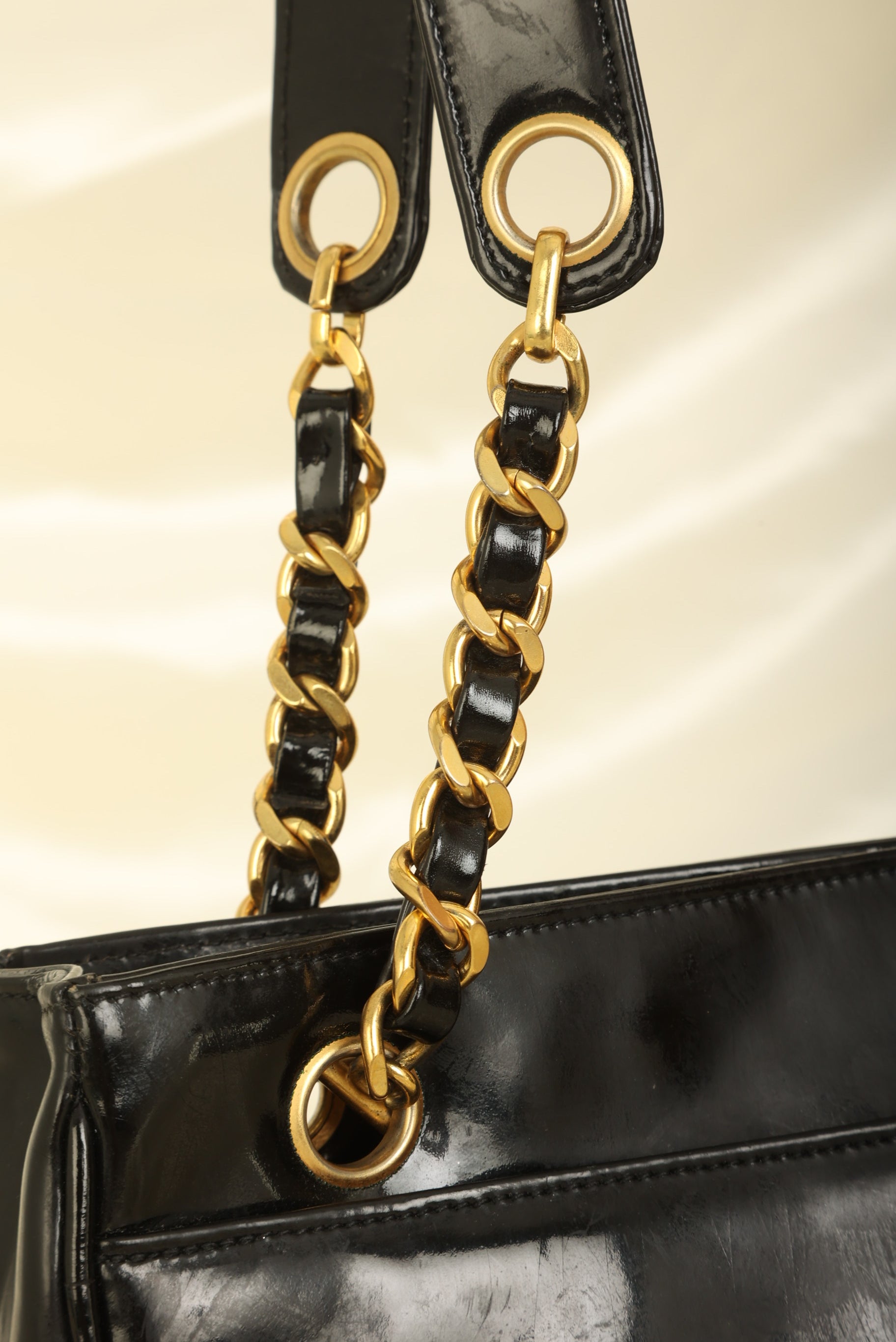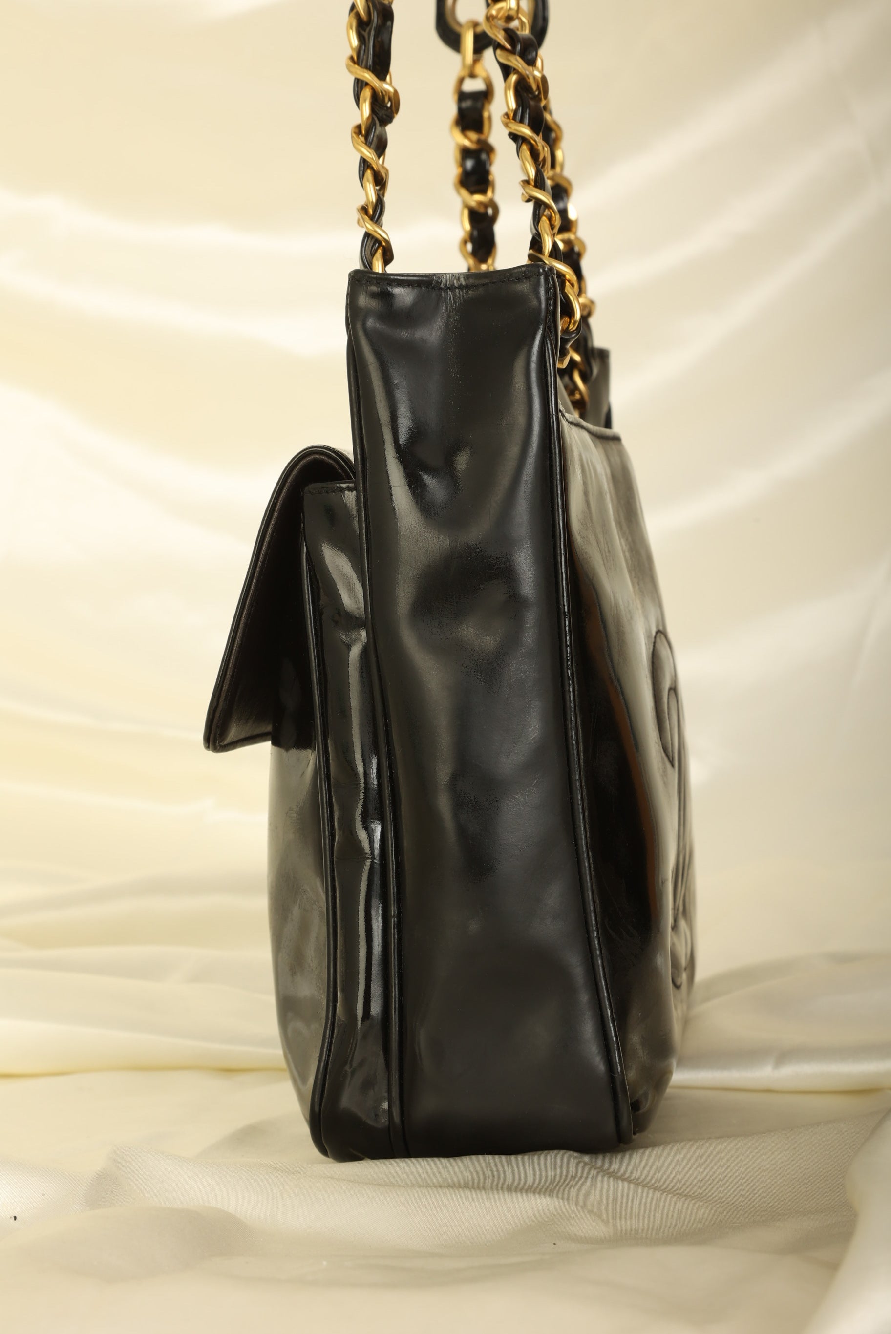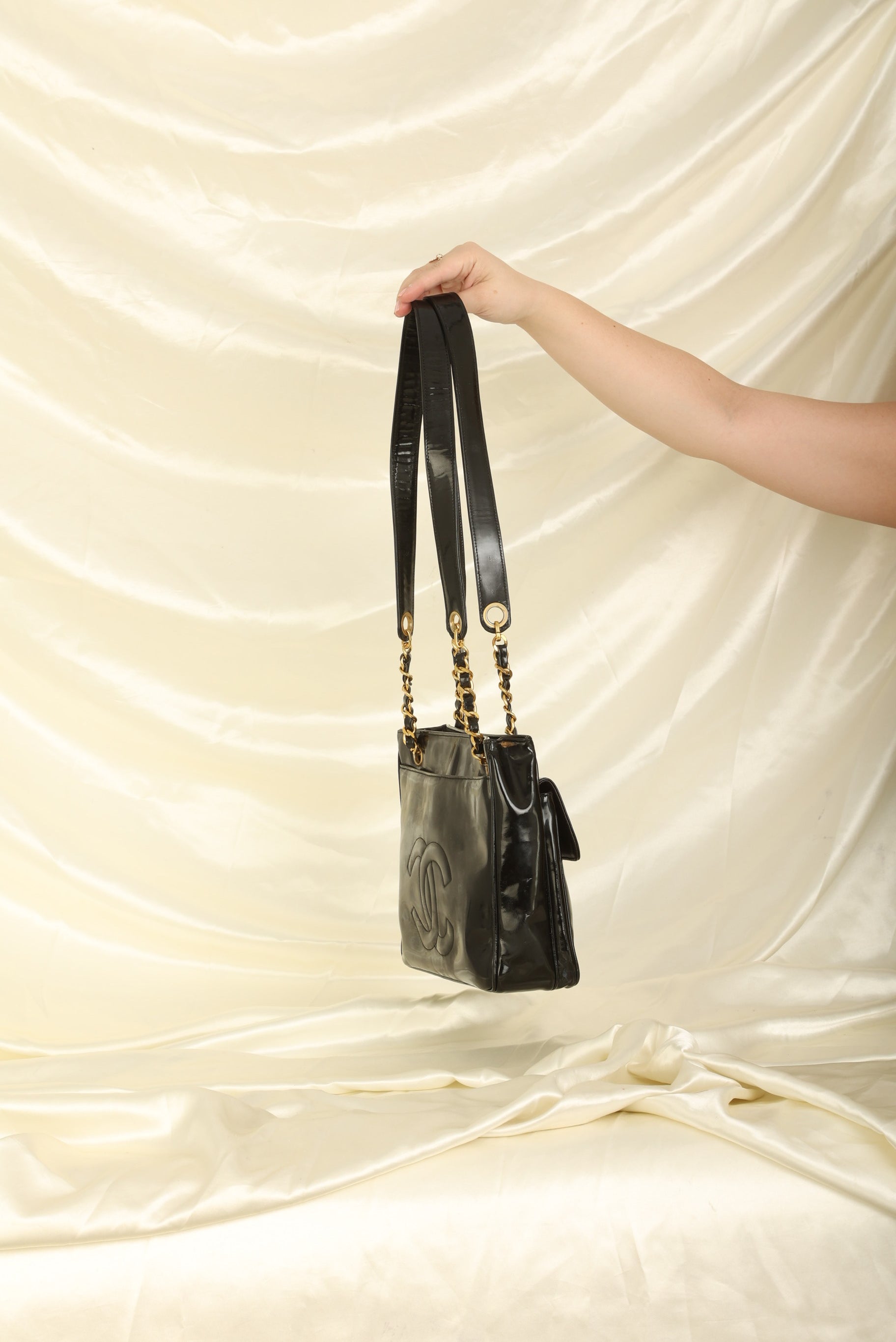 Channel your inner Wednesday Adams this Halloween! Dropping in the shop is the Chanel Patent Turnlock Tote! Two bags in one and such a versatile piece! One side is crafted with the Chanel Timeless logo and the other side is a 24k gold plated turnlock logo. Both sides have pockets. The Interior is spacious and can fit an iPad and the rest of your daily essentials. With 24k gold-plated chains and multiple compartments, this bag is a classic piece to enjoy for years.