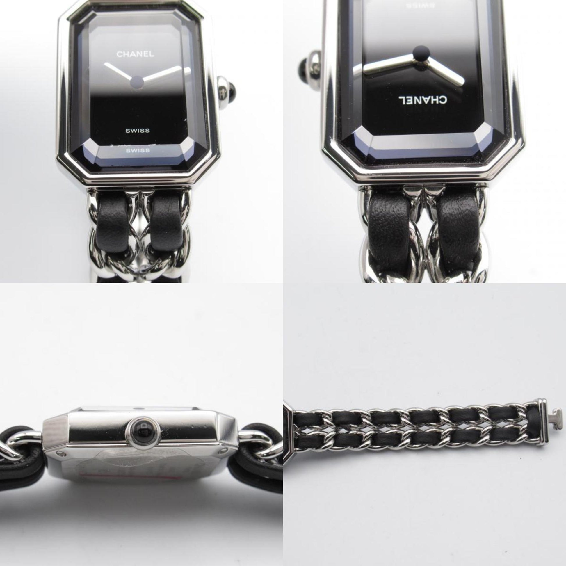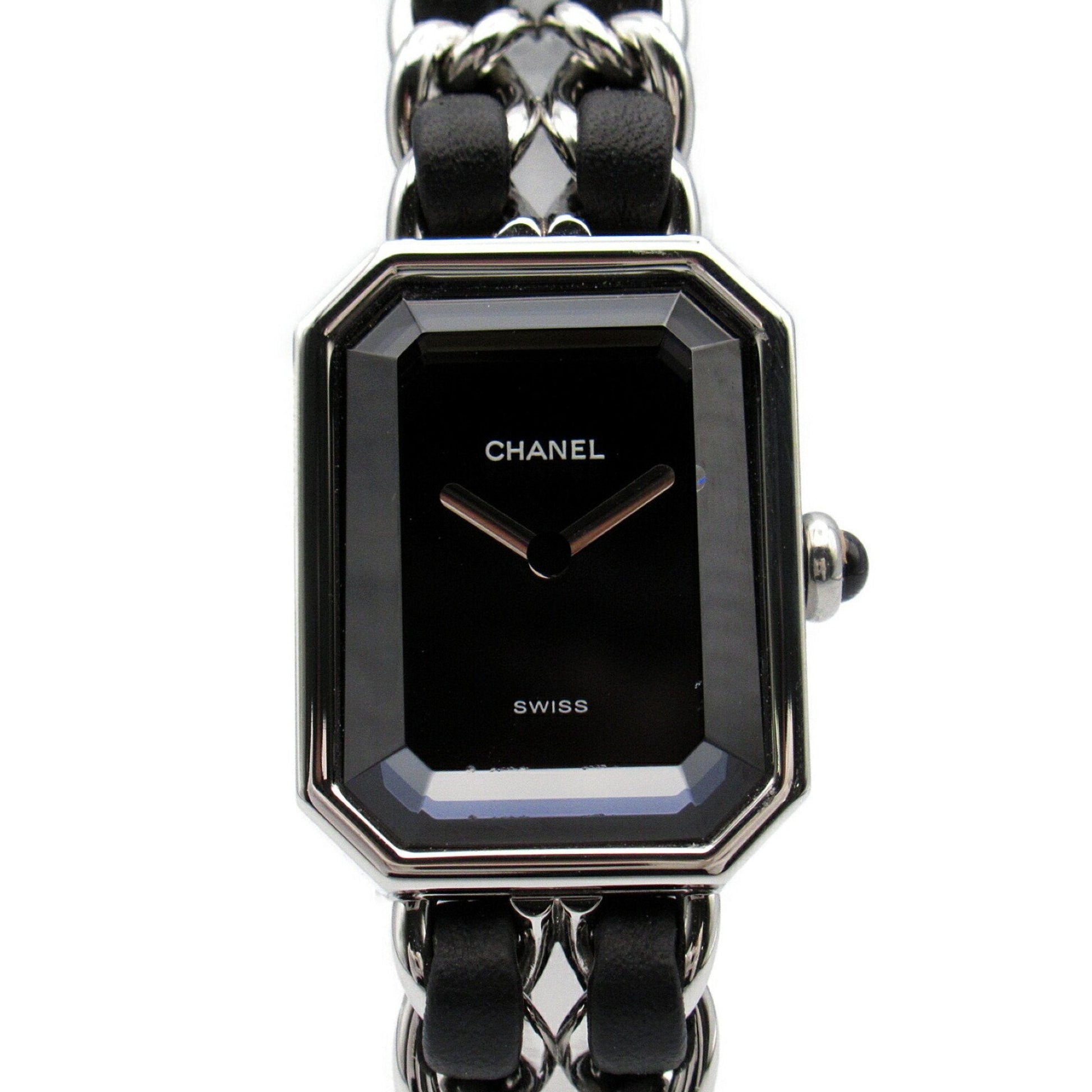 CHANEL Premiere L Watch Stainless Steel Leather Strap Women's Black H0451
