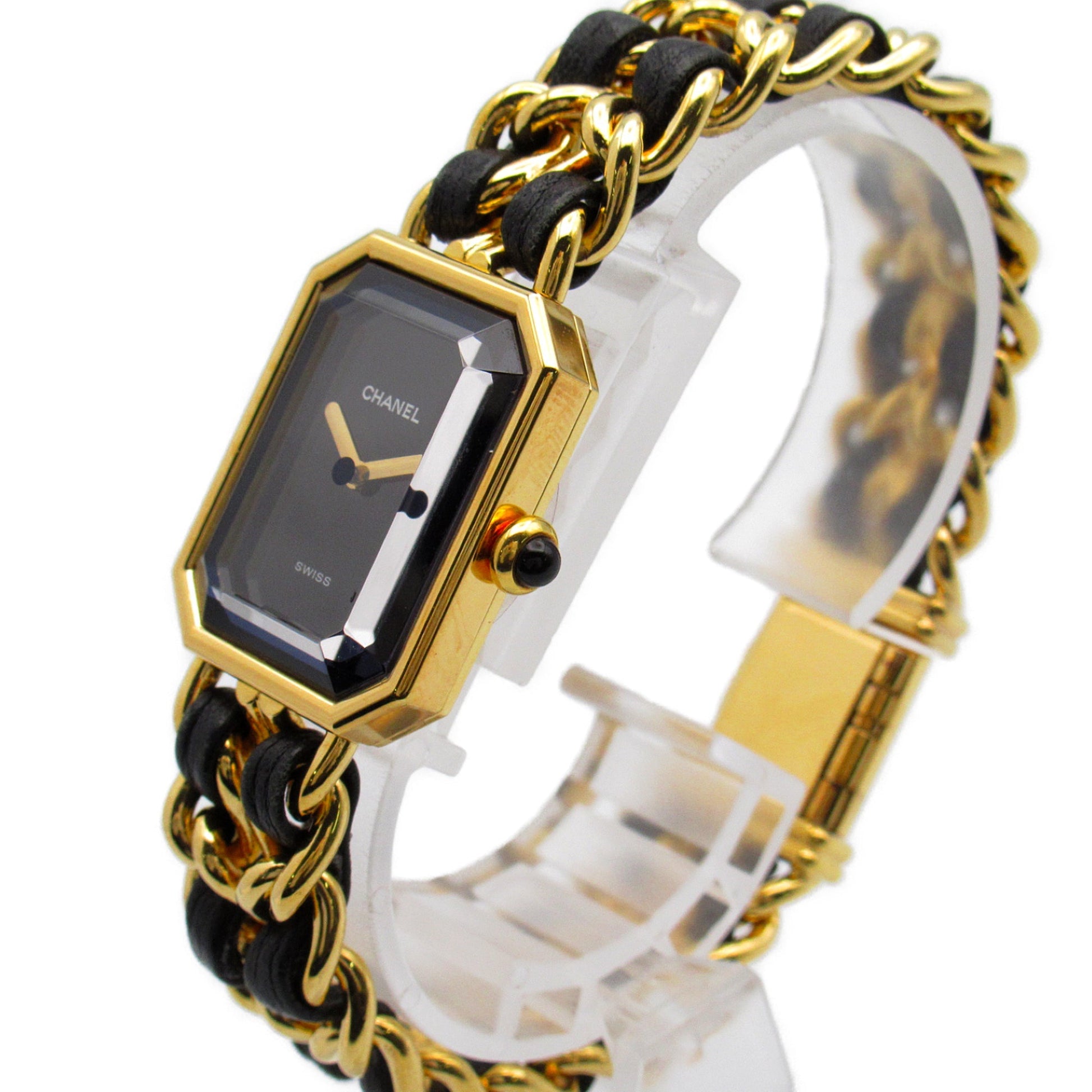 CHANEL Premiere L Wrist Watch H0001 Quartz Black Gold Plated Leather belt H0001