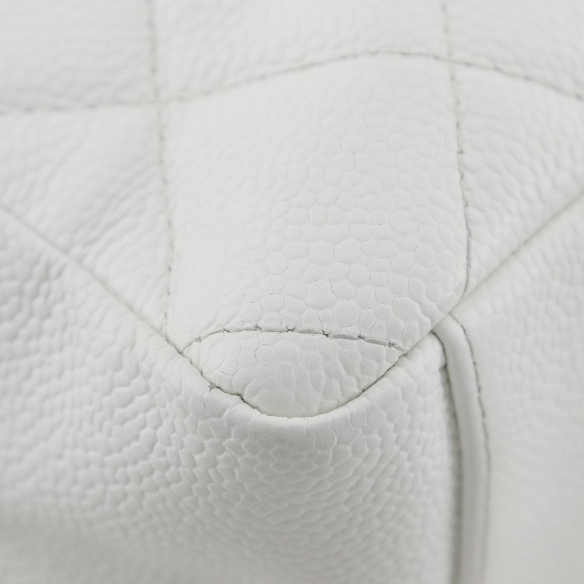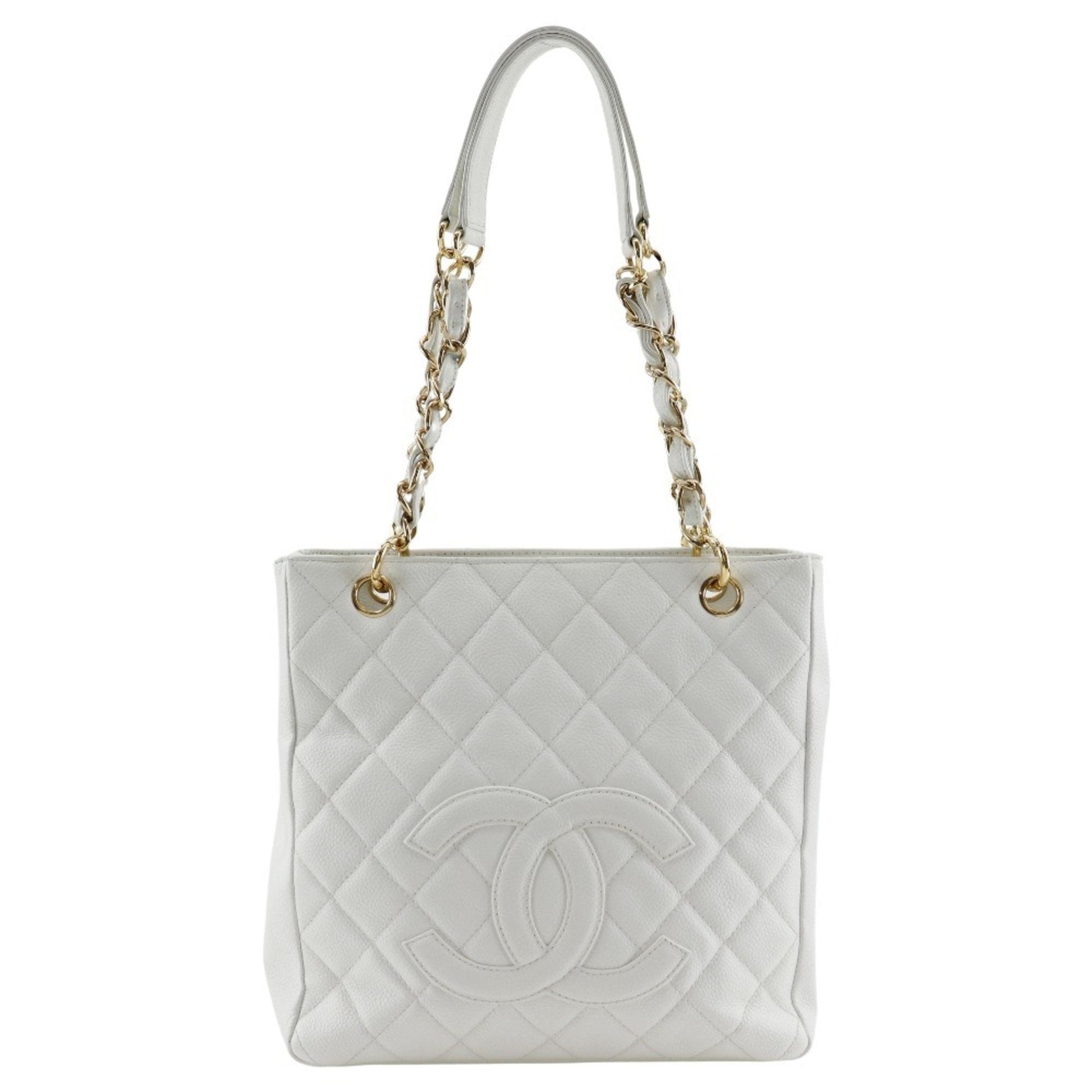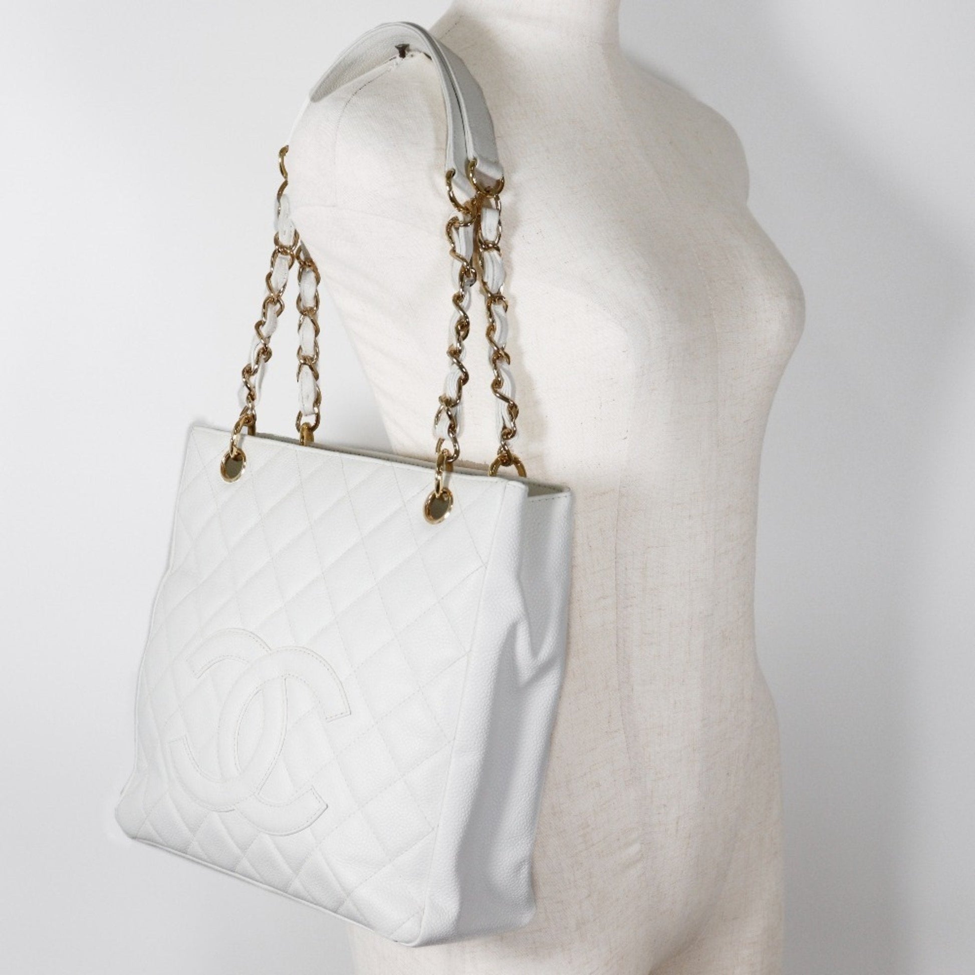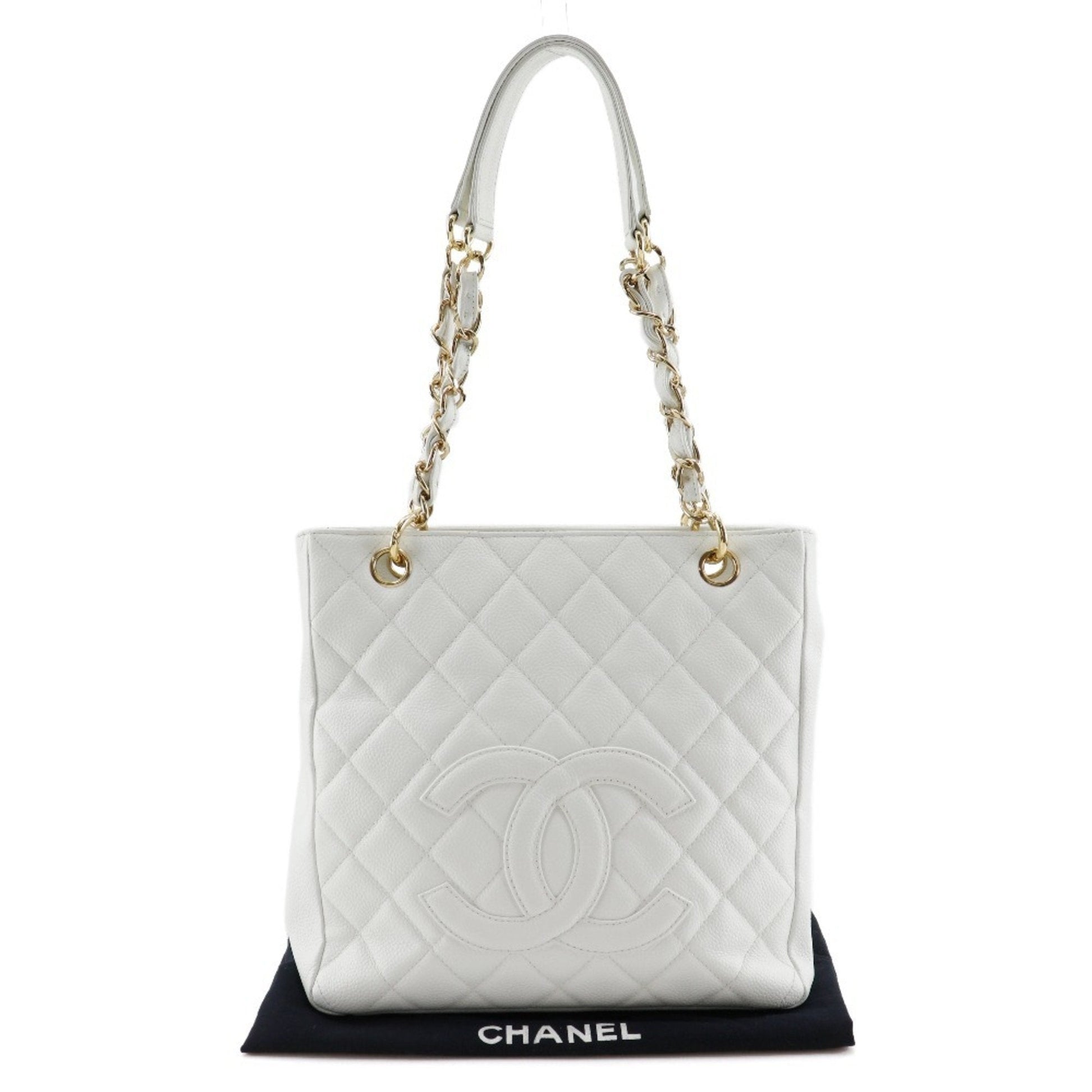 CHANEL PST Chain Tote Shoulder Bag Caviar Skin White A5 Snap Button Women's