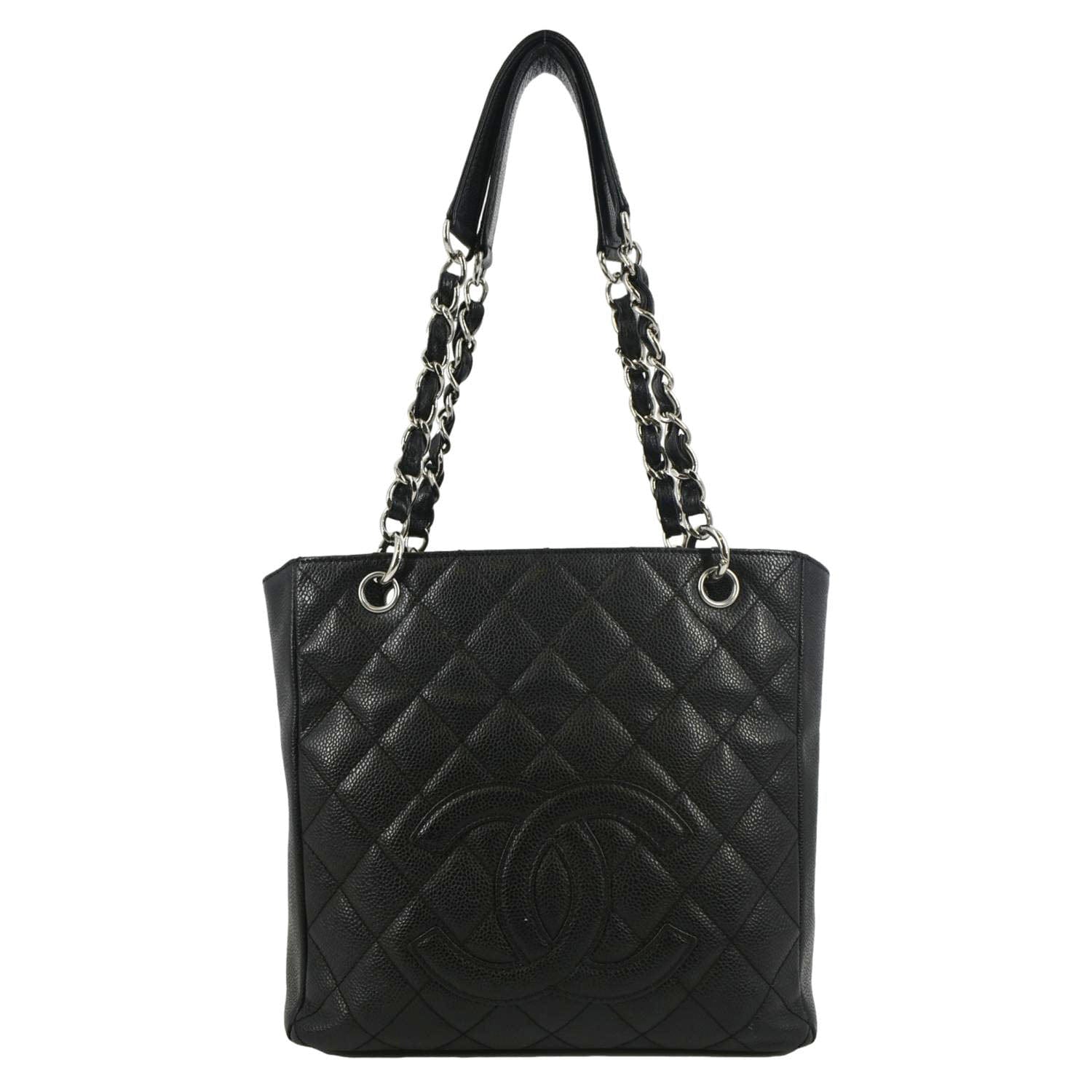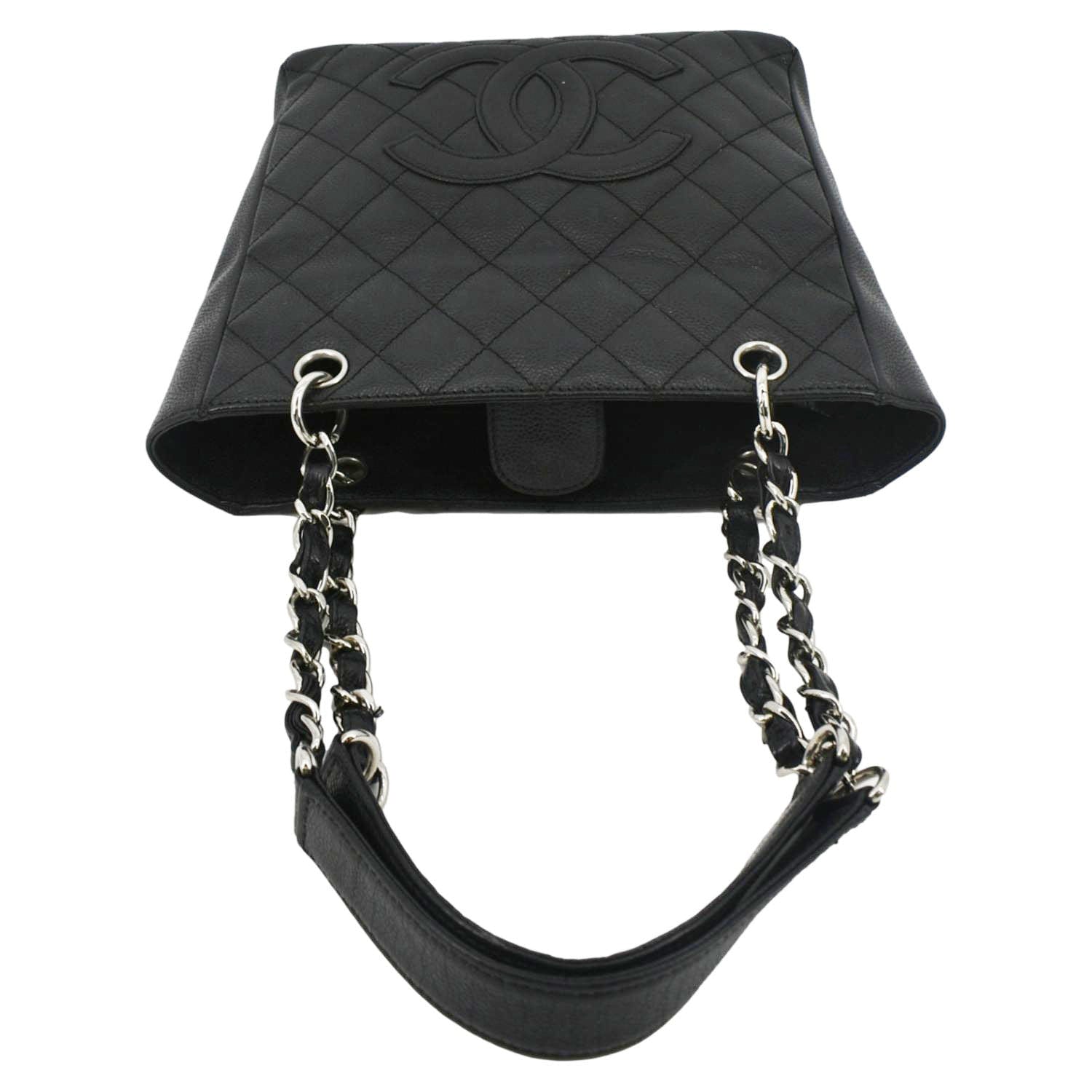 CHANEL PST Caviar Leather Quilted Shopping Tote Bag Black