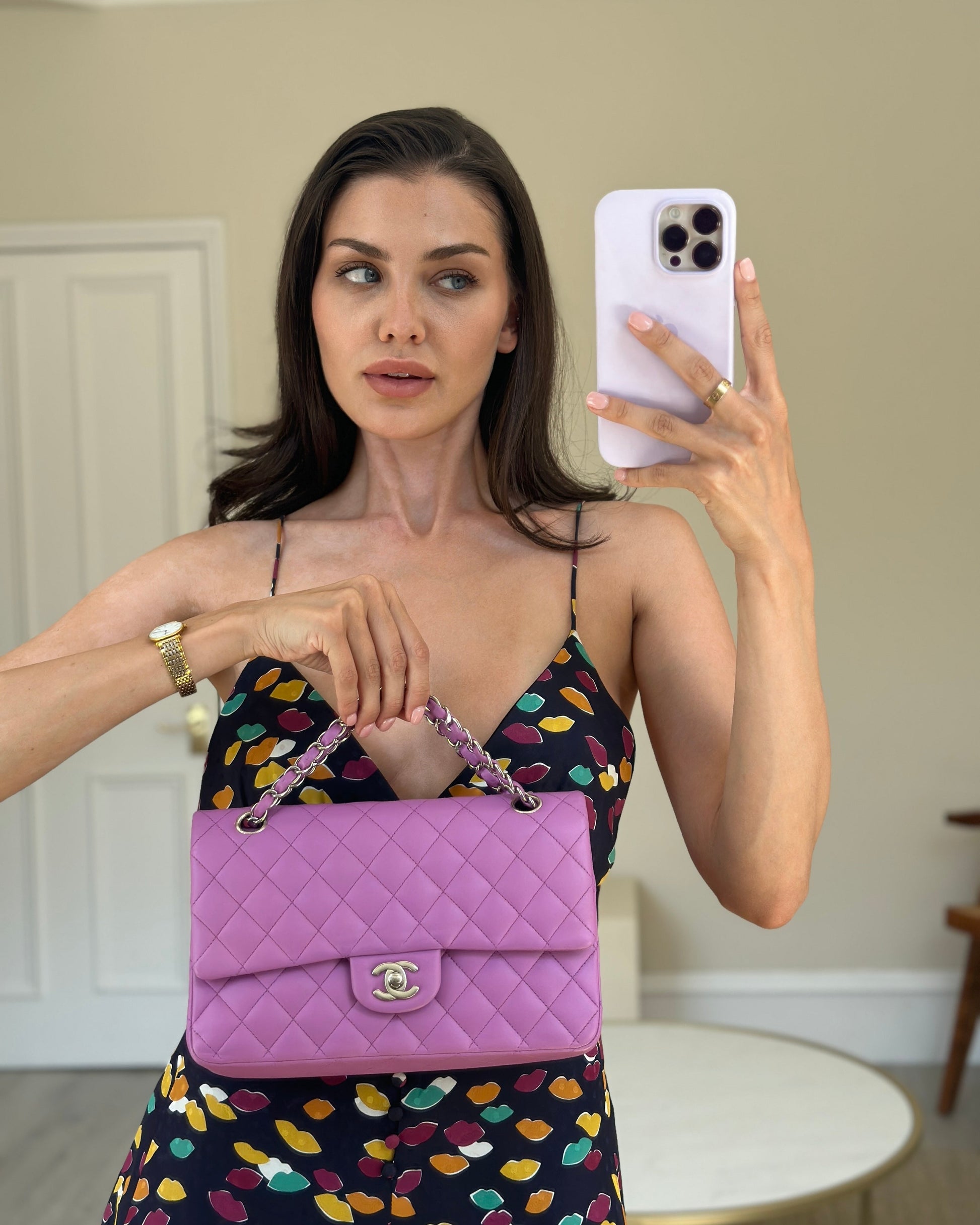 Chanel Grape Medium Classic Double Flap Bag in Lambskin Leather with Silver Hardware RRP £8,530