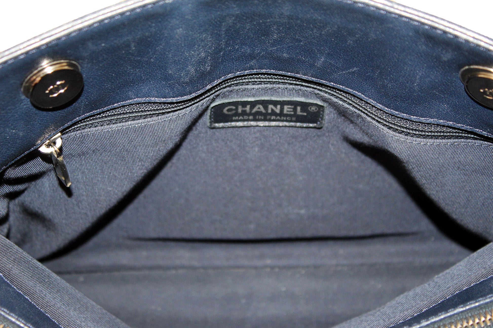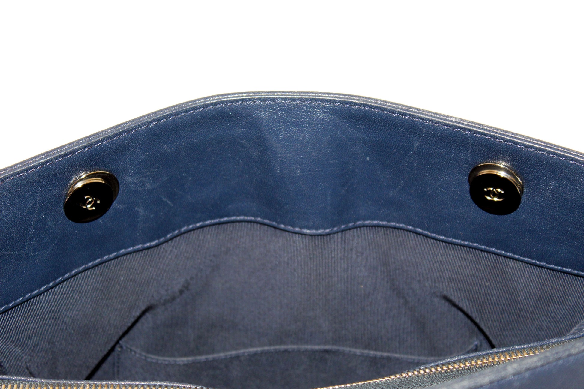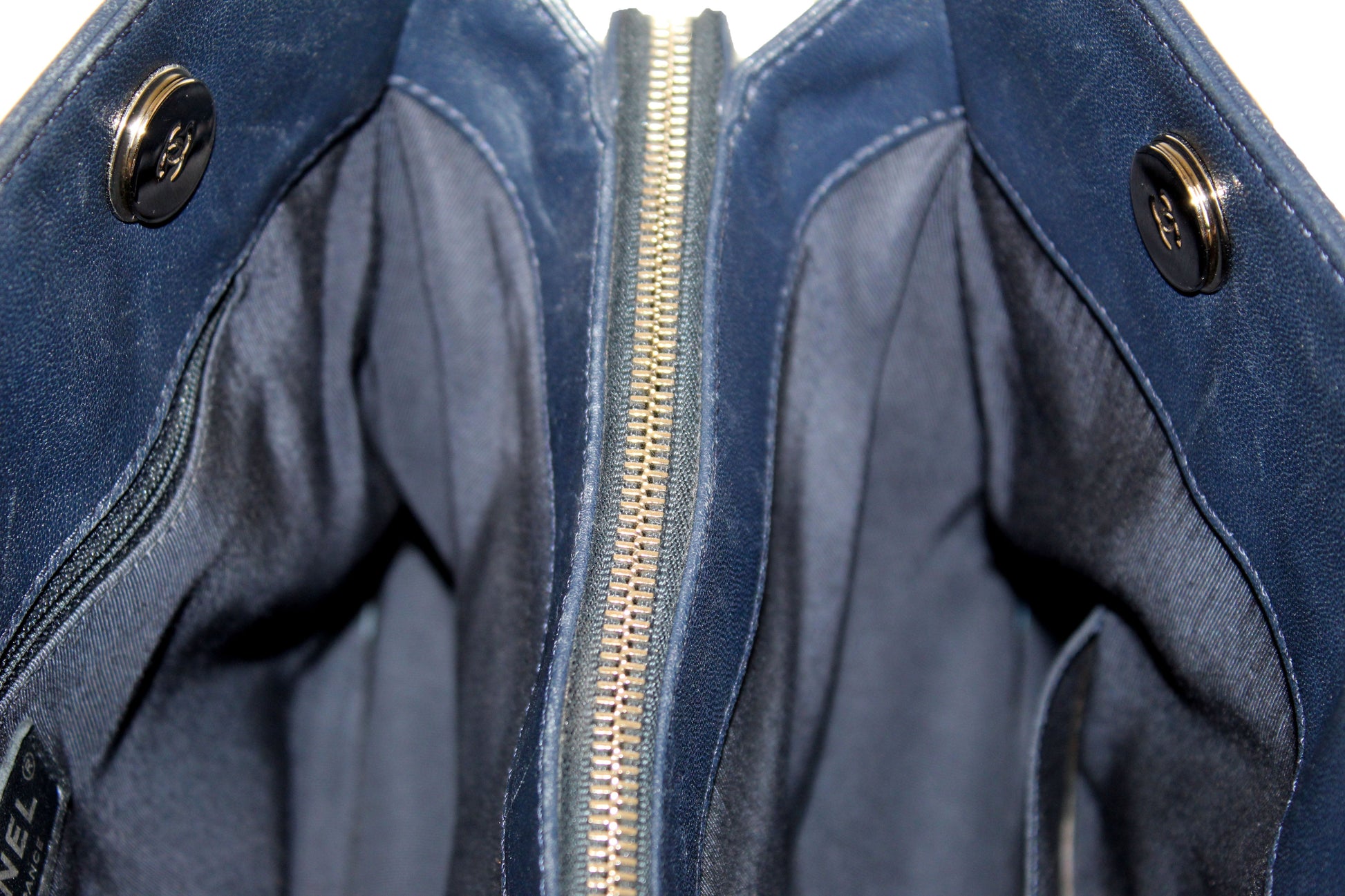 Chanel Quilted Blue Lambskin Leather Shopper Shoulder Tote Bag