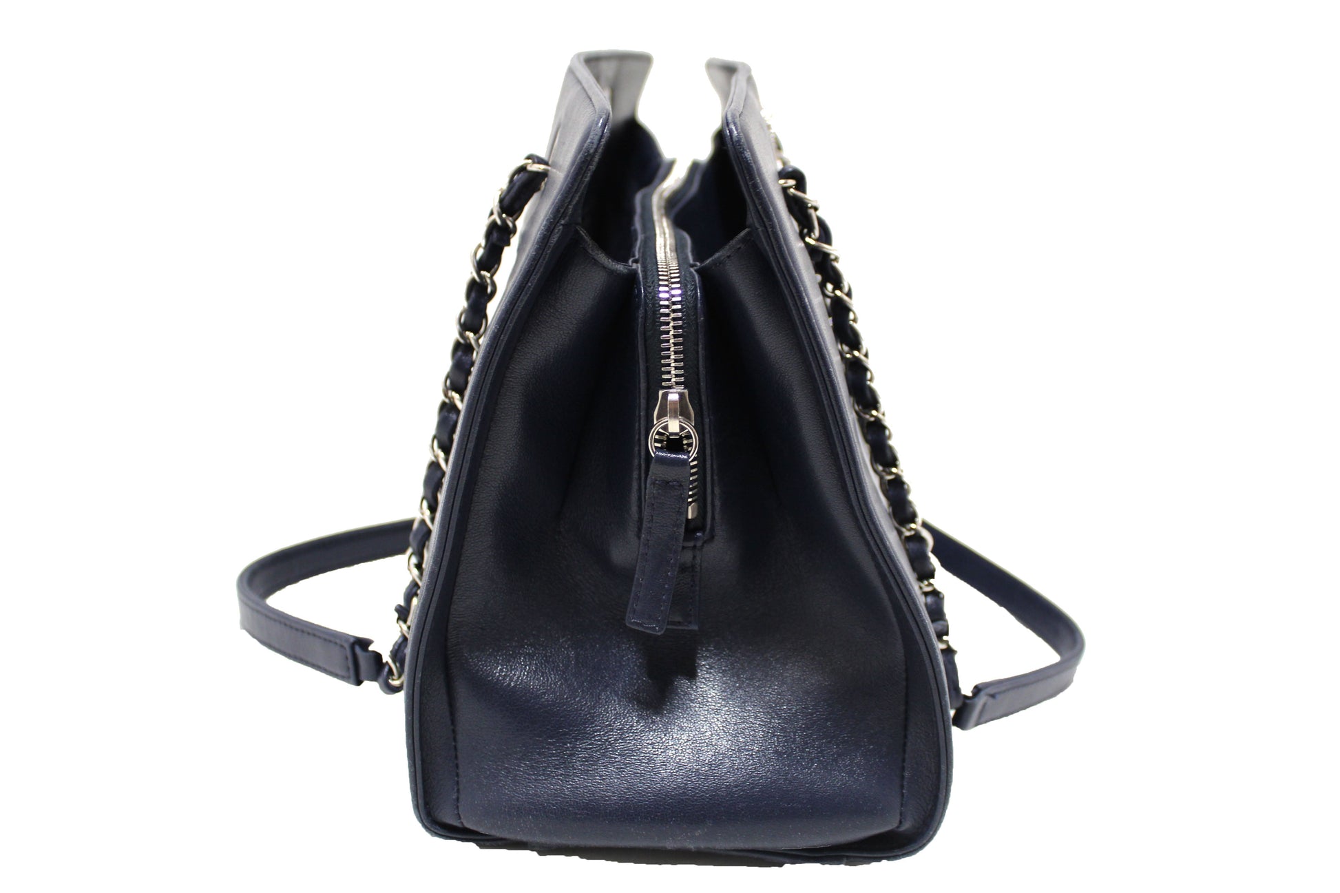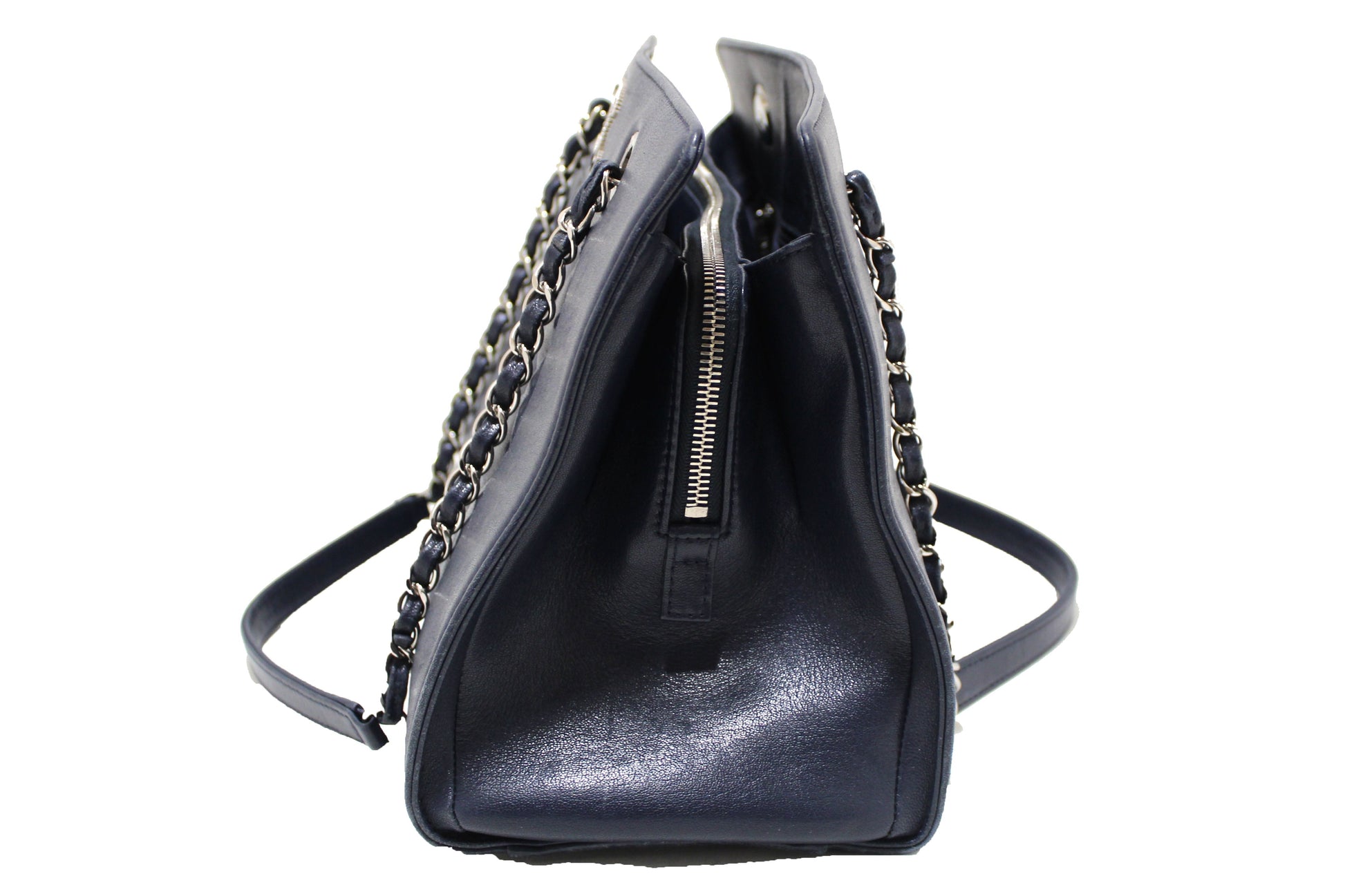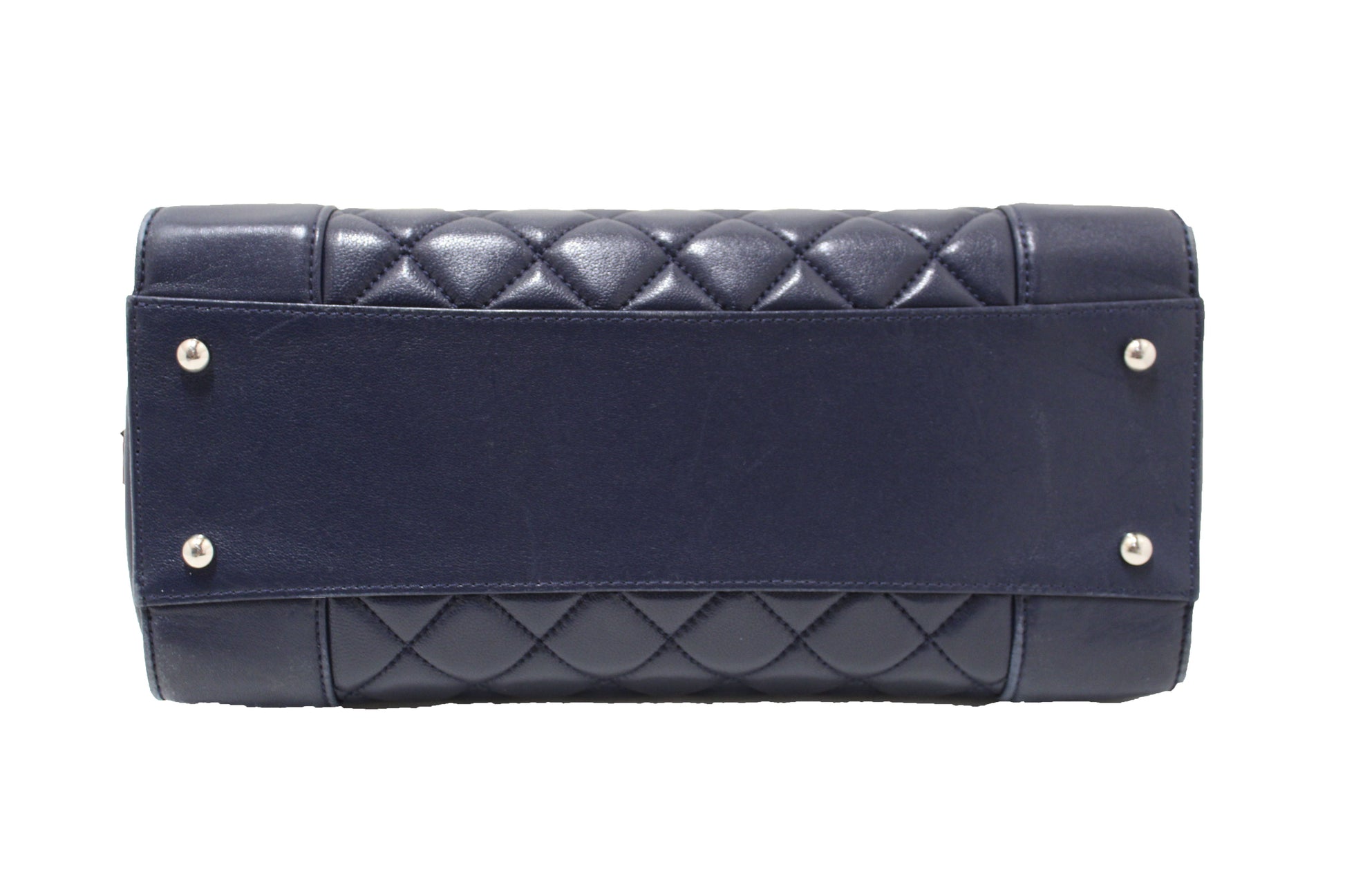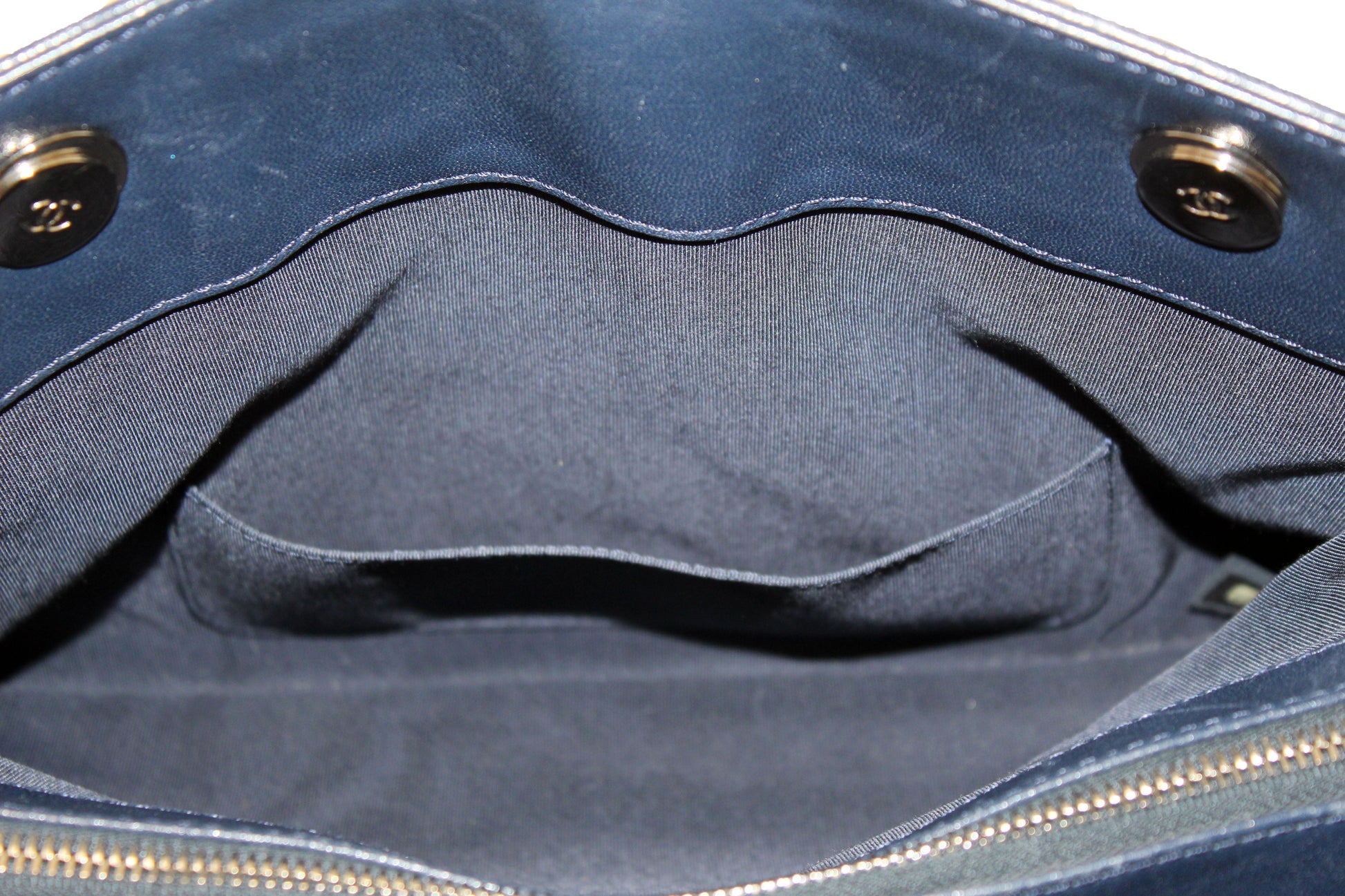 Chanel Quilted Blue Lambskin Leather Shopper Shoulder Tote Bag