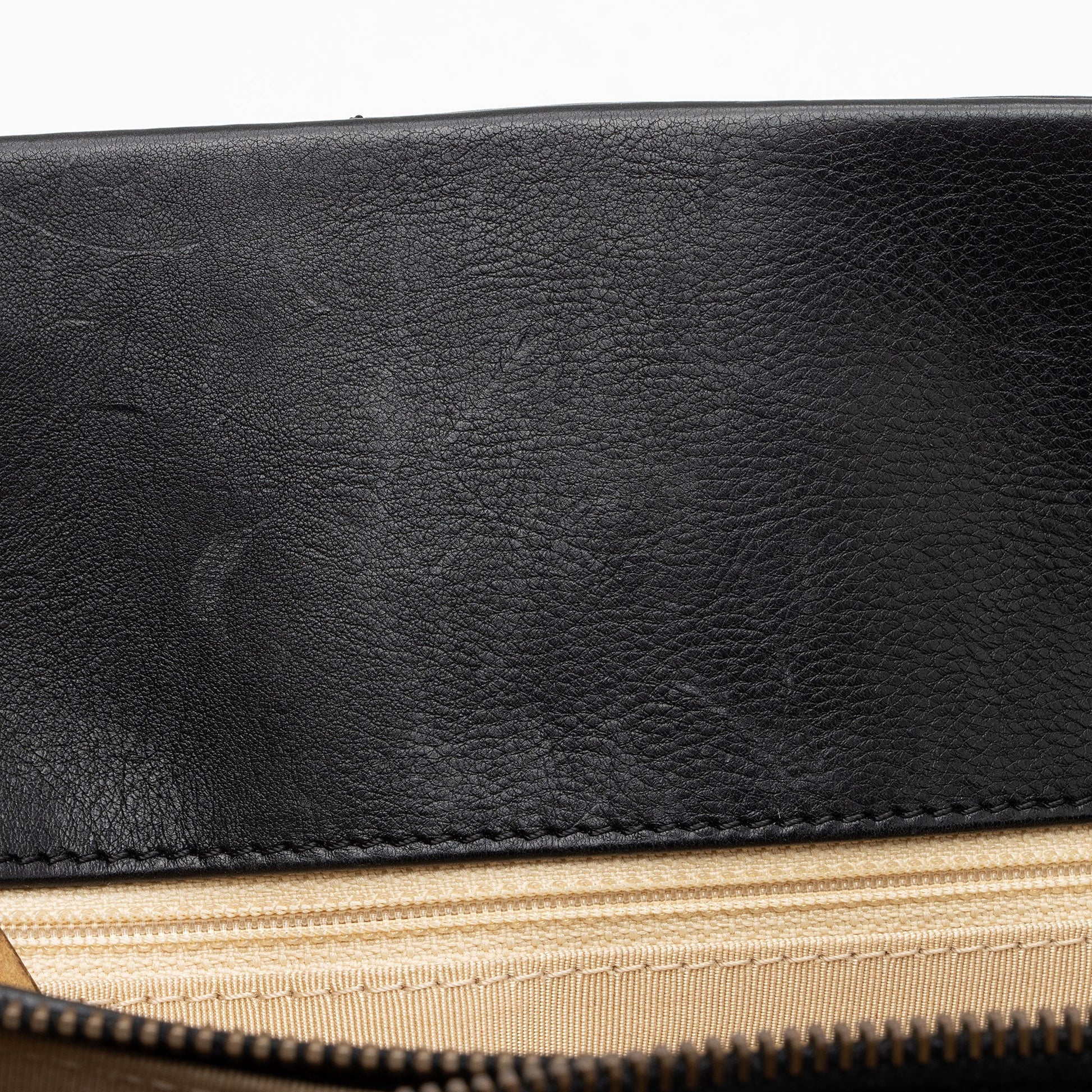 Condition : New Creasing throughout exterior causing loss of structure. Minor wear to exterior bottom corners. Light scuffs throughout handle leather. Light surface scratches to hardware. Marks and light darkening throughout interior.