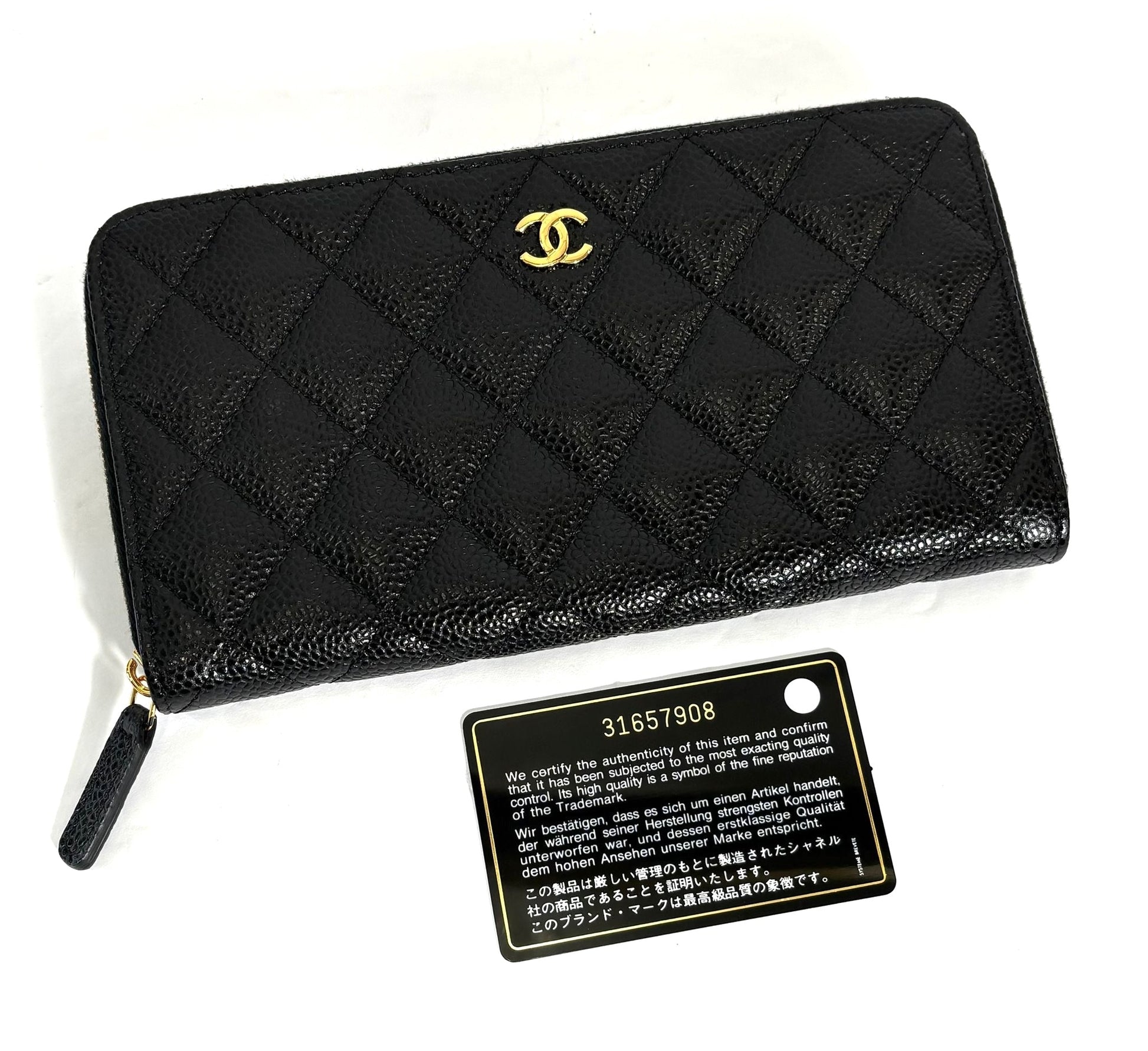 CHANEL QUILTED CAVIAR LARGE GUSSET ZIP AROUND WALLET