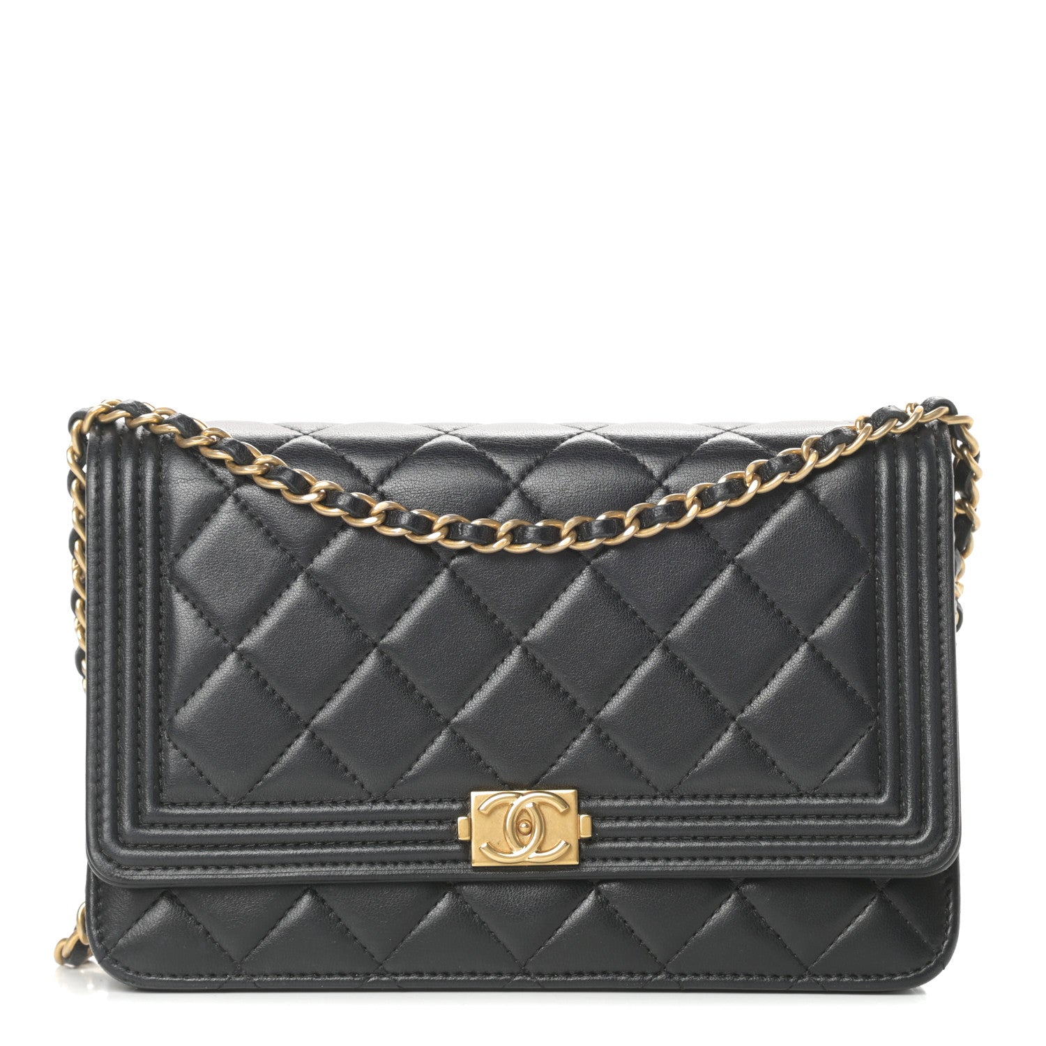 CHANEL QUILTED LAMBSKIN BOY WALLET ON CHAIN