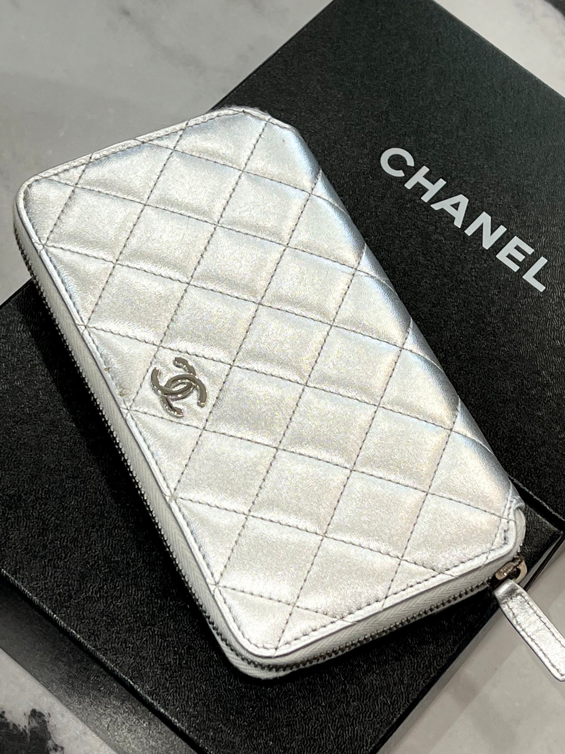 CHANEL QUILTED LAMBSKIN ZIP AROUND WALLET