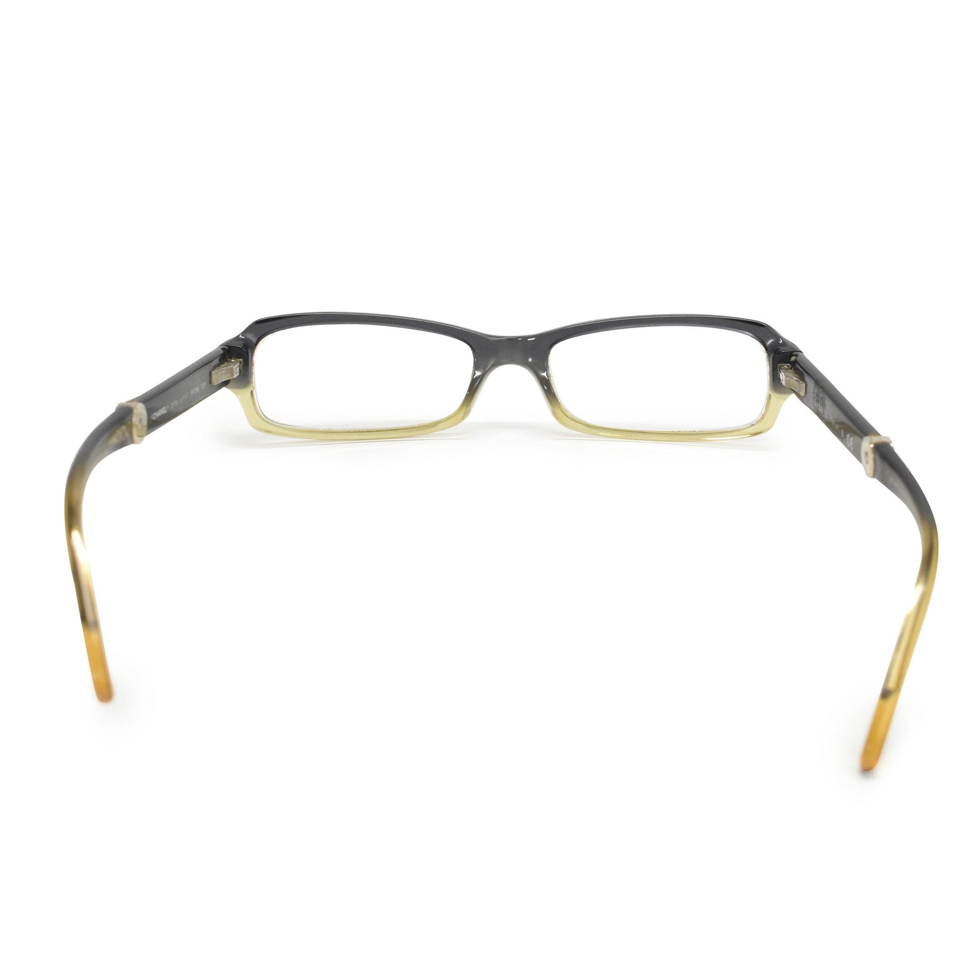 Chanel skinny reading glasses in a black and yellow gradient acetate with a silver 'CC' logo on the arms.