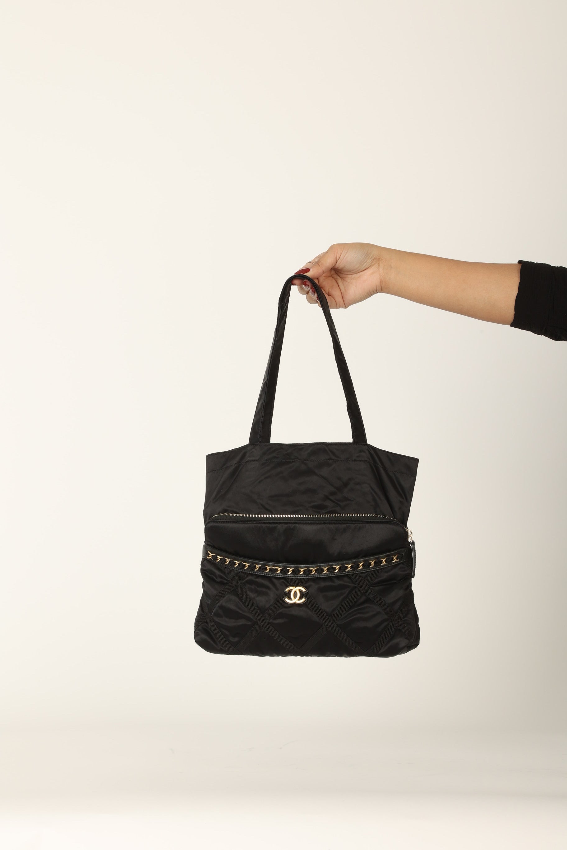 Dropping in the shop is a unique Chanel Satin Zip Clutch Tote in black with aged gold hardware! This piece is two bags in one! All zipped up, this bag acts as a clutch. Unzipped, the bag unfolds into a tote! Such a unique and creative piece that can be styled for any occasion! The aged gold hardware elevates the bag in such a chic way. You an fit your iPad Mini/Kindle and the rest of your daily essentials.?ÿ