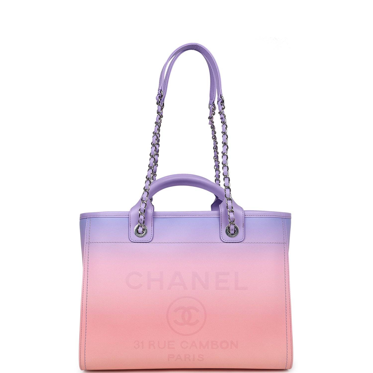 Chanel Small Deauville Shopping Tote Pink and Purple Ombre Calfskin Silver Hardware