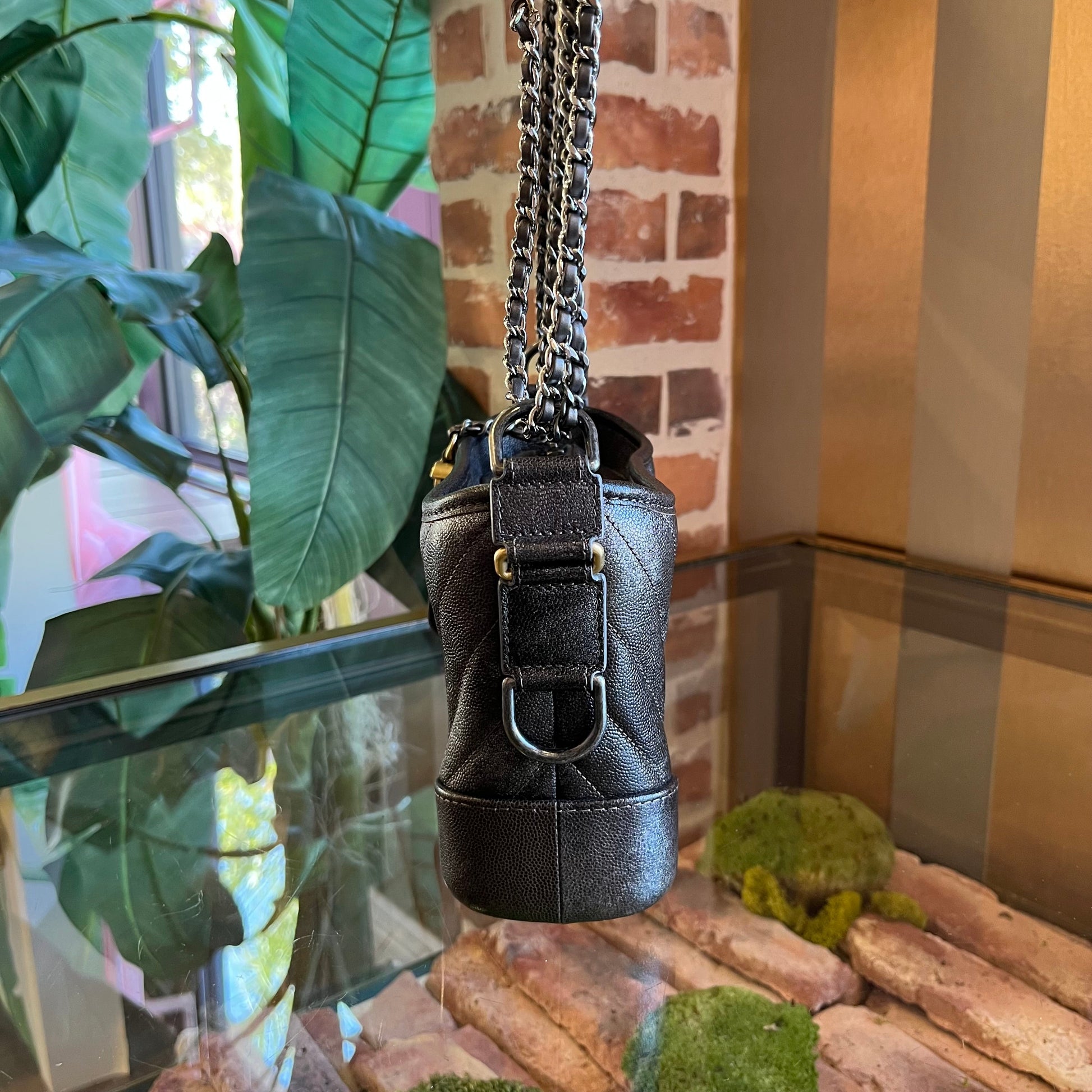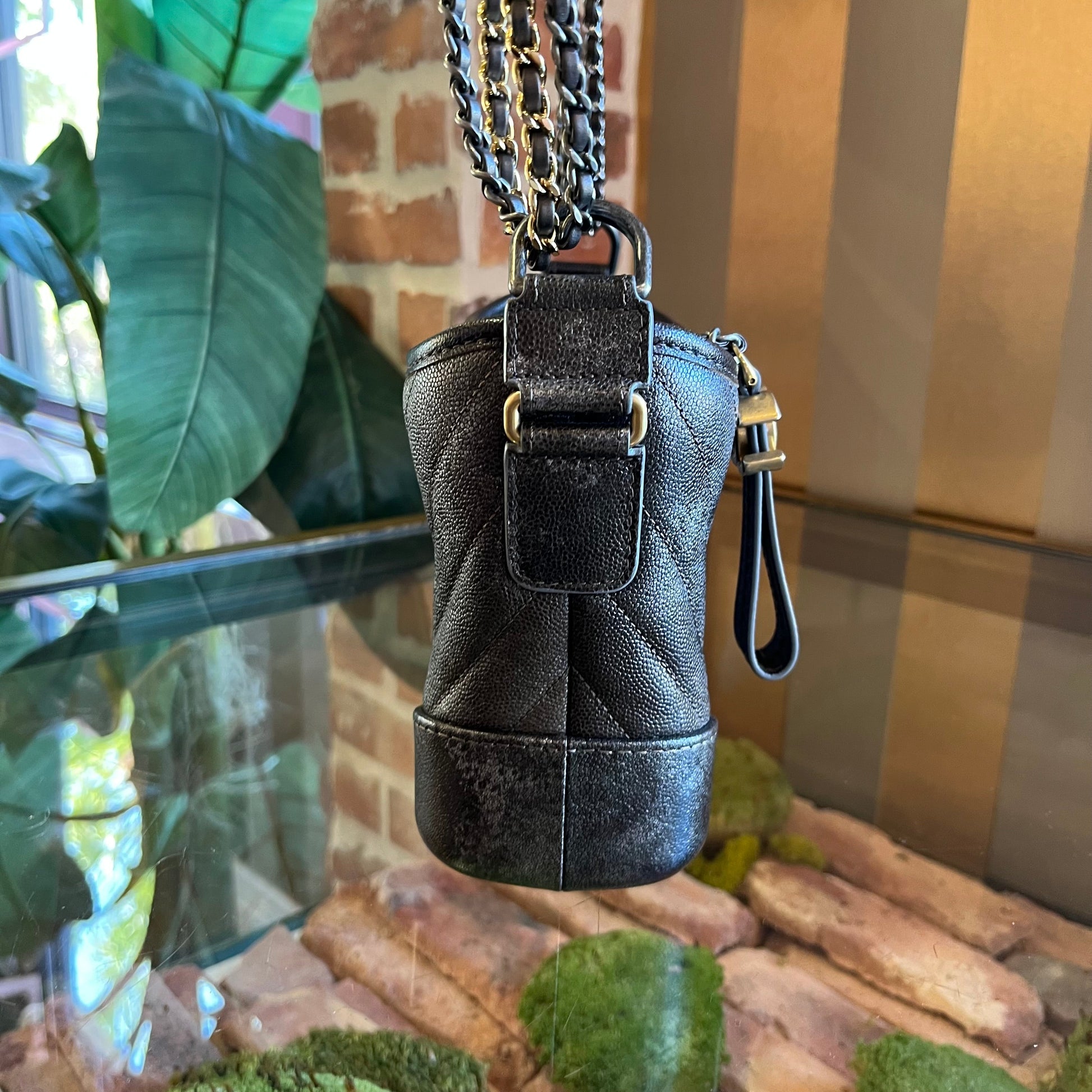 CHANEL Gabrielle Small Metallic Grey Chevron Caviar Leather Shoulder Bag