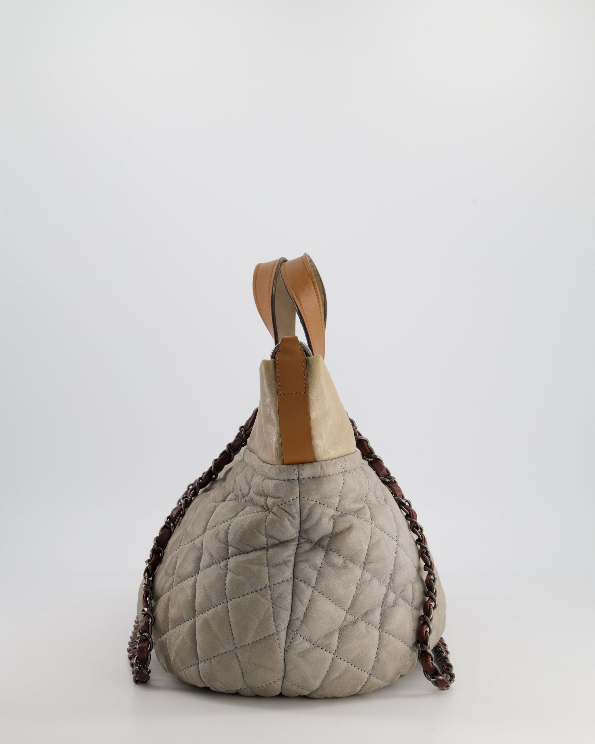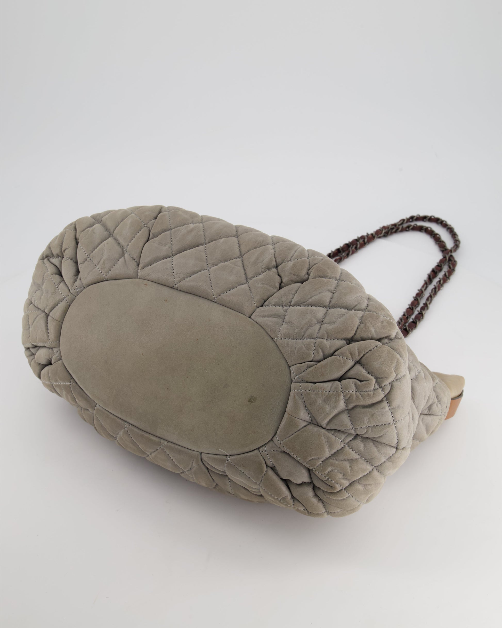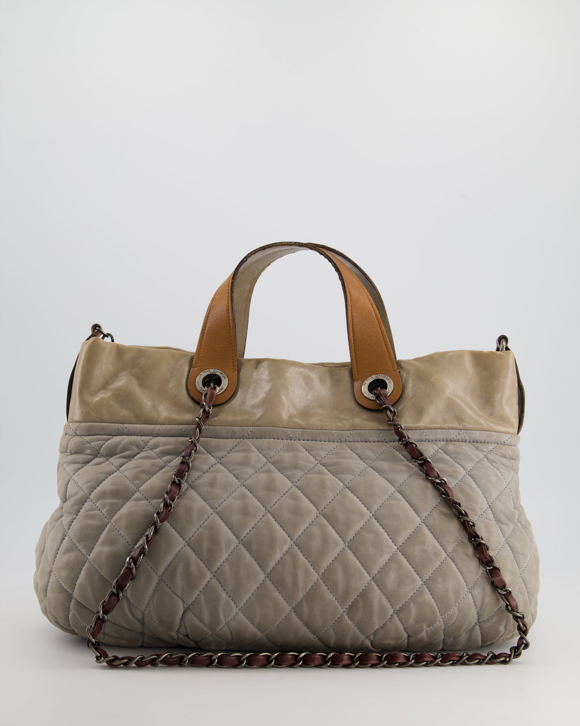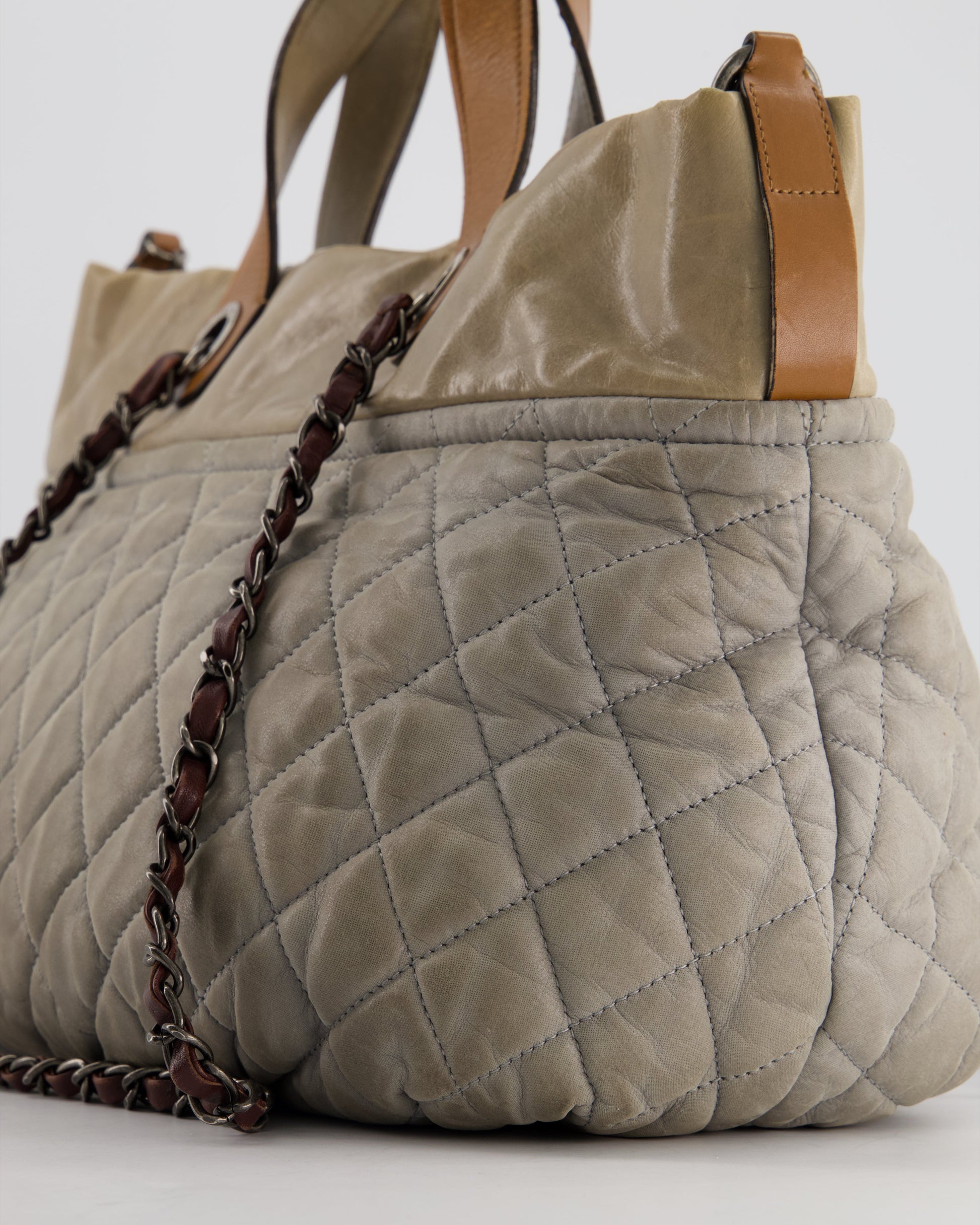 Chanel Stormy Grey Nubuck Leather Portobello Tote Bag with Tan Leather Handle and Ruthenium Hardware