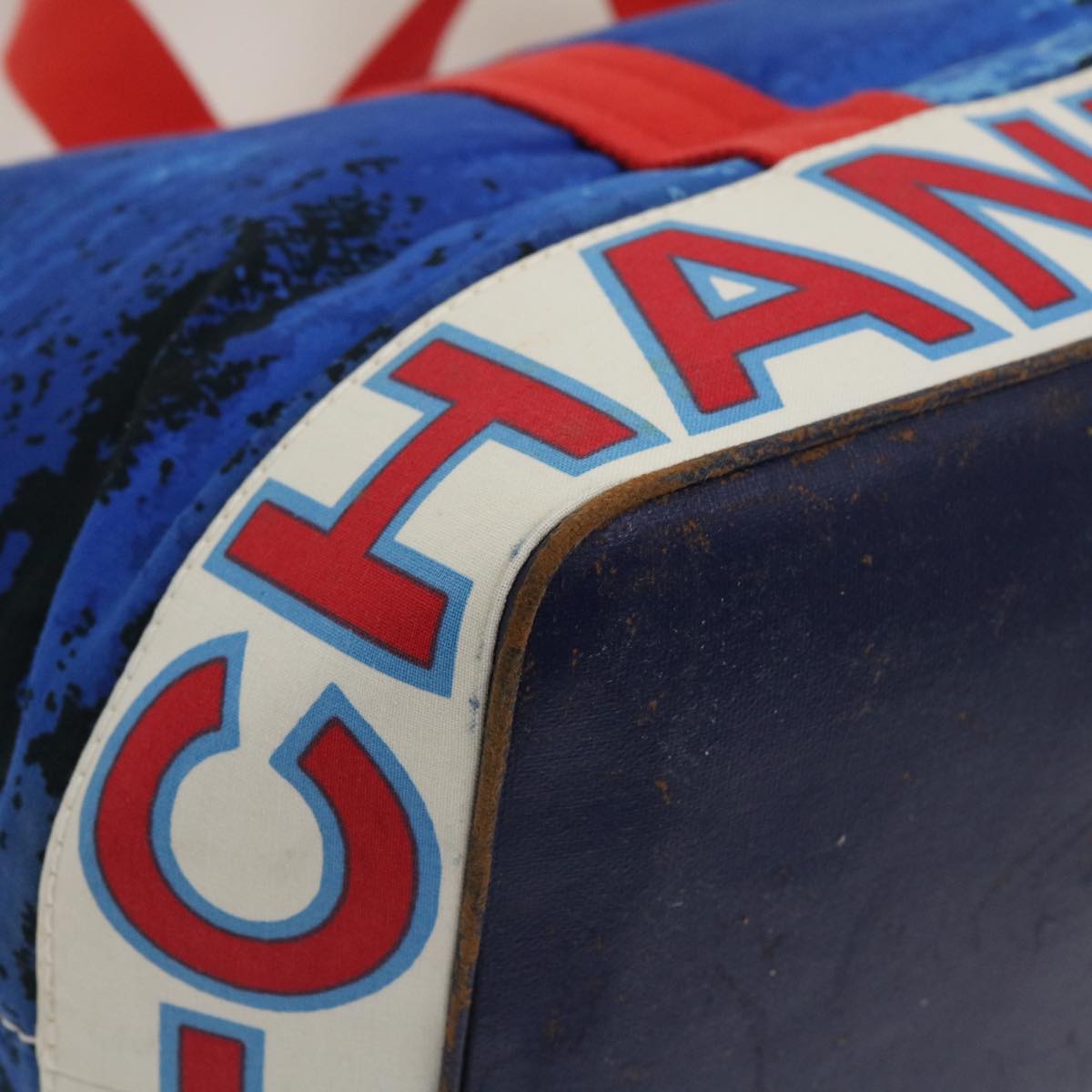 CHANEL Surf line Tote Bag Canvas Blue Red CC Auth yk4388A