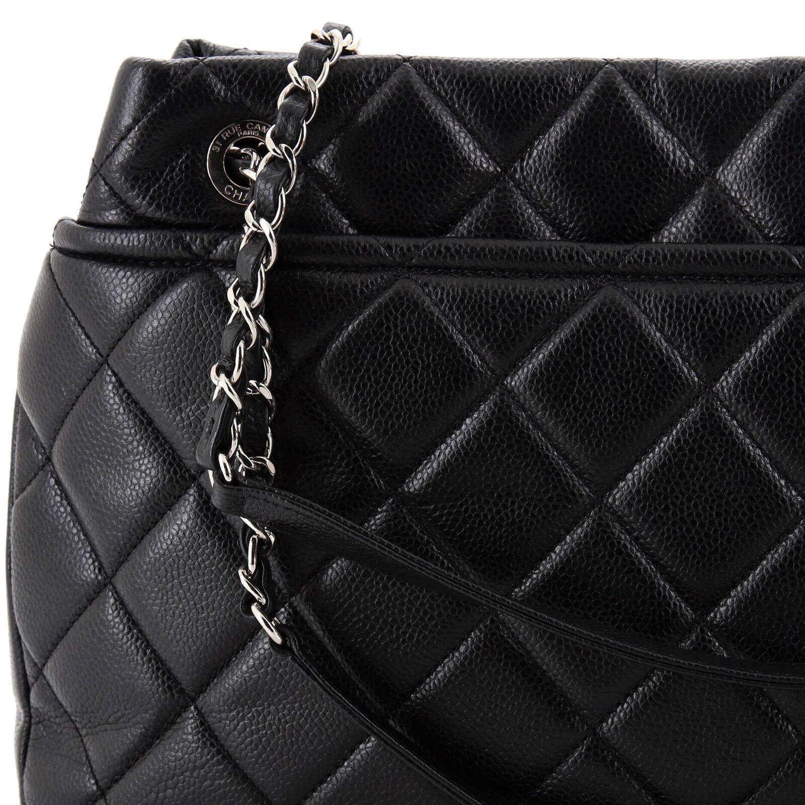 Introducing the Chanel Timeless CC Soft Tote in Medium size, crafted from luxurious quilted caviar leather. This iconic piece exudes elegance with its timeless design and signature CC logo. The spacious interior is perfect for everyday essentials, while the chain and leather straps offer versatility in styling. Elevate your look with this classic tote that seamlessly transitions from day to night, making it a must-have for any fashion enthusiast.