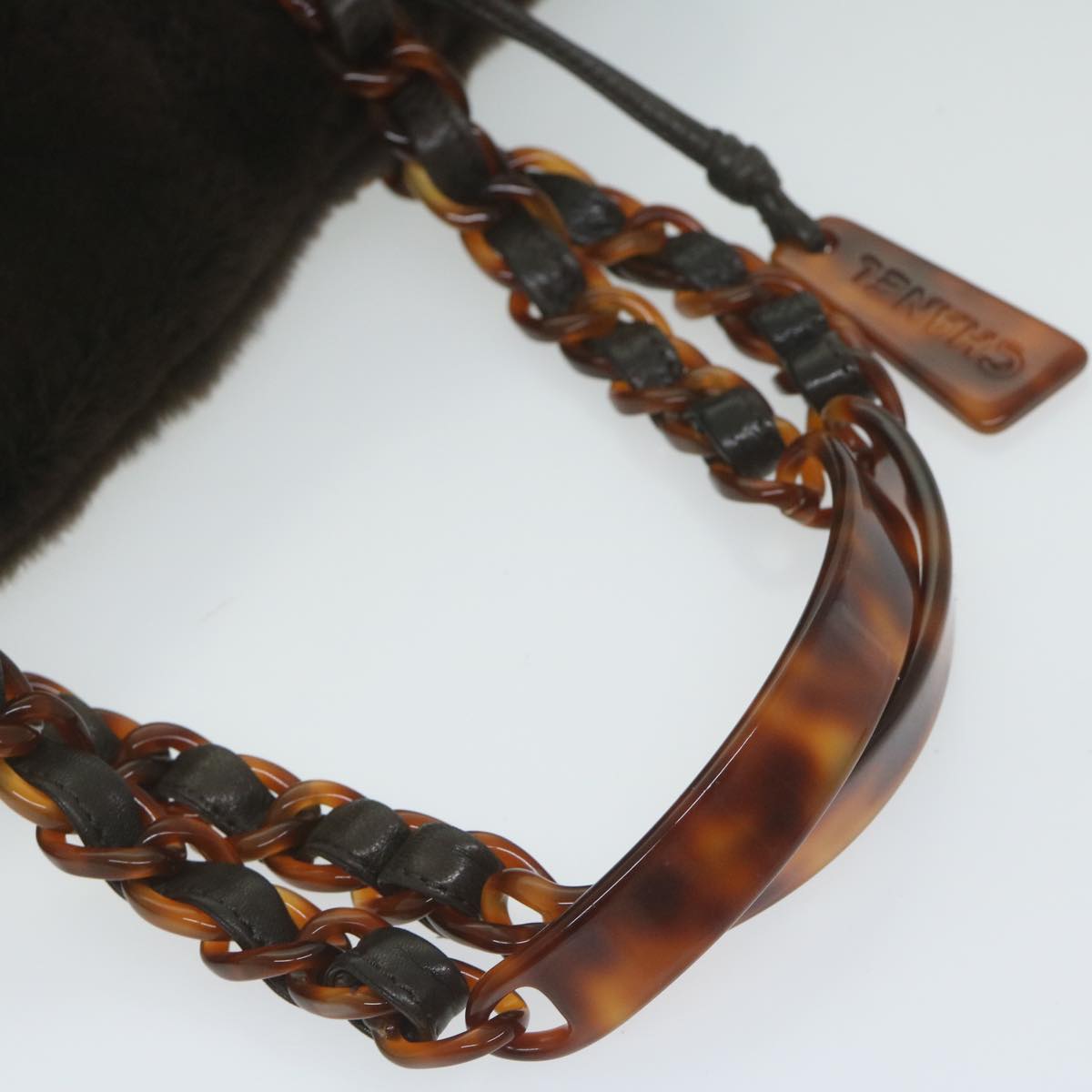 CHANEL Tote Bag Fur Brown Cc Auth 61881