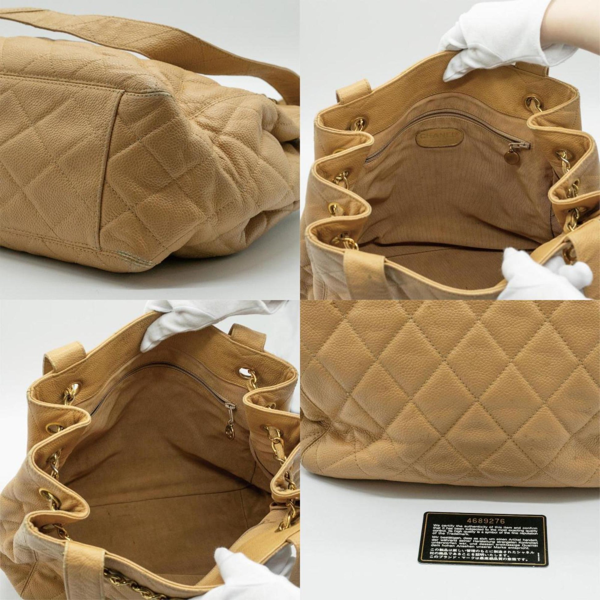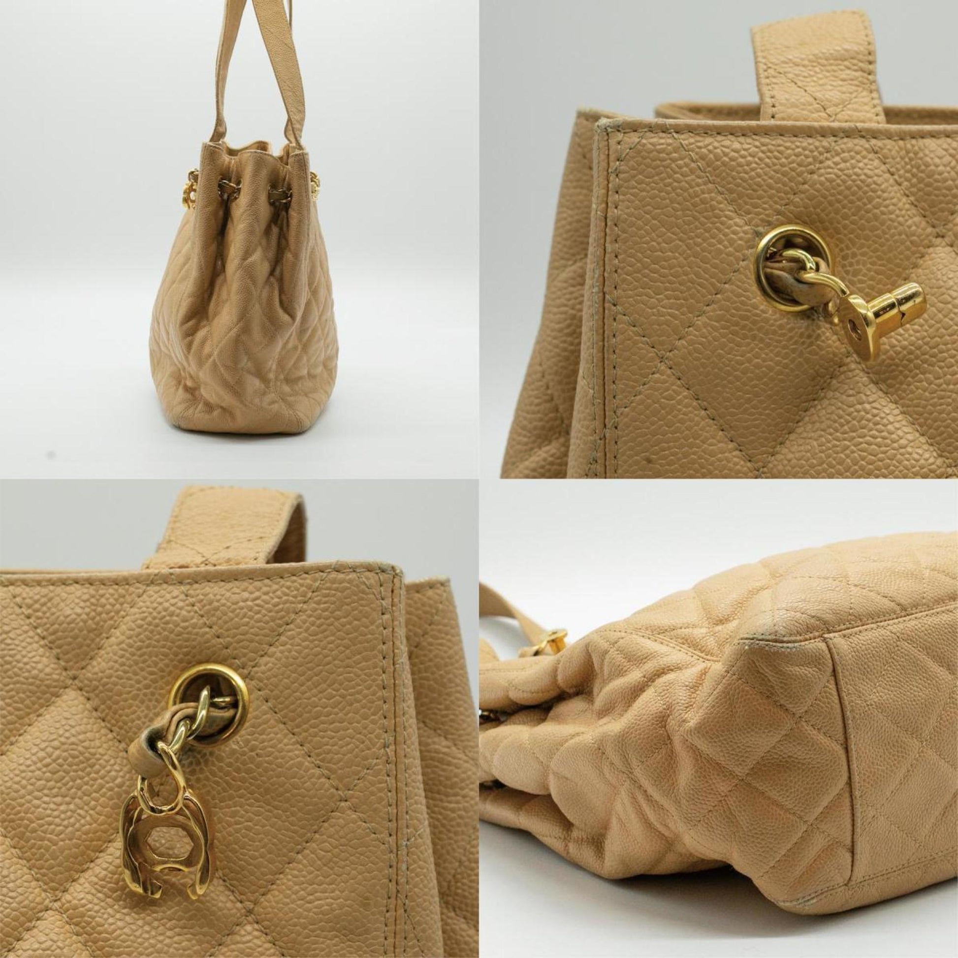 CHANEL Tote Bag Matelasse Coco Mark Chain Lock Leather Beige Gold Women's PD33