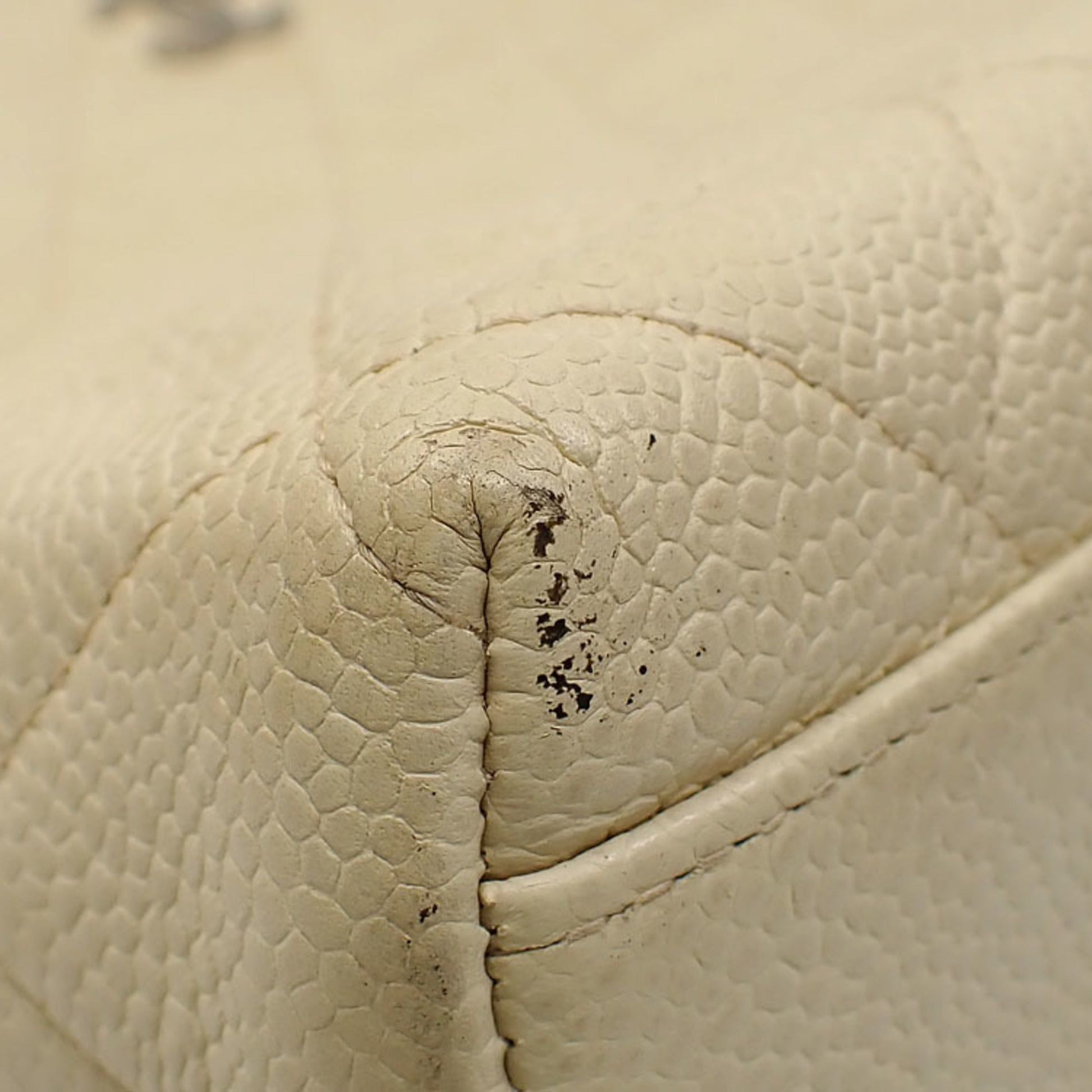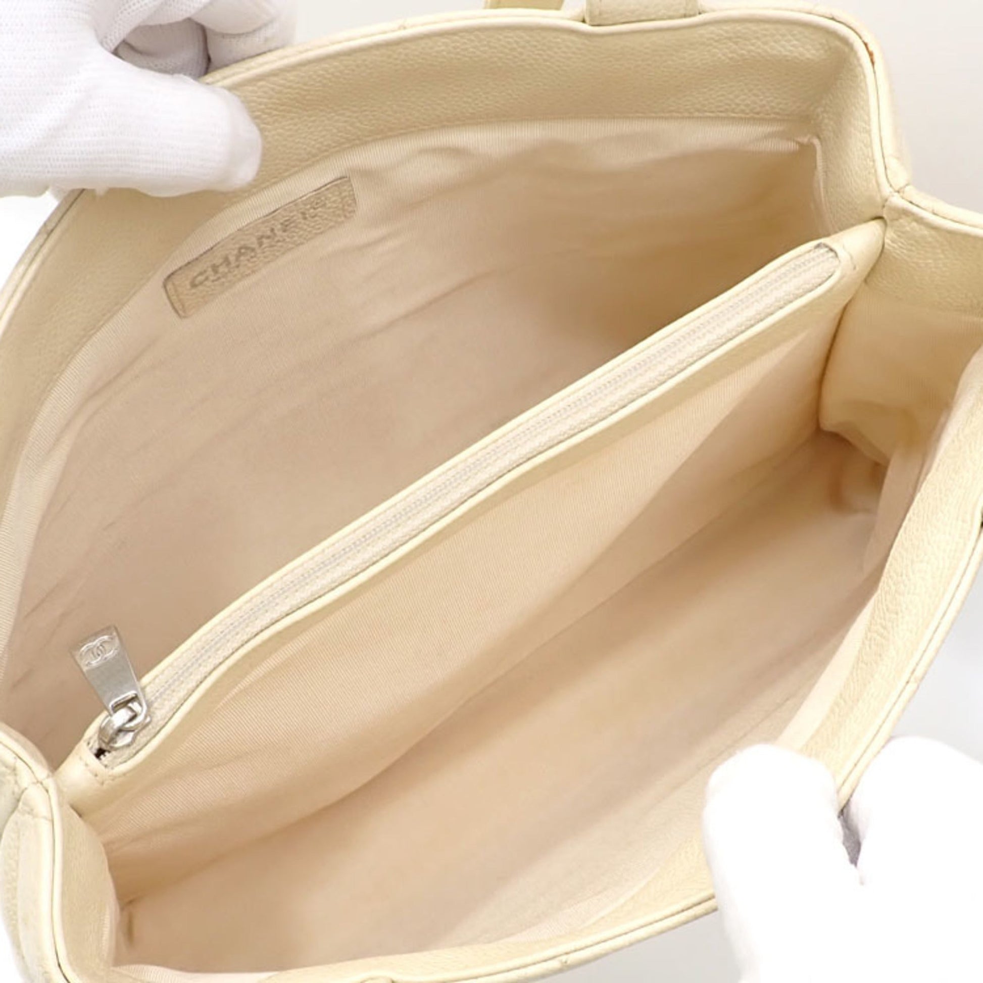 Chanel Tote Bag Matelasse Women's Ivory Caviar Skin Coco Mark Leather