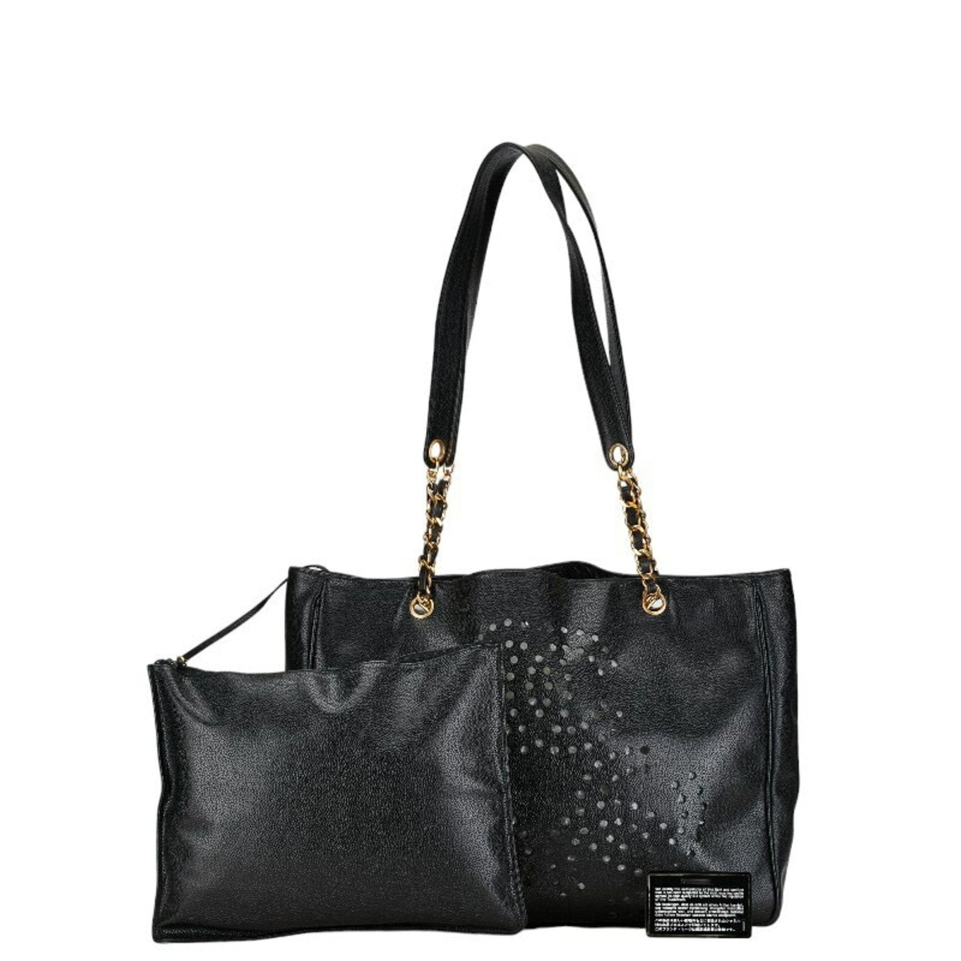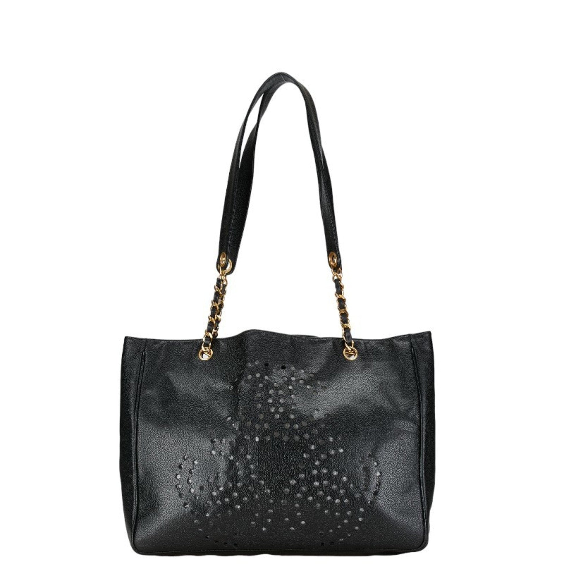 Chanel Triple Coco Mark Chain Shoulder Bag Tote Black Gold Caviar Skin Women's CHANEL